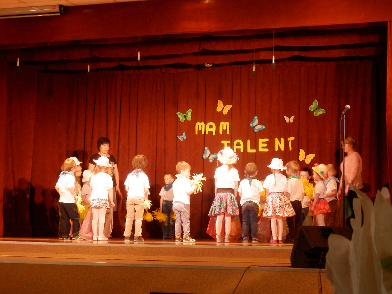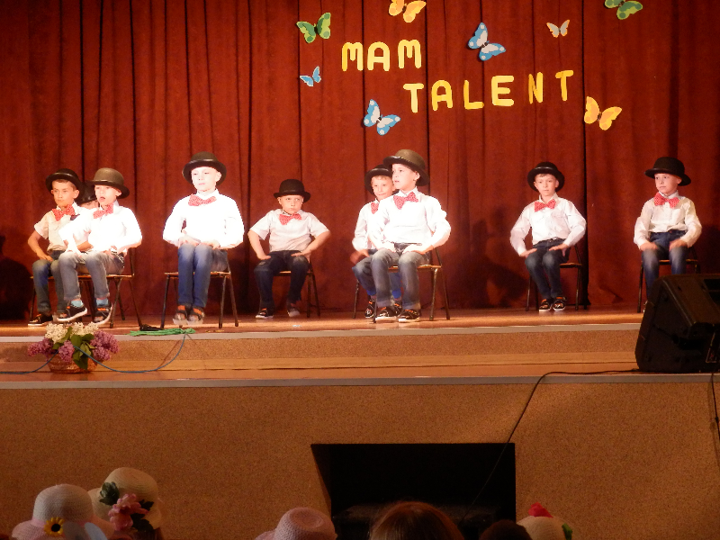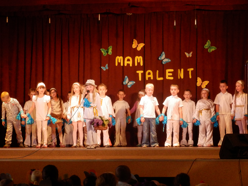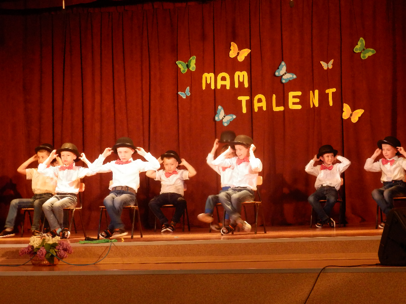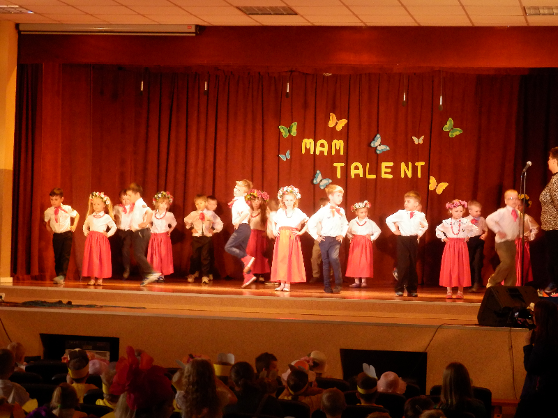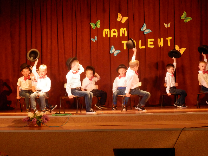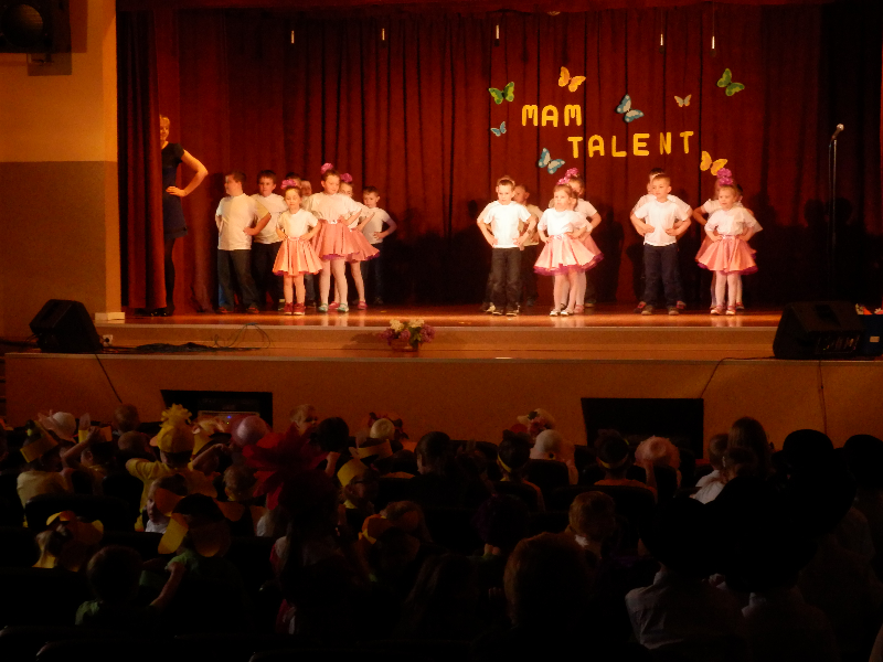 W czwartek 14.05.2015r.dzieci z oddziału przedszkolnego wzięły udział w V Przeglądzie Twórczości Artystycznej Przedszkolaków pod nazwą „Mam talent”, zorganizowanym przez Publiczne Przedszkole im. Smerfy w Raszkowie. Spotkanie odbyło się w raszkowskim Domu Kultury. Nasze dzieci zaprezentowały się w dwóch układach tanecznych, których zapowiedzią były wiersze o tancerkach i dobrych manierach. Chłopcy wcielili się w role małych dżentelmenów, tańcząc z melonikami do utworu „Let Kiss”, dziewczynki natomiast z wdziękiem tańczyły przy piosence „Wyginam śmiało ciało”. Tak chłopcy jak i dziewczynki wspaniale wyglądali w strojach przygotowanych specjalnie na tę taneczną okazję. Dzieci przygotowały panie: Marzena Klimek, Dorota Gidaszewska – Burkietowicz oraz Ilona Klimek. Podczas przeglądu mogliśmy także podziwiać bardzo ciekawe i wesołe występy wszystkich grup przedszkolnych z Przedszkola w Raszkowie oraz z Filii w Przybysławicach. Wszyscy uczestnicy otrzymali dyplomy i słodycze z rąk Pani Dyrektor raszkowskiego Przedszkola, Urszuli Szymaniak.