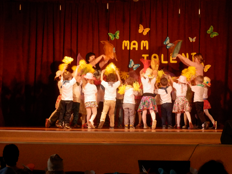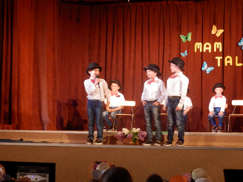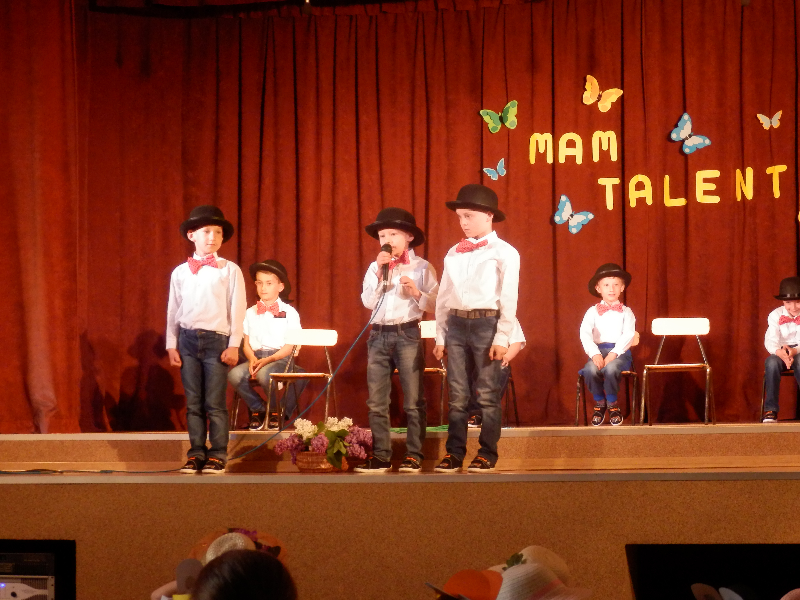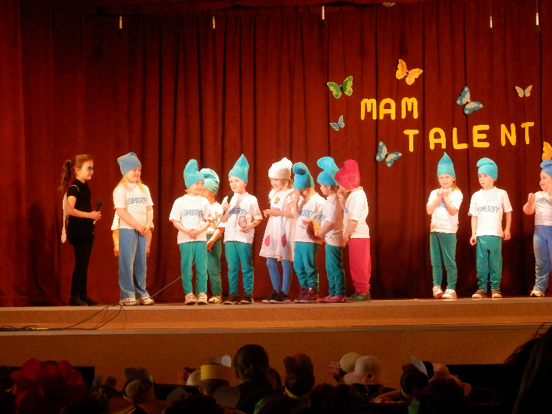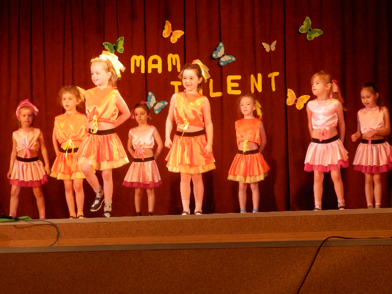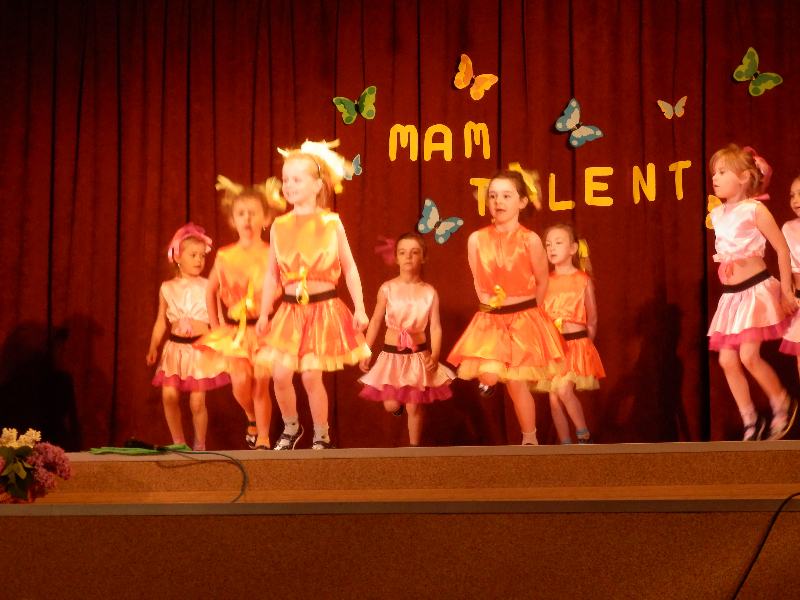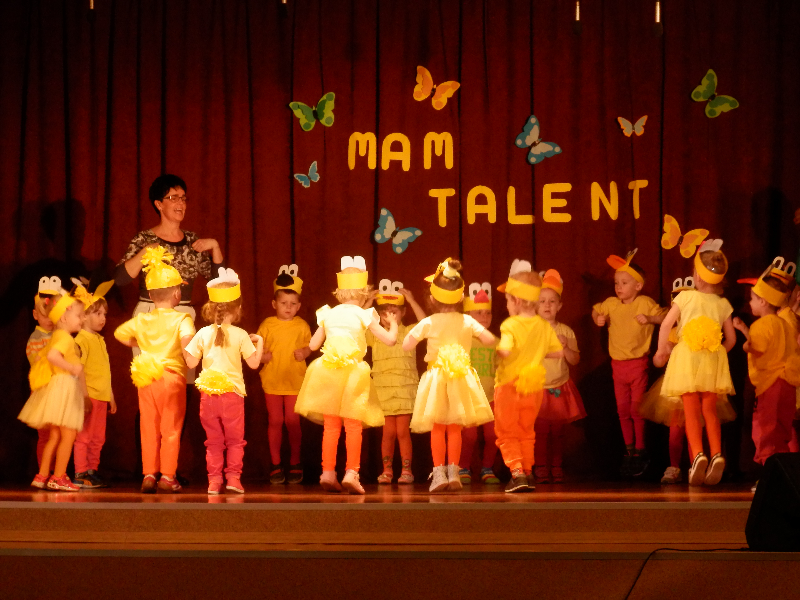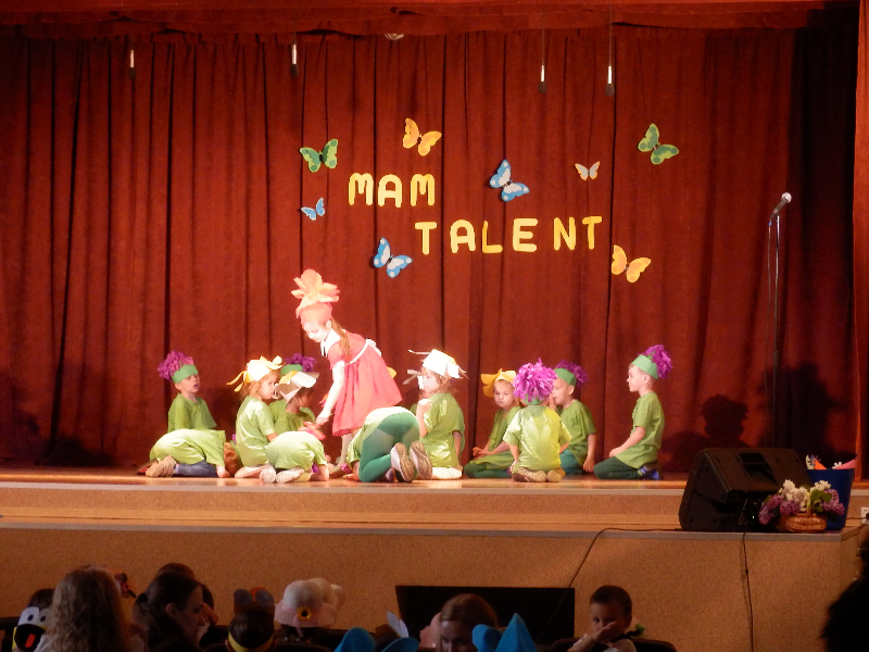 W czwartek 14.05.2015r.dzieci z oddziału przedszkolnego wzięły udział w V Przeglądzie Twórczości Artystycznej Przedszkolaków pod nazwą „Mam talent”, zorganizowanym przez Publiczne Przedszkole im. Smerfy w Raszkowie. Spotkanie odbyło się w raszkowskim Domu Kultury. Nasze dzieci zaprezentowały się w dwóch układach tanecznych, których zapowiedzią były wiersze o tancerkach i dobrych manierach. Chłopcy wcielili się w role małych dżentelmenów, tańcząc z melonikami do utworu „Let Kiss”, dziewczynki natomiast z wdziękiem tańczyły przy piosence „Wyginam śmiało ciało”. Tak chłopcy jak i dziewczynki wspaniale wyglądali w strojach przygotowanych specjalnie na tę taneczną okazję. Dzieci przygotowały panie: Marzena Klimek, Dorota Gidaszewska – Burkietowicz oraz Ilona Klimek. Podczas przeglądu mogliśmy także podziwiać bardzo ciekawe i wesołe występy wszystkich grup przedszkolnych z Przedszkola w Raszkowie oraz z Filii w Przybysławicach. Wszyscy uczestnicy otrzymali dyplomy i słodycze z rąk Pani Dyrektor raszkowskiego Przedszkola, Urszuli Szymaniak.