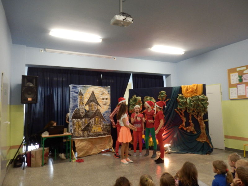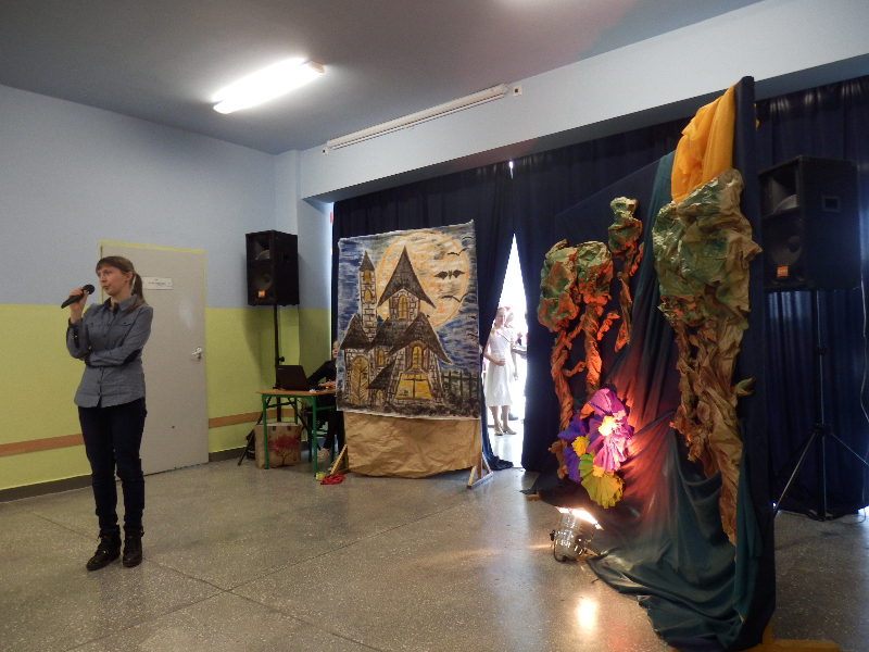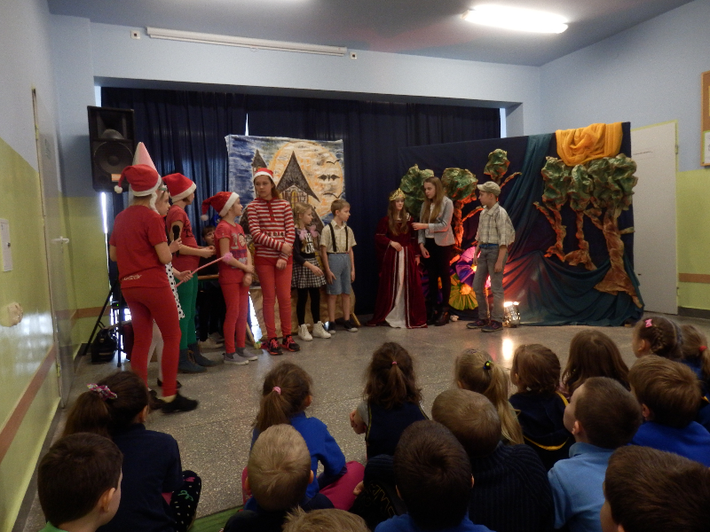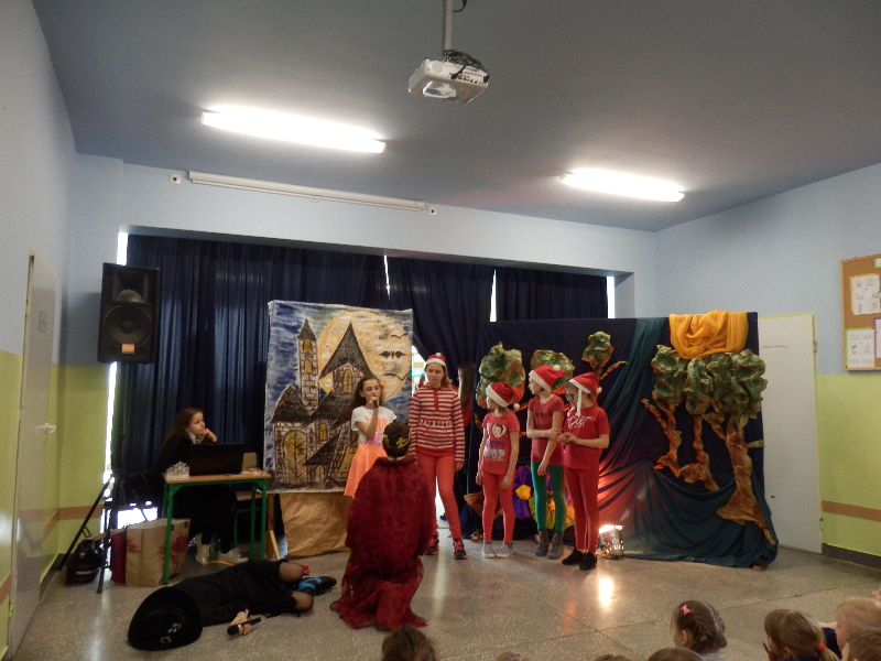 Uczniowie z koła polonistycznego samodzielnie wykonali przepiękne stroje i transparenty. Nad choreografią czuwała Gabrysia Gawron, która wystąpiła również w roli instruktorki. Dziewczynki pod jej kierownictwem zaprezentowały aerobik. Oryginalne dekoracje, idealnie odzwierciedlające scenerię przedstawienia przygotowała pani Alina Stefańska.