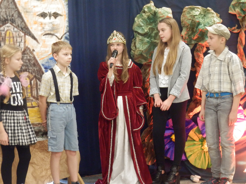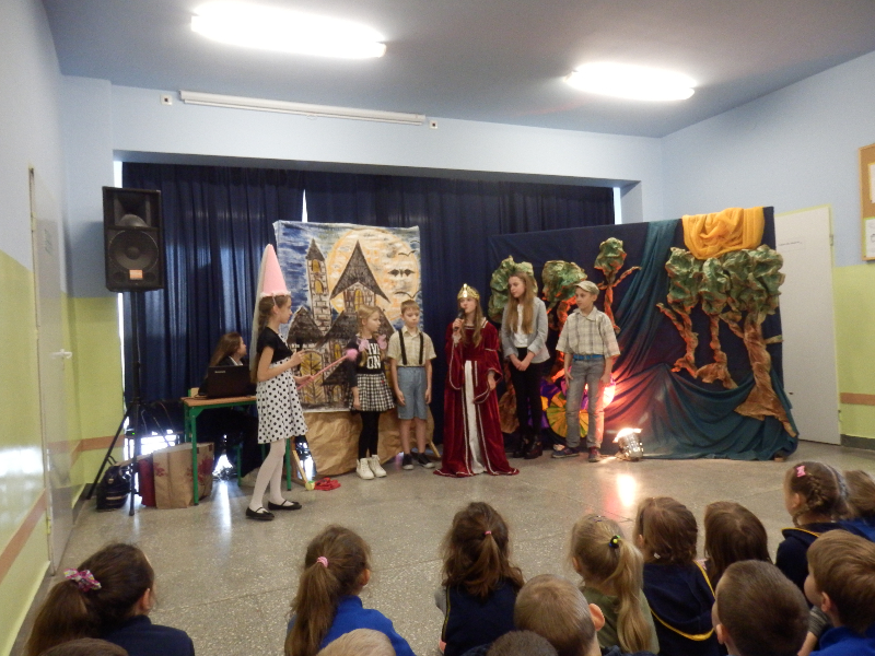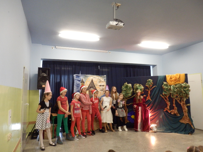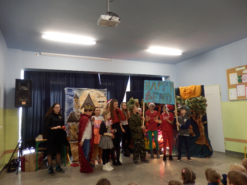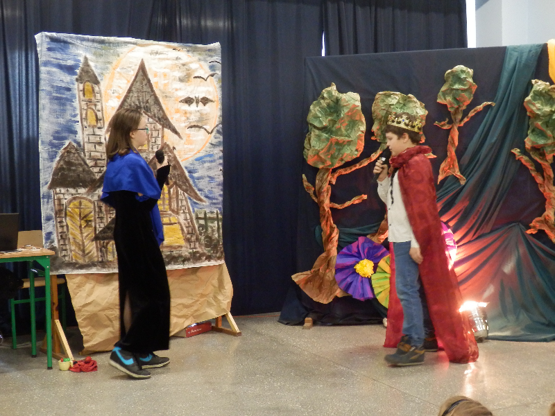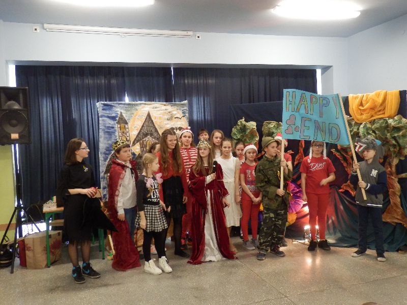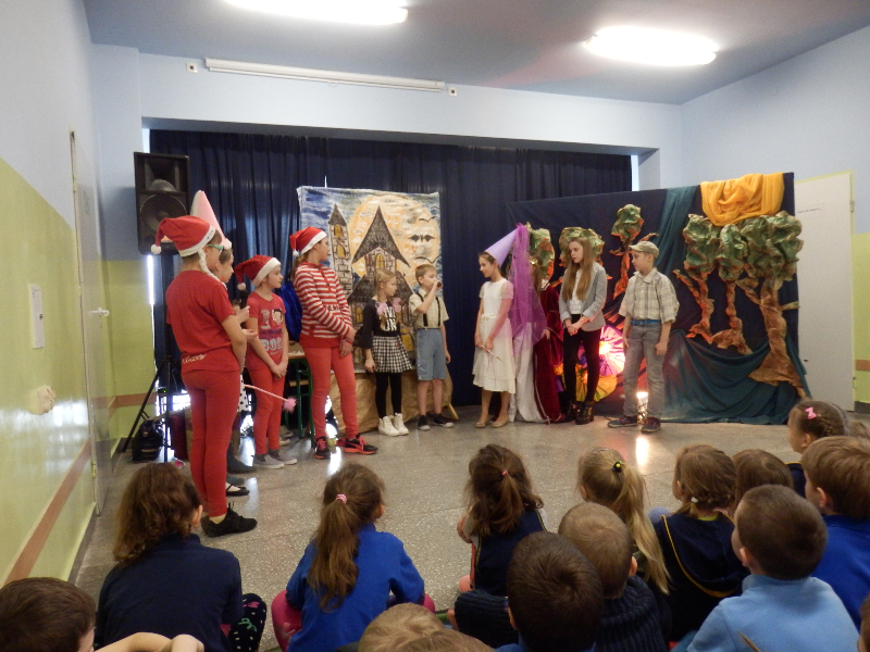 22.03.2016r. uczniowie z koła polonistycznego wraz z panią Anną Kląskałą przygotowali przedstawienie na podstawie baśni dla klas I-VI.