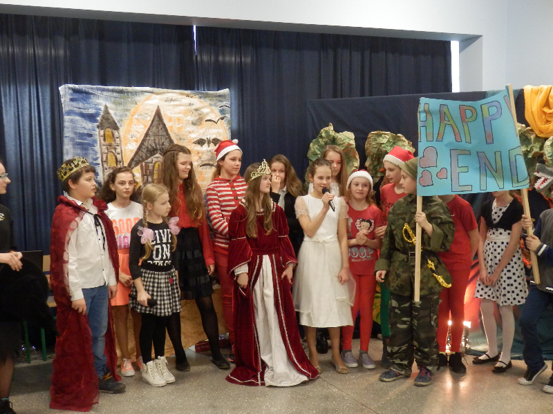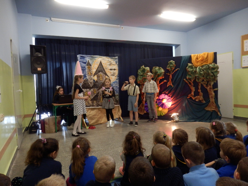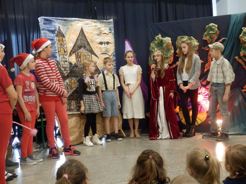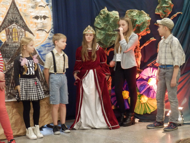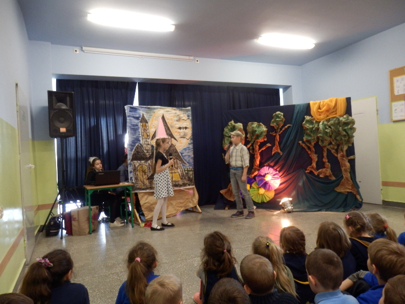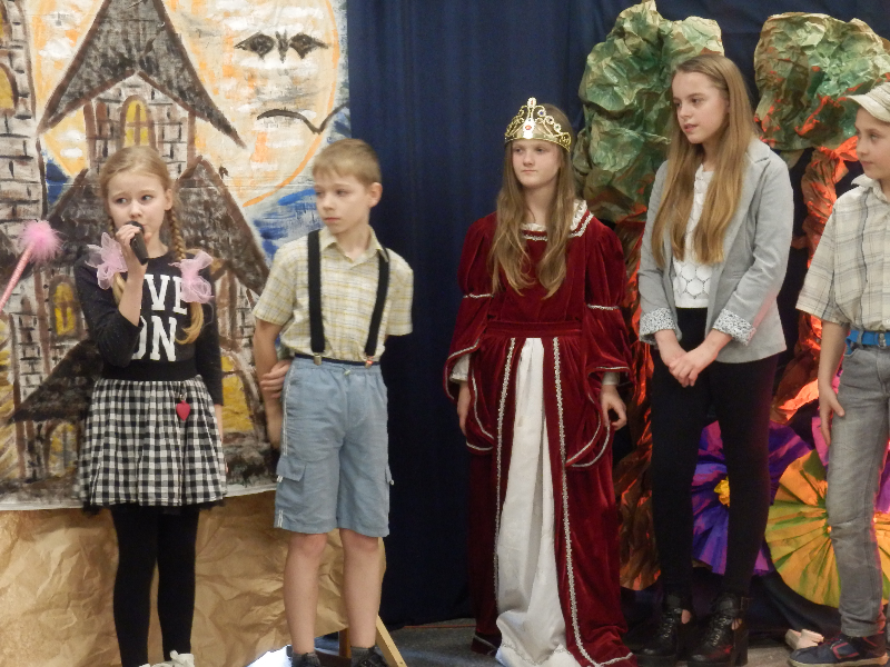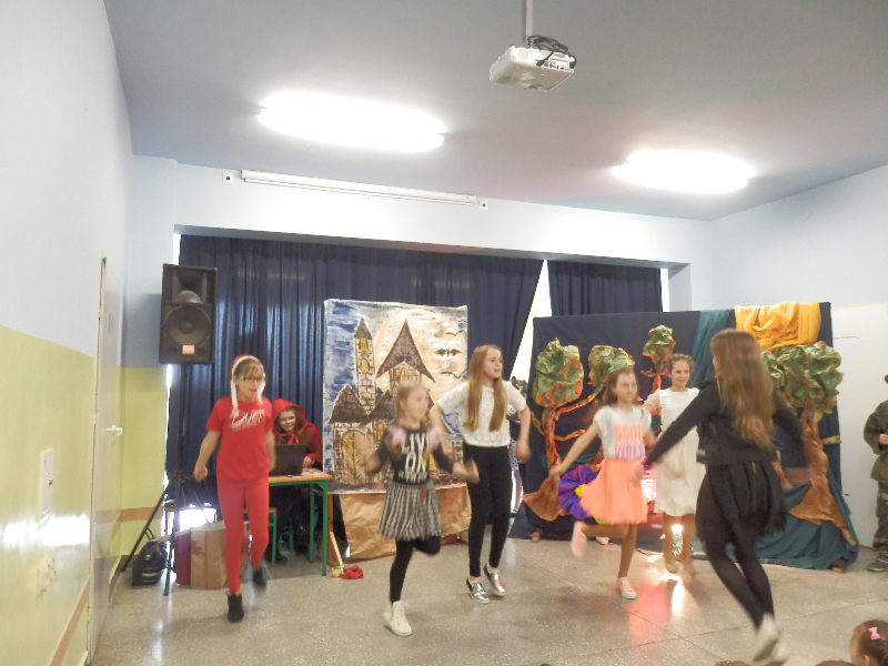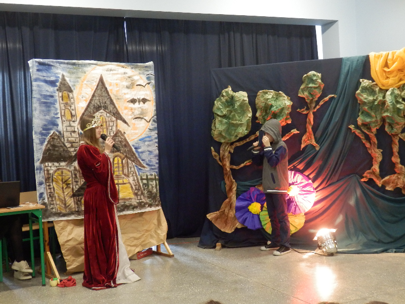 22.03.2016r. uczniowie z koła polonistycznego wraz z panią Anną Kląskałą przygotowali przedstawienie na podstawie baśni dla klas I-VI.