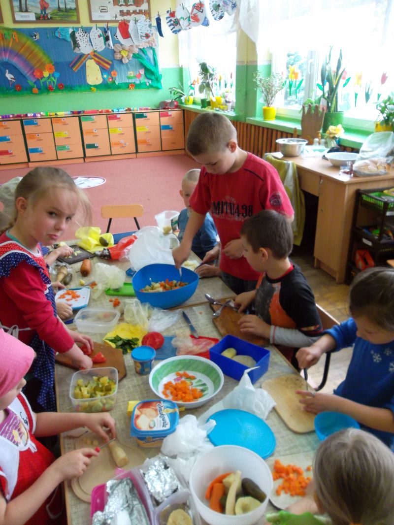 „Witaminki, witaminki” – przedszkolaki przygotowują sałatkę jarzynową