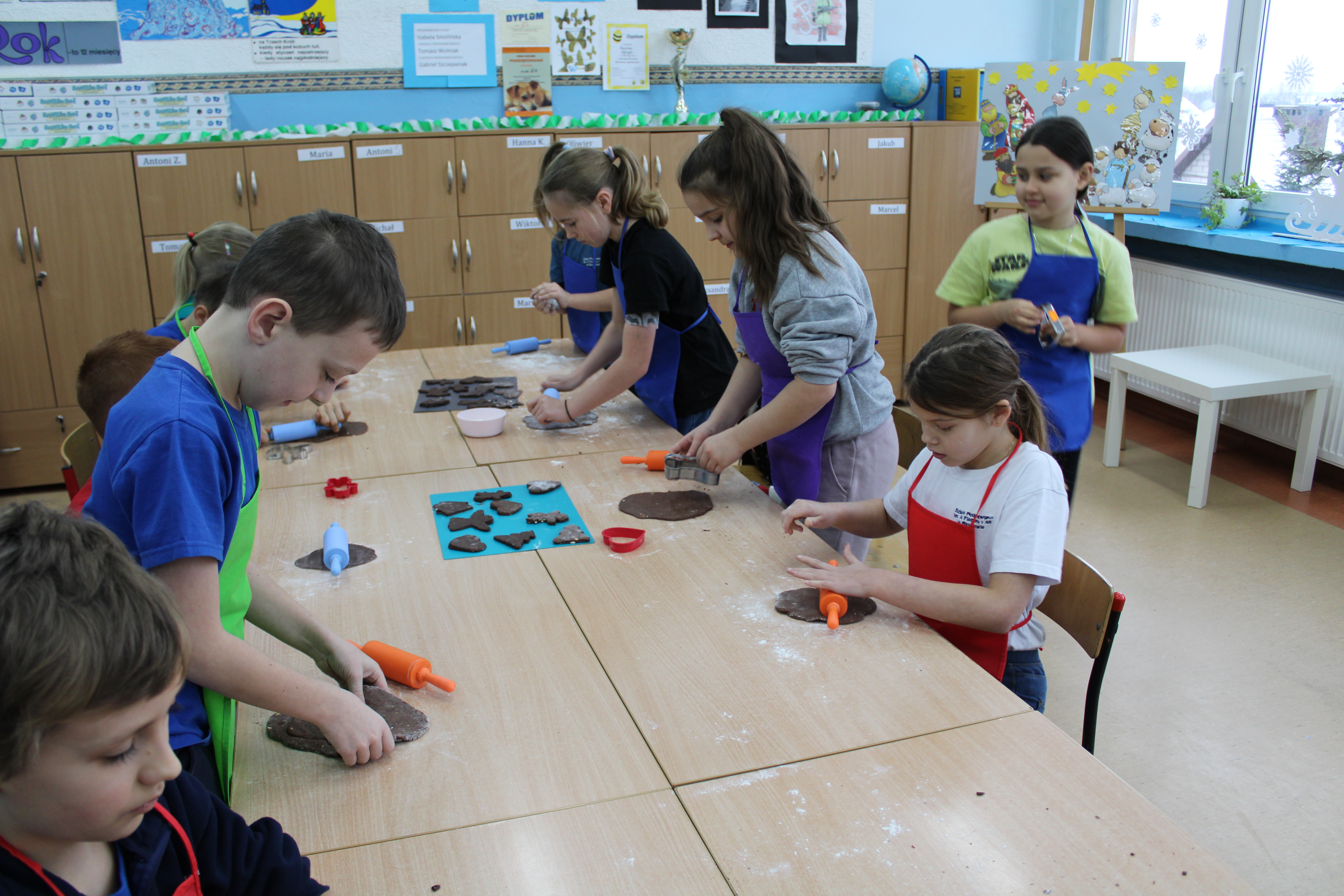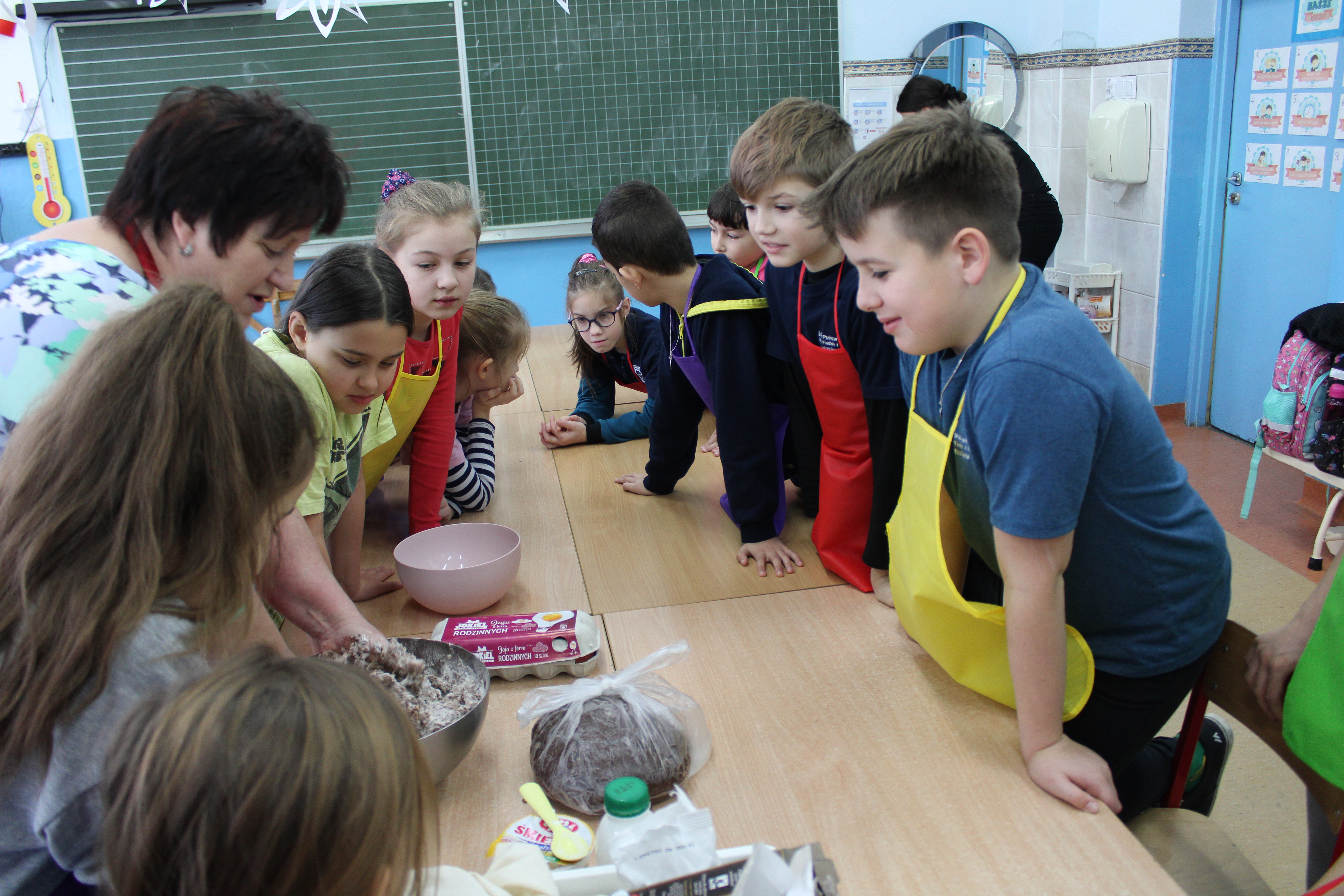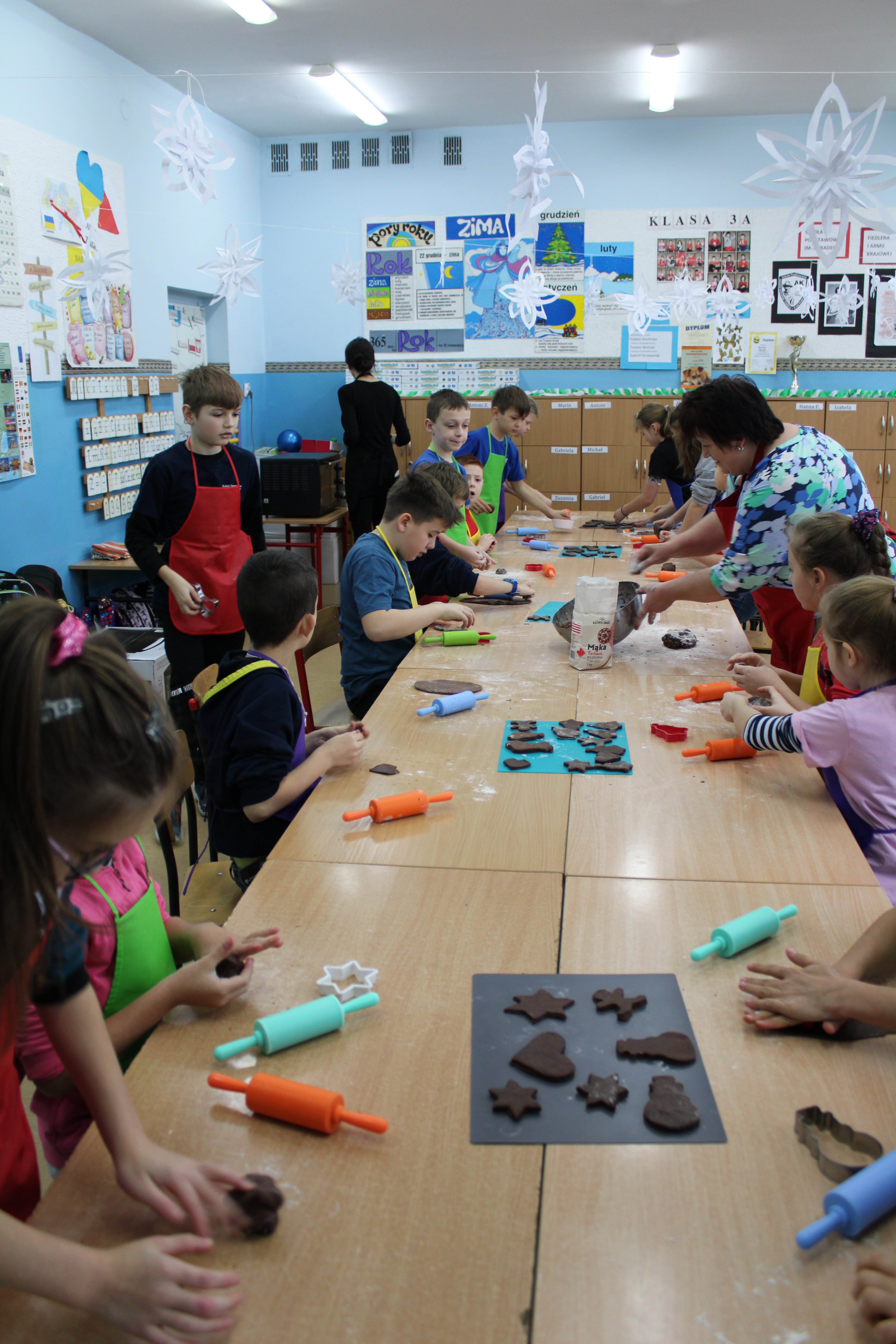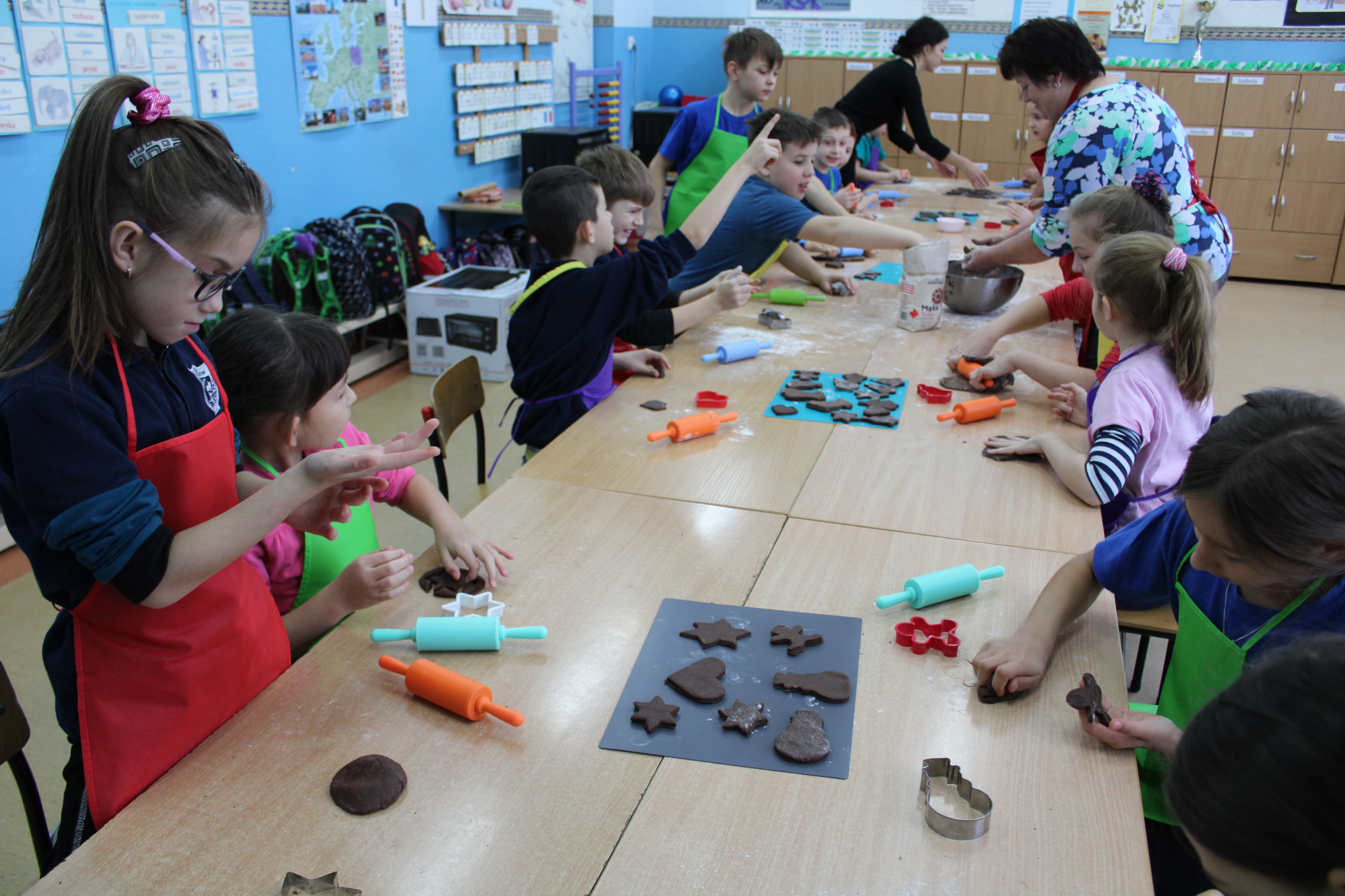 12 grudnia 2022r. uczniowie klasy III a wzięli udział w zajęciach kulinarnych, gdzie pod opieką doświadczonych kucharek mieli okazję nauczyć się wypieku pysznych, świątecznych pierników. Wszyscy samodzielnie wałkowali przygotowane ciasto, wycinali foremkami ulubione kształty, obserwowali proces pieczenia się ciastek, z wielkim zaangażowaniem dekorowali upieczone pierniczki.