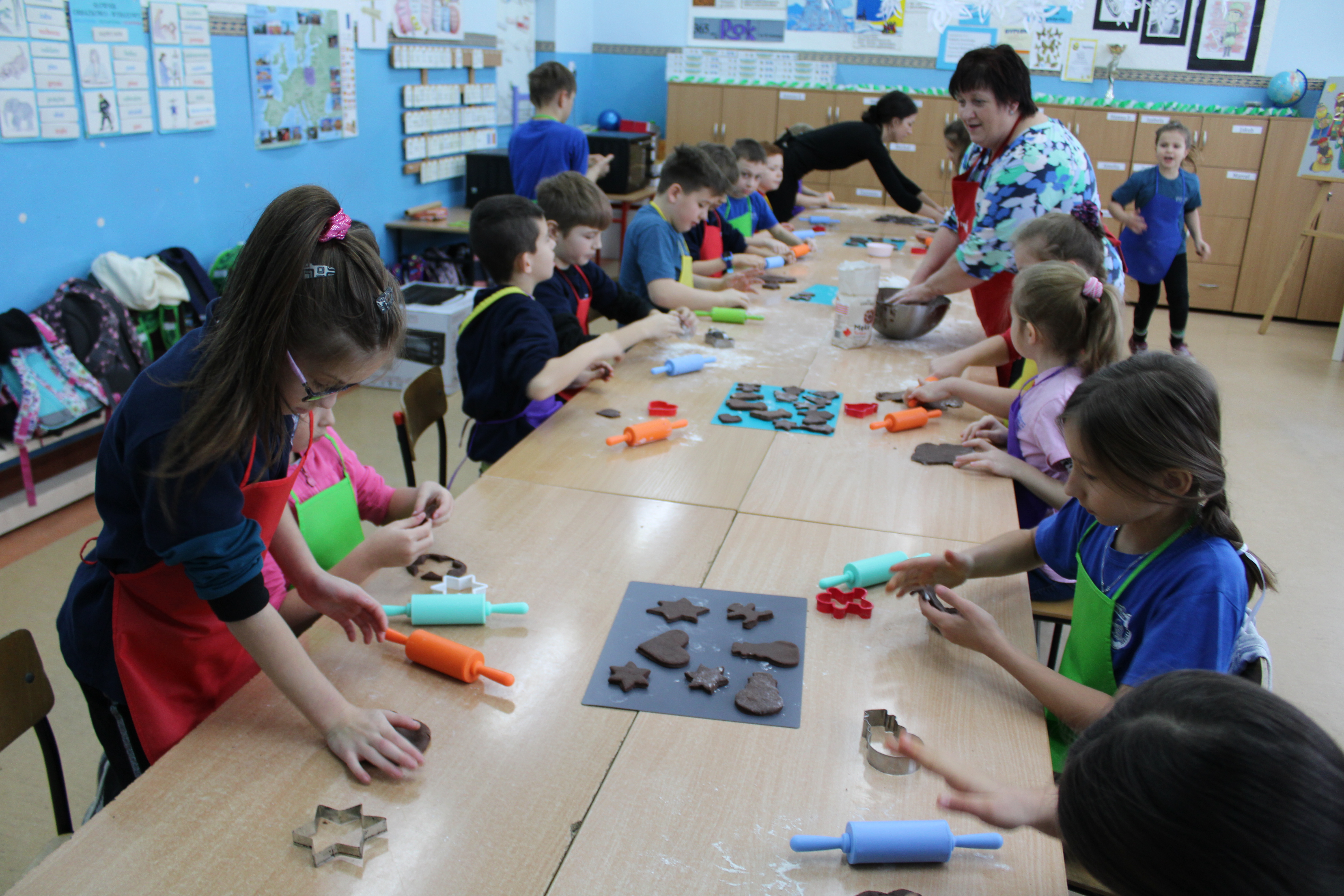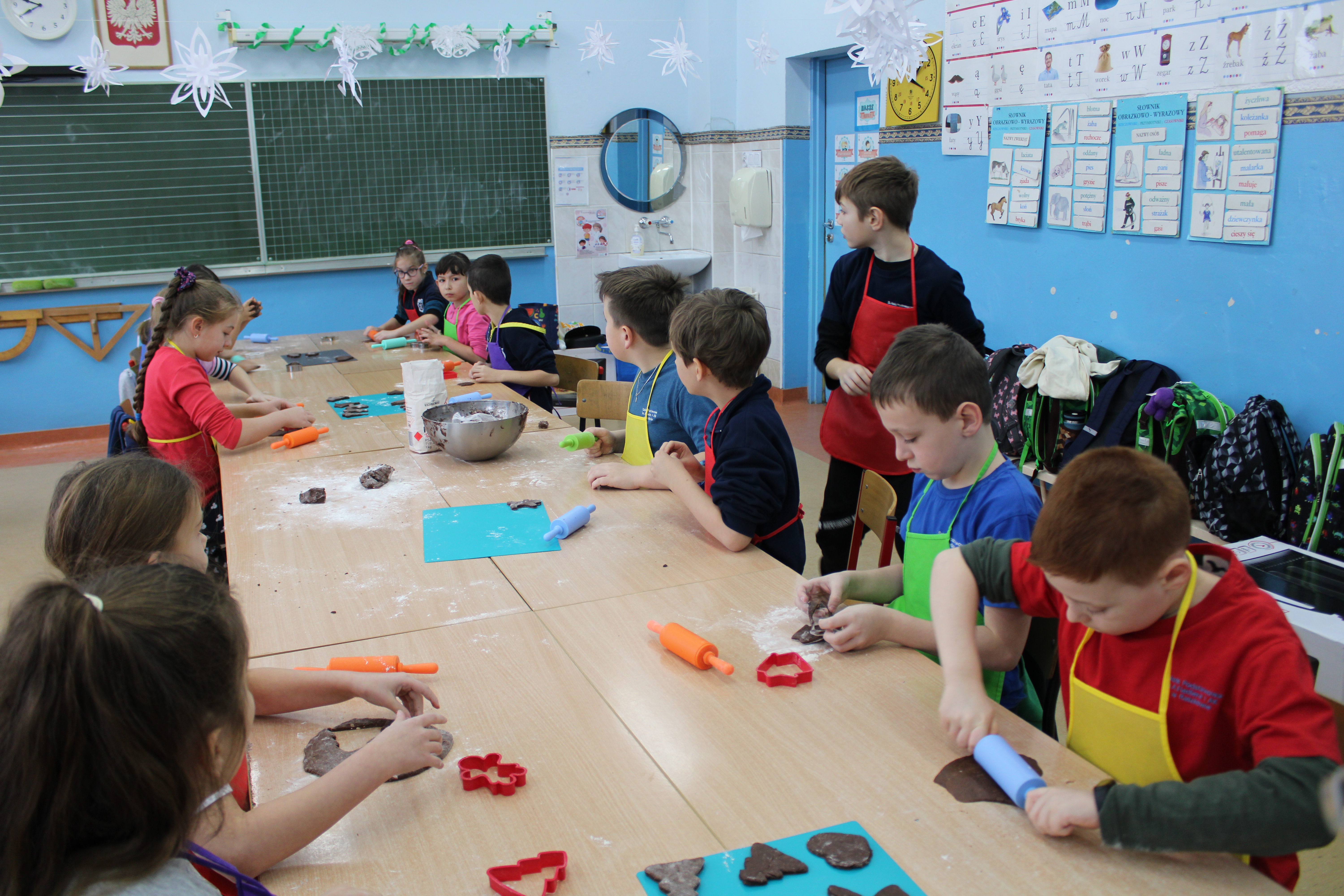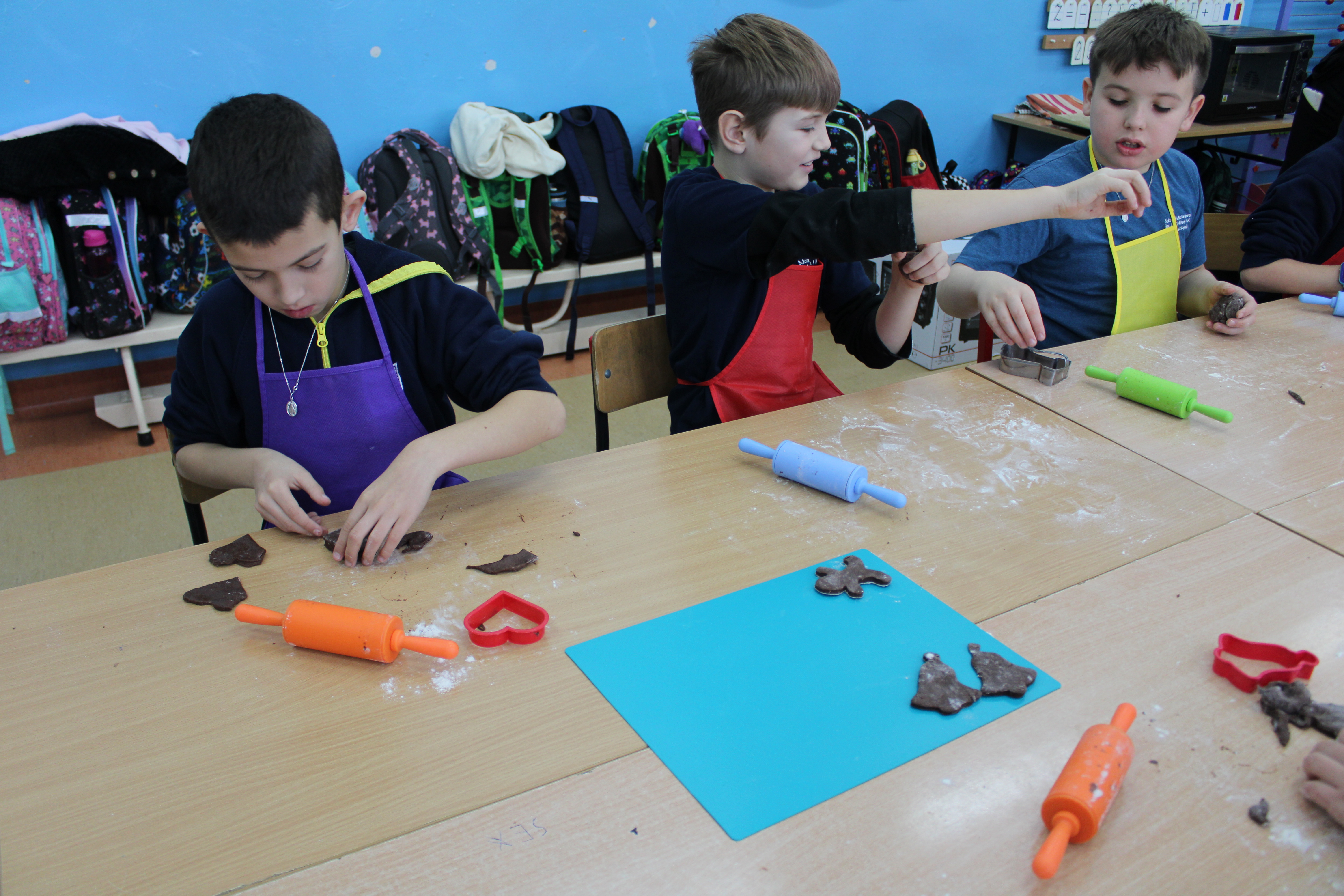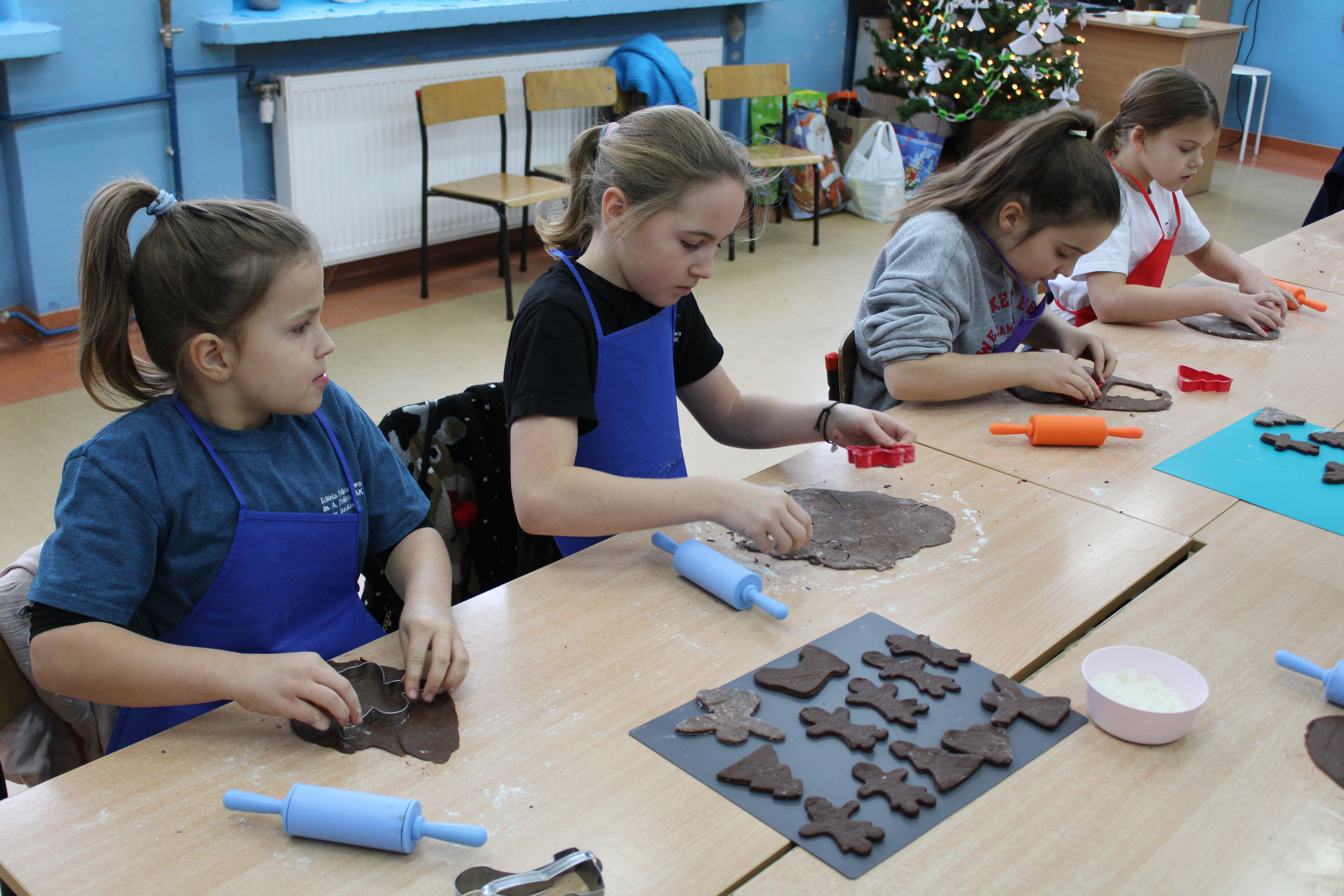 12 grudnia 2022r. uczniowie klasy III a wzięli udział w zajęciach kulinarnych, gdzie pod opieką doświadczonych kucharek mieli okazję nauczyć się wypieku pysznych, świątecznych pierników. Wszyscy samodzielnie wałkowali przygotowane ciasto, wycinali foremkami ulubione kształty, obserwowali proces pieczenia się ciastek, z wielkim zaangażowaniem dekorowali upieczone pierniczki.