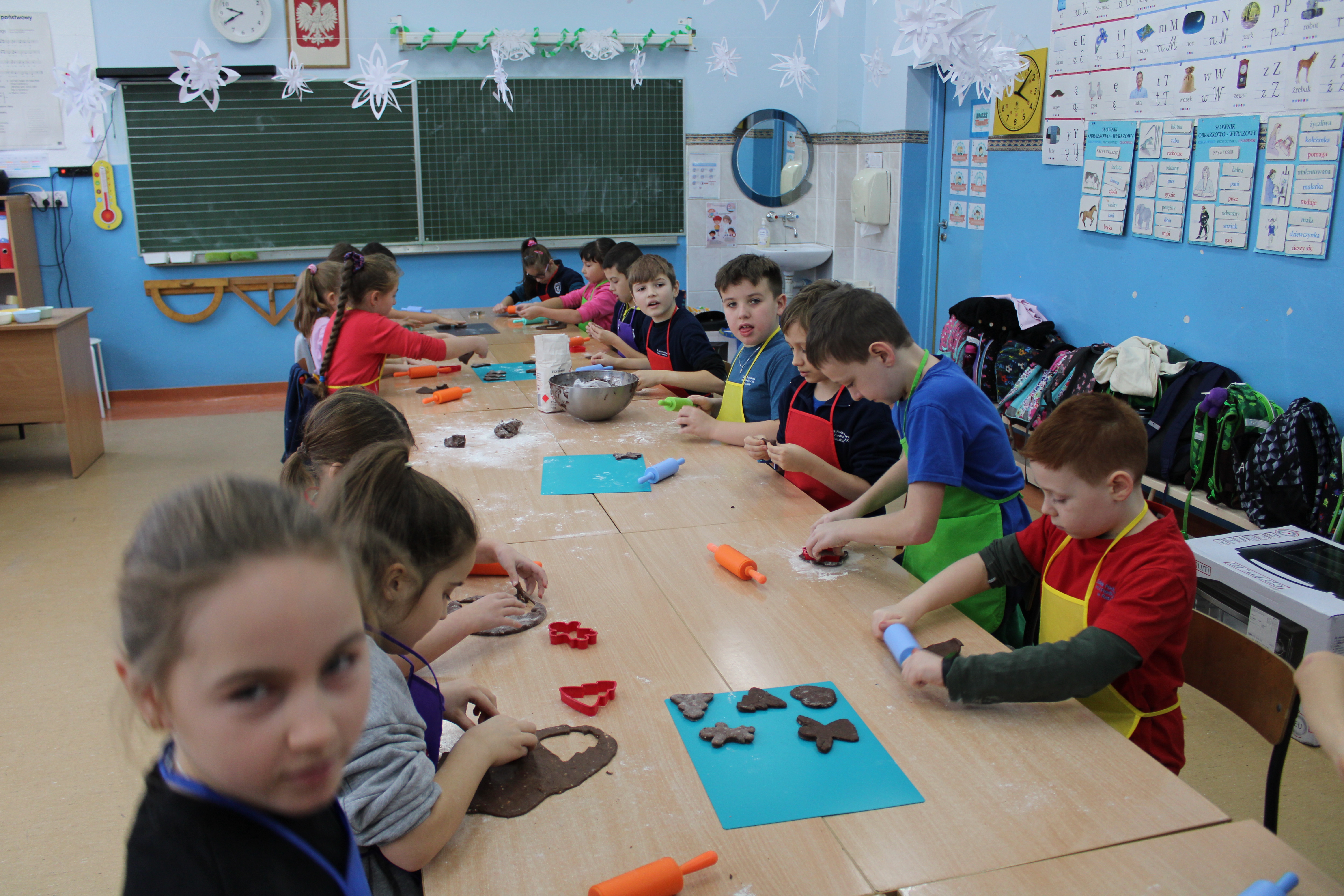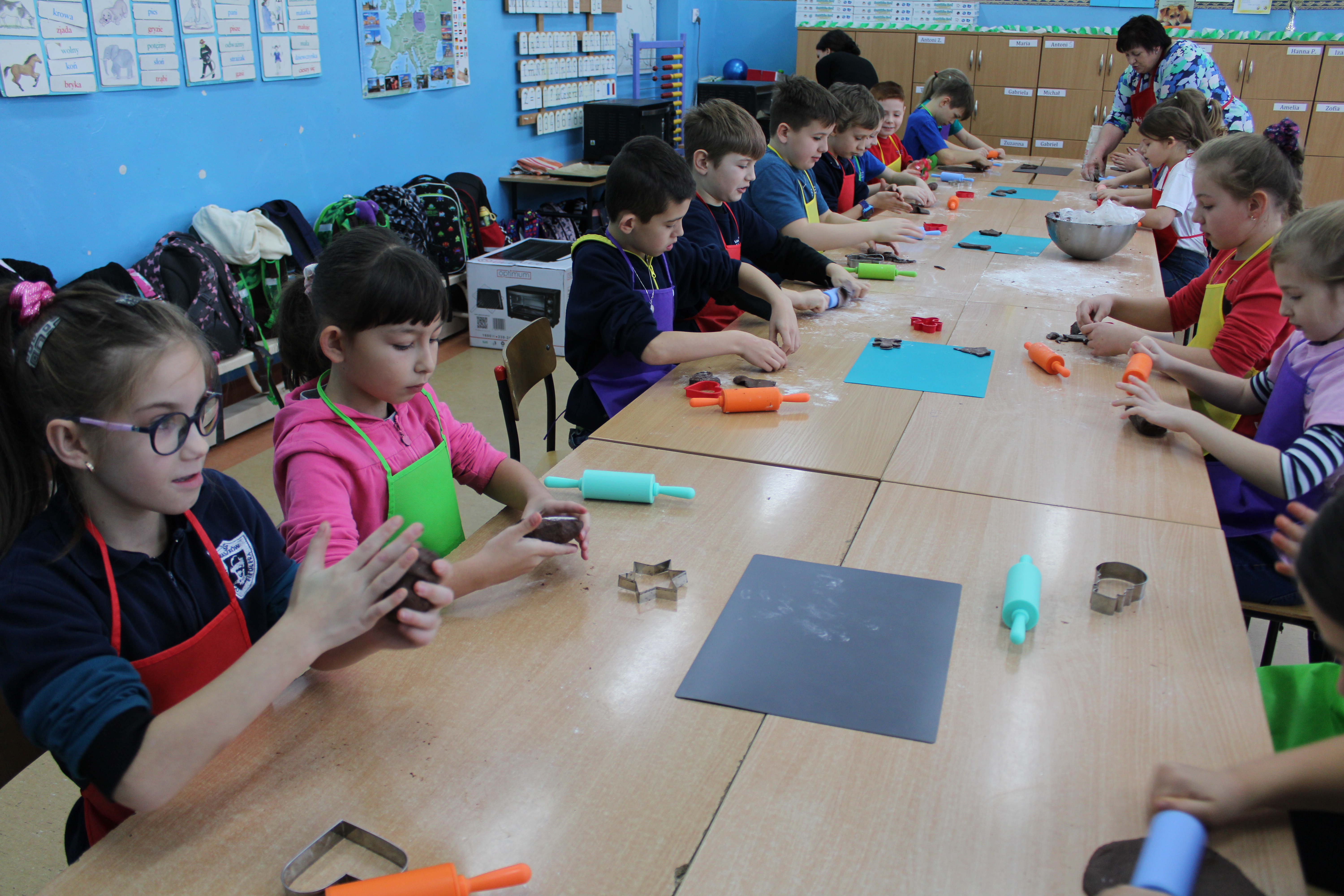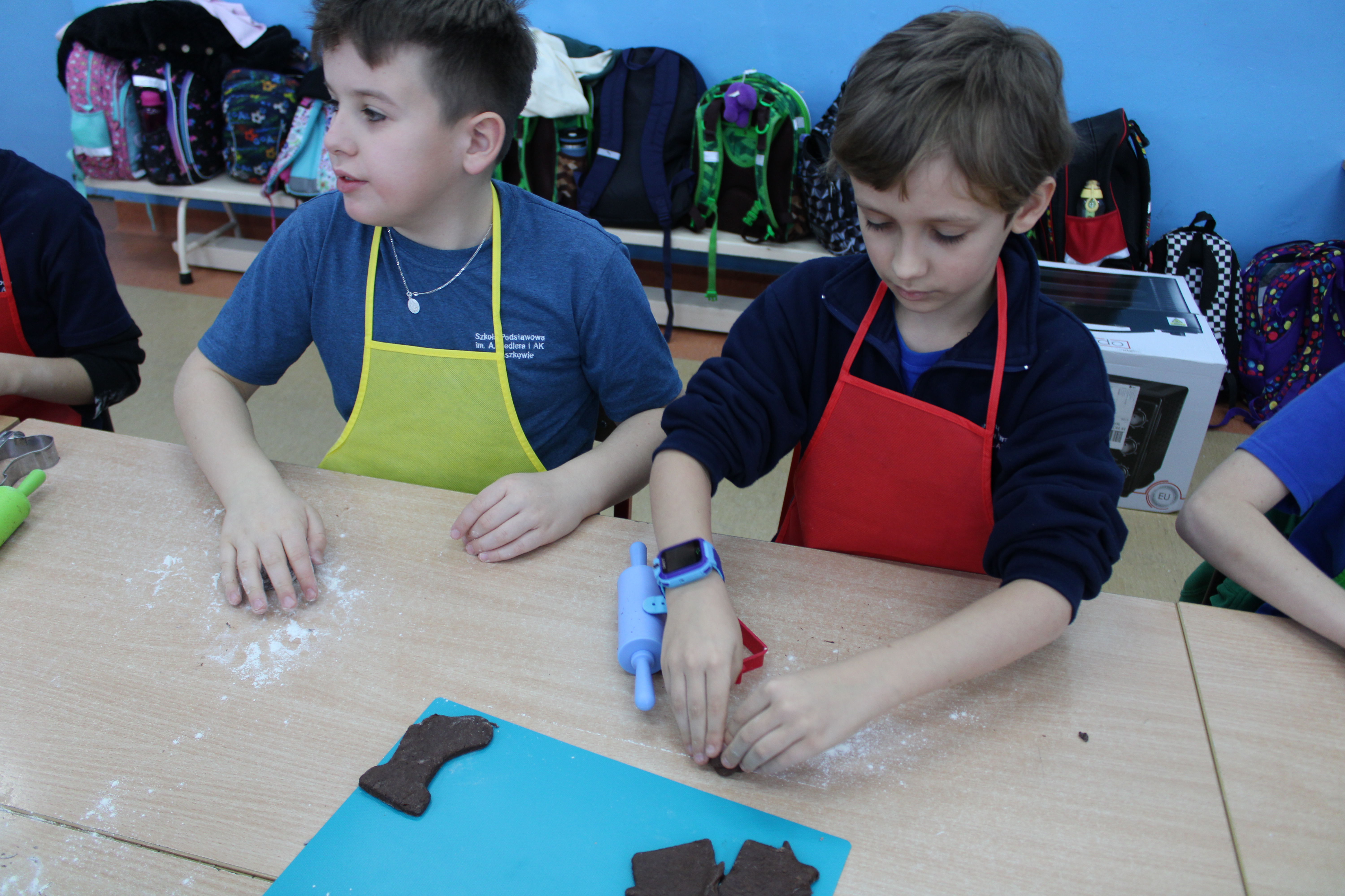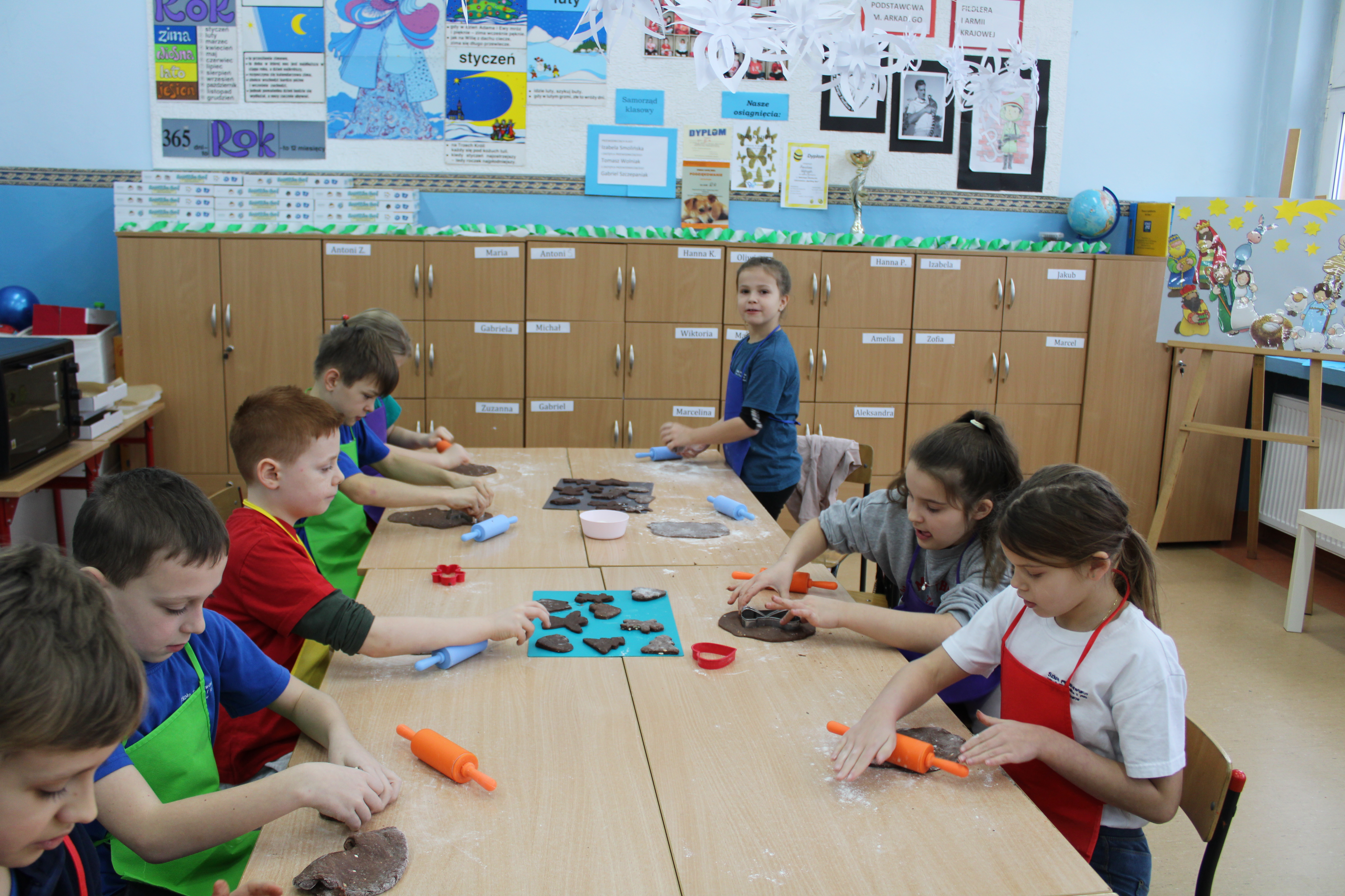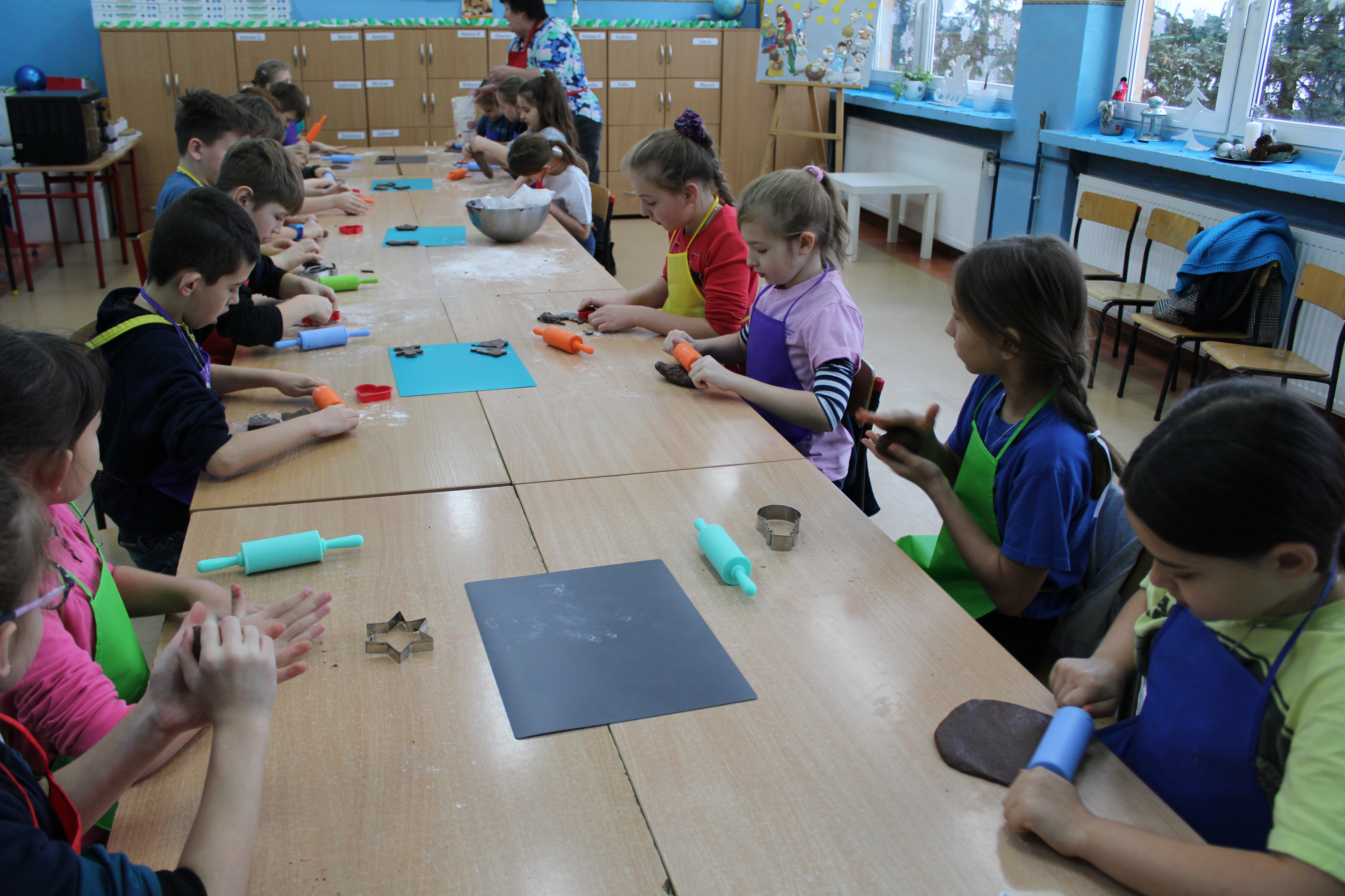 12 grudnia 2022r. uczniowie klasy III a wzięli udział w zajęciach kulinarnych, gdzie pod opieką doświadczonych kucharek mieli okazję nauczyć się wypieku pysznych, świątecznych pierników. Wszyscy samodzielnie wałkowali przygotowane ciasto, wycinali foremkami ulubione kształty, obserwowali proces pieczenia się ciastek, z wielkim zaangażowaniem dekorowali upieczone pierniczki.