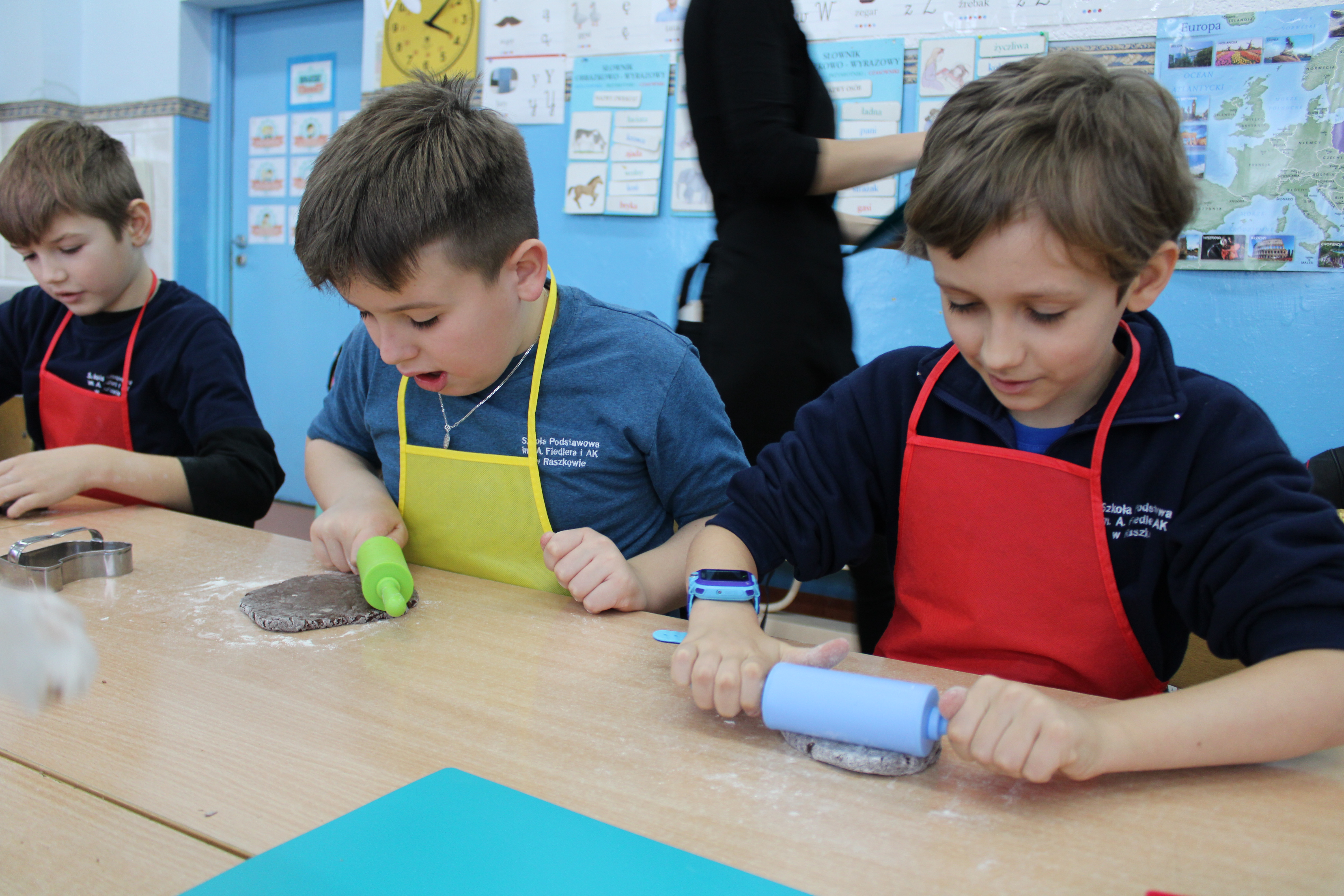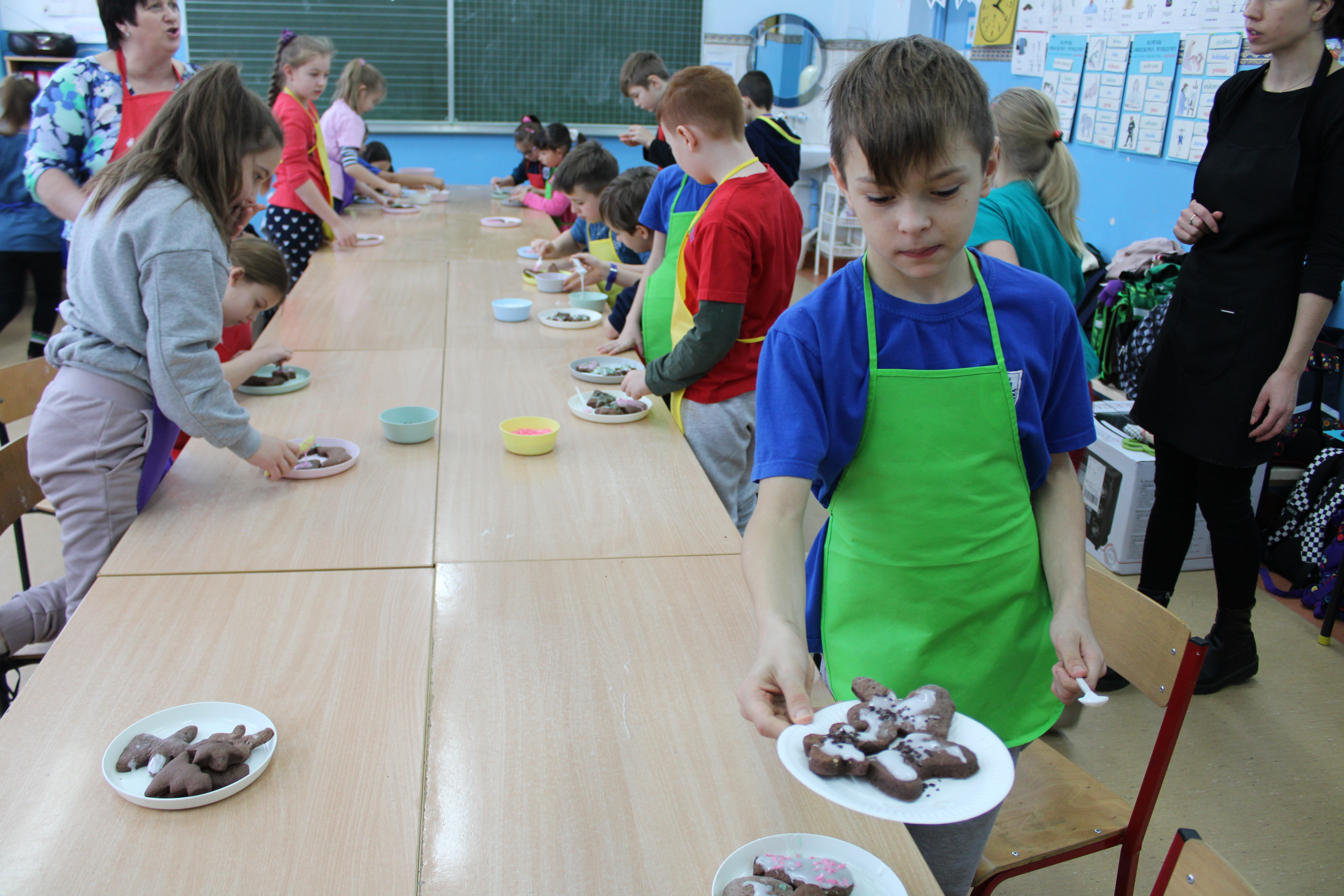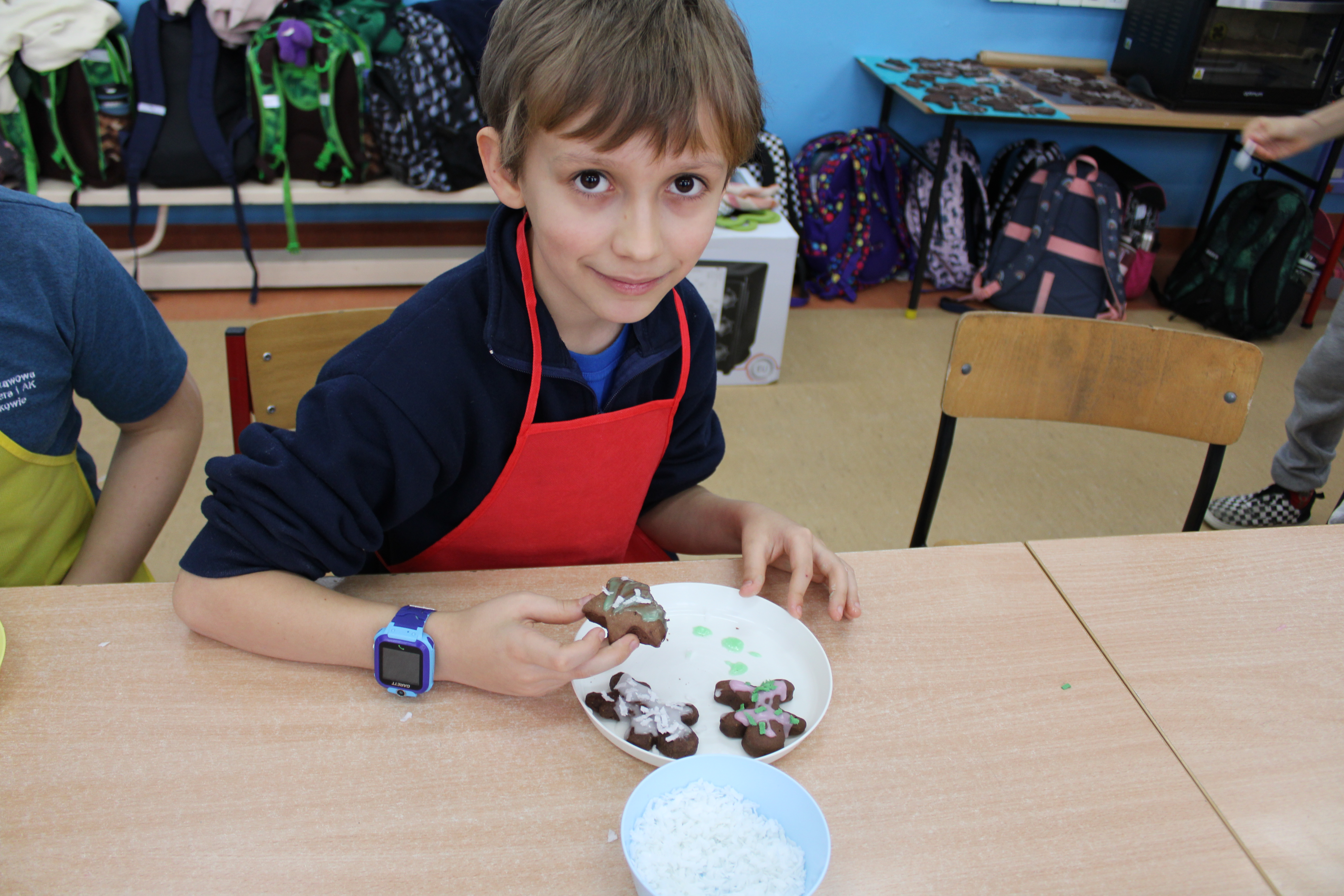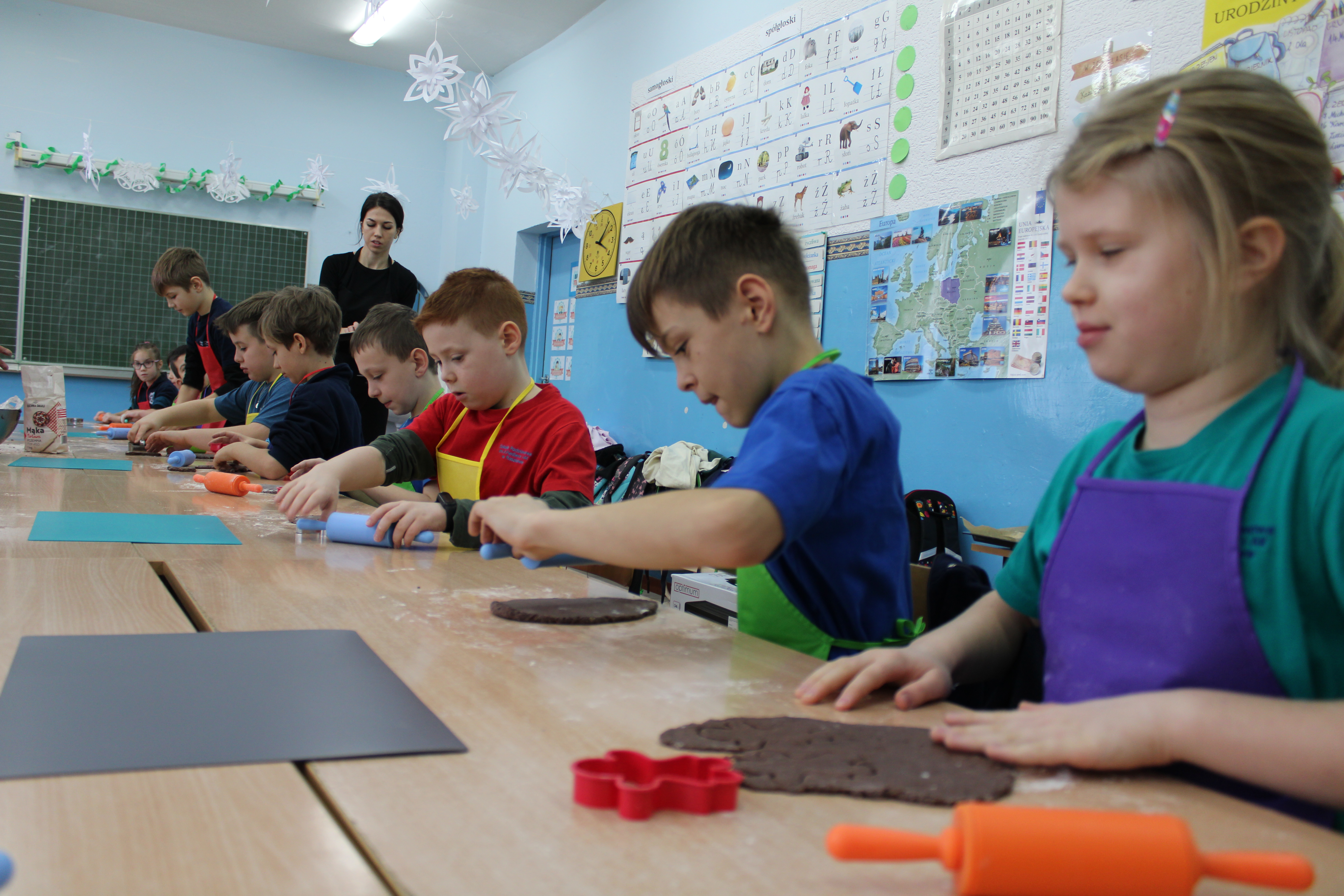 12 grudnia 2022r. uczniowie klasy III a wzięli udział w zajęciach kulinarnych, gdzie pod opieką doświadczonych kucharek mieli okazję nauczyć się wypieku pysznych, świątecznych pierników. Wszyscy samodzielnie wałkowali przygotowane ciasto, wycinali foremkami ulubione kształty, obserwowali proces pieczenia się ciastek, z wielkim zaangażowaniem dekorowali upieczone pierniczki.
