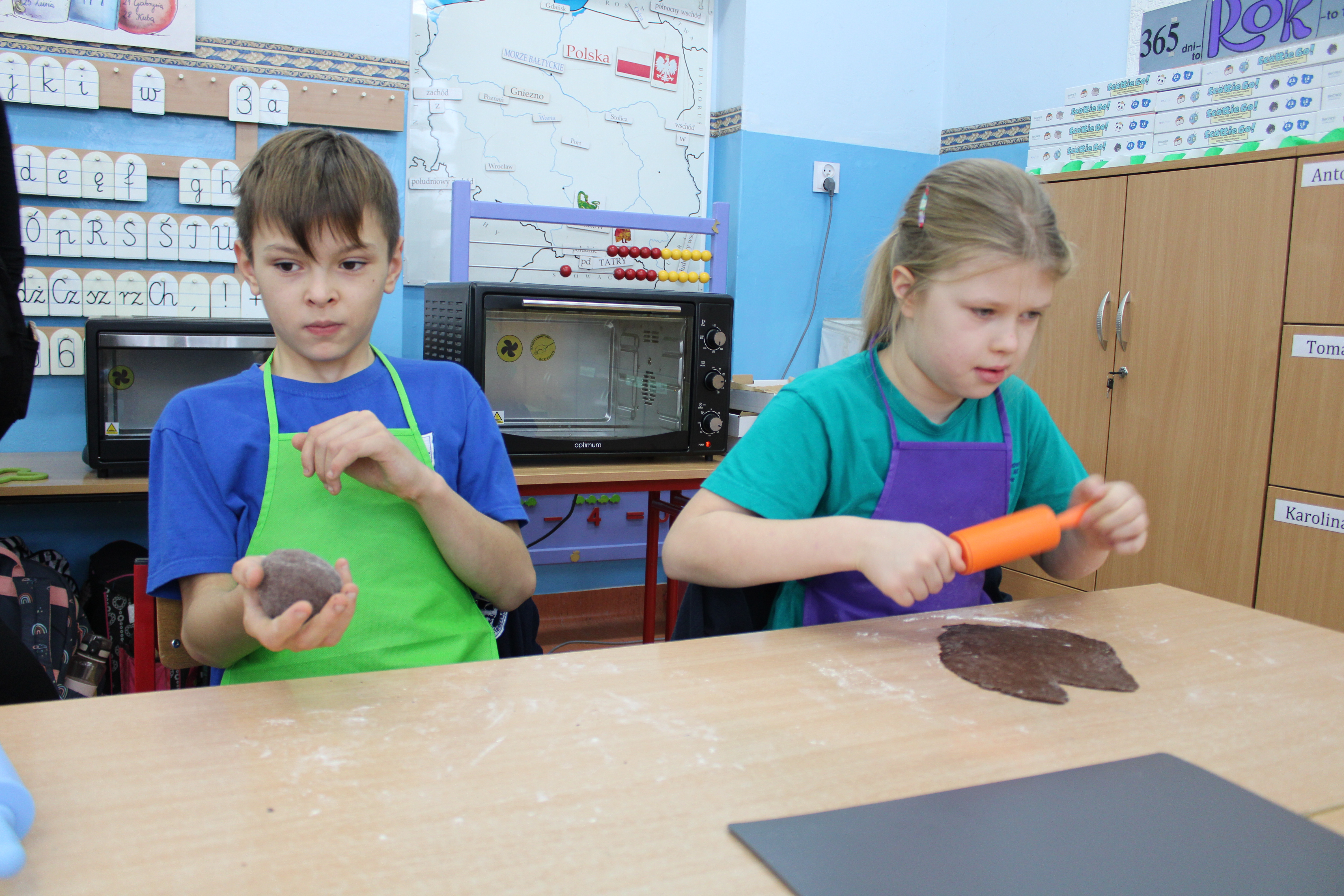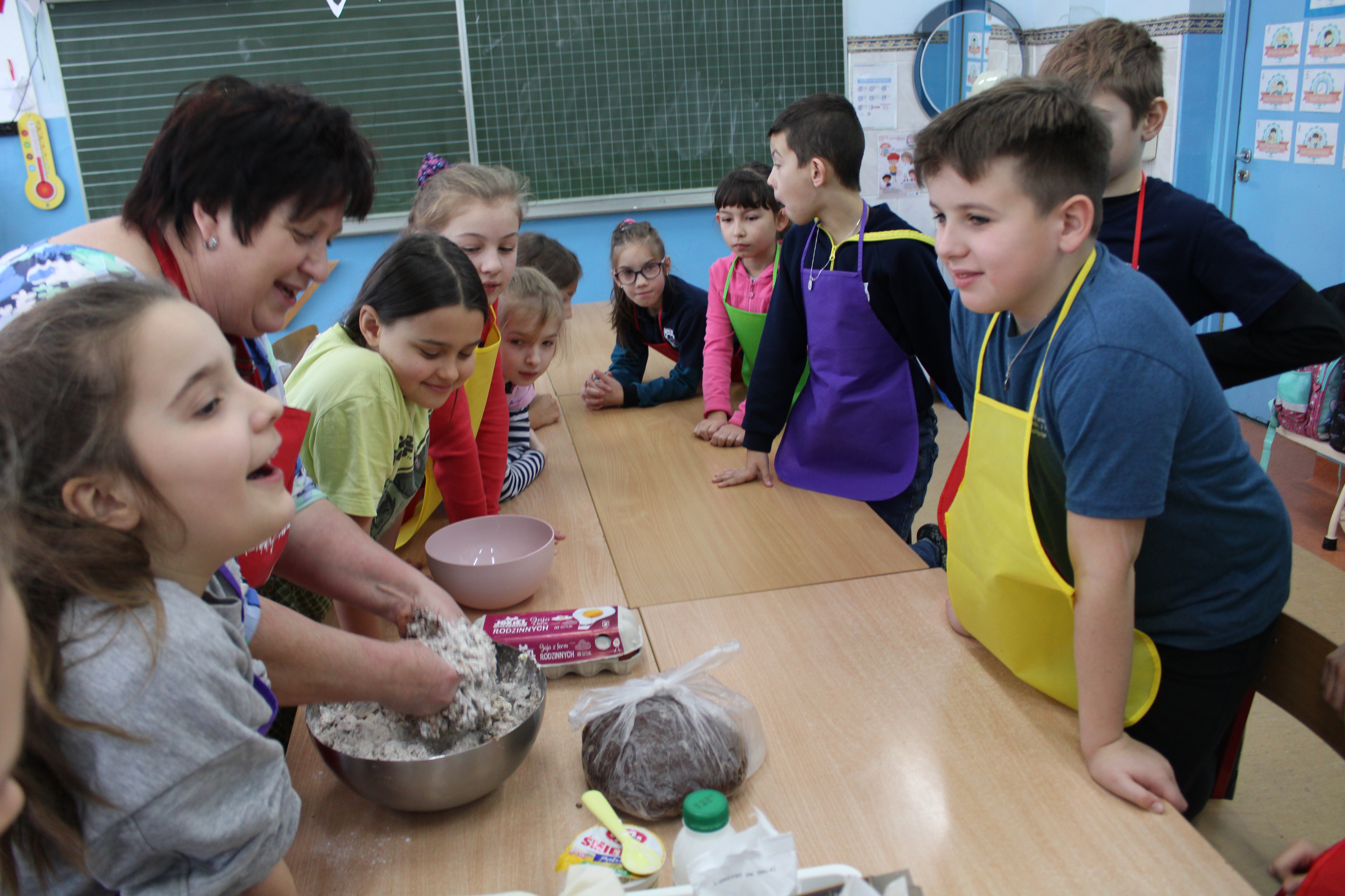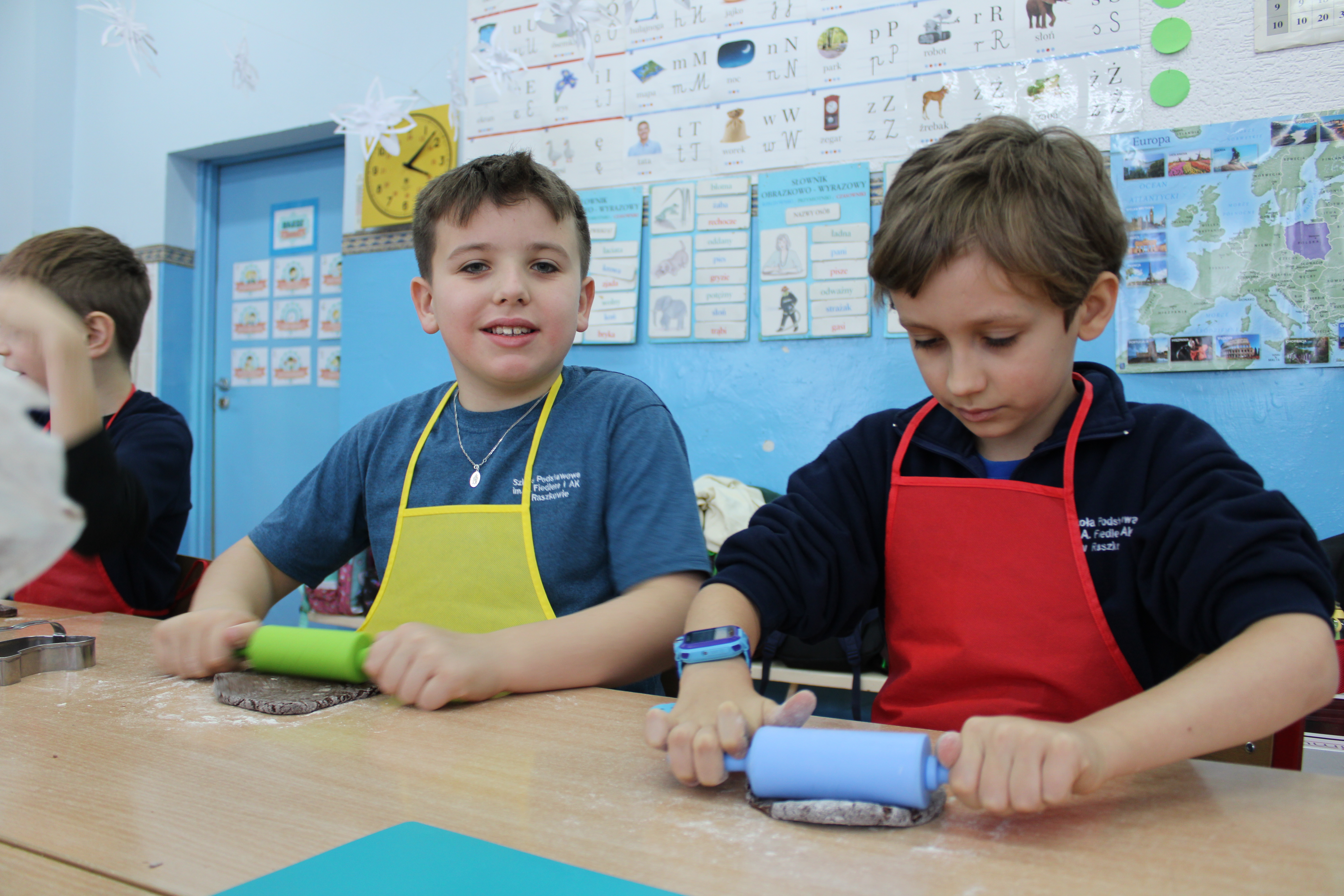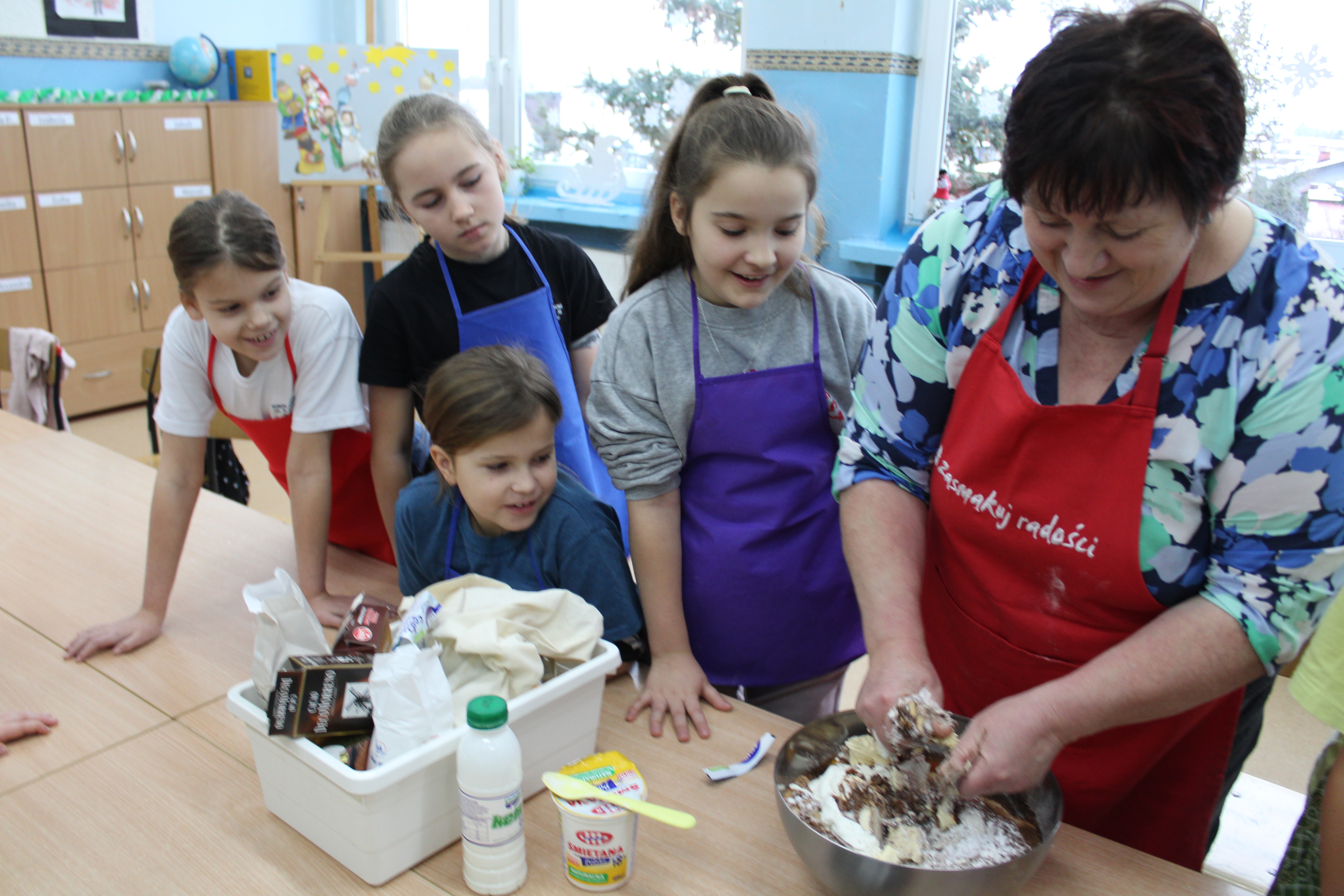 12 grudnia 2022r. uczniowie klasy III a wzięli udział w zajęciach kulinarnych, gdzie pod opieką doświadczonych kucharek mieli okazję nauczyć się wypieku pysznych, świątecznych pierników. Wszyscy samodzielnie wałkowali przygotowane ciasto, wycinali foremkami ulubione kształty, obserwowali proces pieczenia się ciastek, z wielkim zaangażowaniem dekorowali upieczone pierniczki.