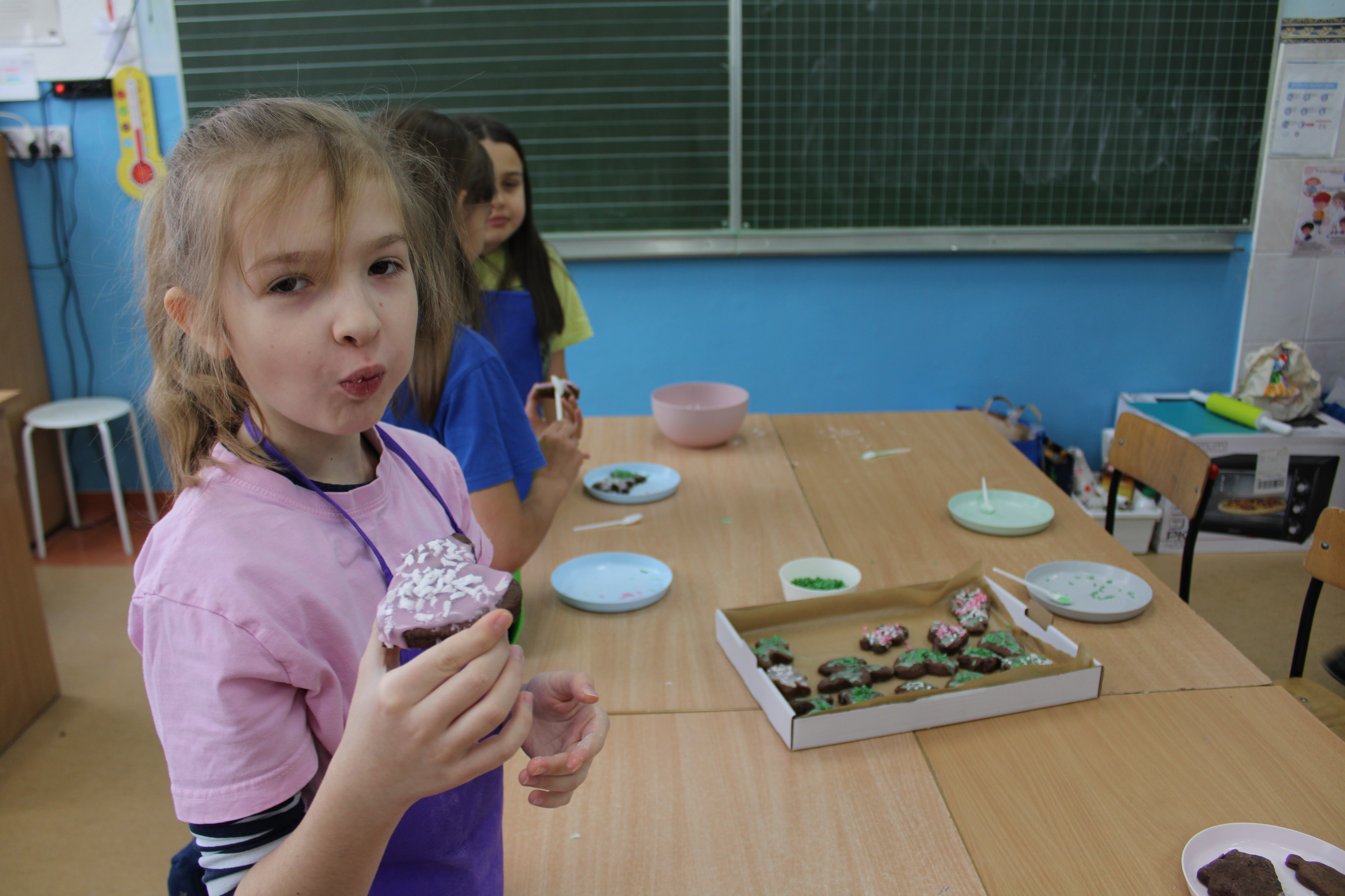 Akcja wspólnego pieczenia pierników przyciągnęła zapachem wielu fanów tego smakołyku. Nikt nie opuścił klasy bez skosztowania jednego z nich. Takze wśród Małych Cukierników z klasy 3a nie obyło się bez zjedzenia choćby jednego ciasteczka, gdyż wspaniałe pierniczki swoim wyglądem i smakiem nęciły wszystkich. W całej klasie unosił się korzenny zapach przywołujący najmilsze wspomnienia świąteczne.