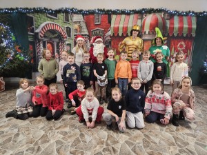 Na miejscu dzieci zostały serdecznie powitane przez pomocne elfy, które zaprosiły je do wspólnej zabawy. Uczniowie uczestniczyli w ciekawych warsztatach, podczas których ozdabiali magnesy oraz poznawali bożonarodzeniowe tradycje. Nie zabrakło również zabaw ruchowych i śpiewania świątecznych piosenek.