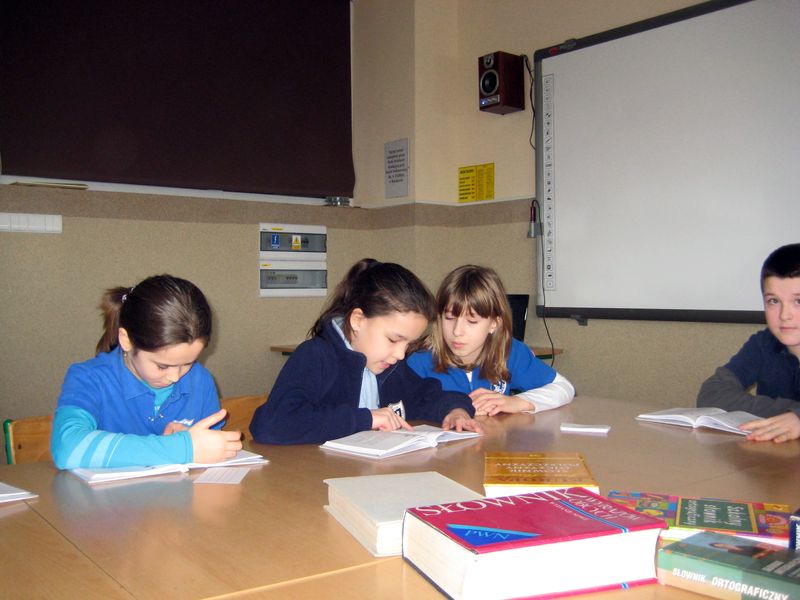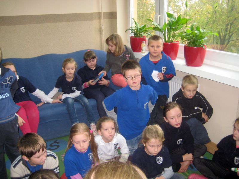 W czasie zajęć uczniowie zastanawiali się, w jaki sposób, na co dzień „kaleczą mowę ojczystą” – najczęściej nie używając „ogonków”, czyli znaków diaktrycznych, tak charakterystycznych dla języka polskiego. Obiecali, że wysyłając SMS lub e-mail będą pamiętać o „ąściach”. Na zakończenie spotkania przystąpiliśmy do maratonu czytelniczego – uczniowie głośno czytali „ Rekreacje Mikołajka” – mamy nadzieję, że zachęciliśmy wszystkich uczniów do przeczytania dalszych losów głównego bohatera.