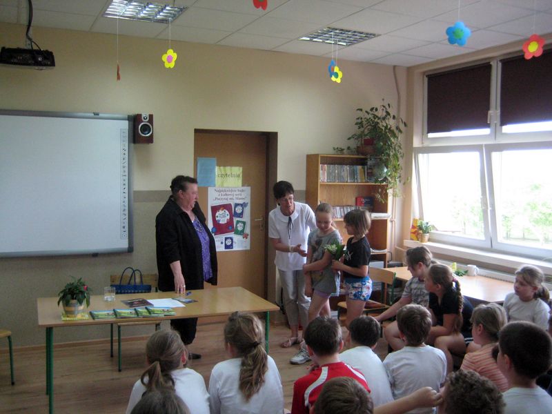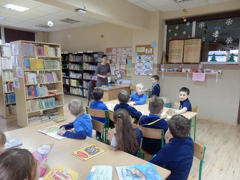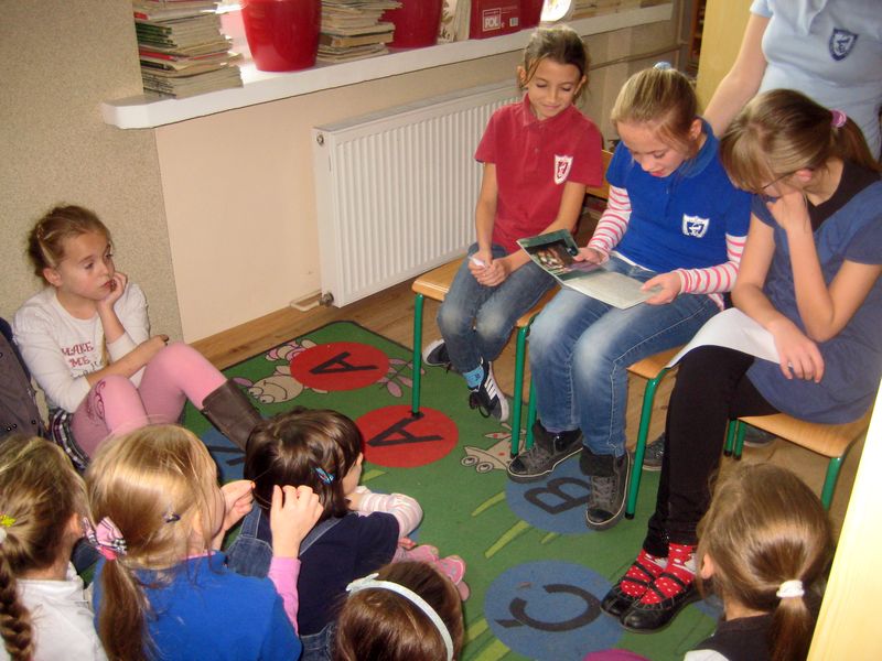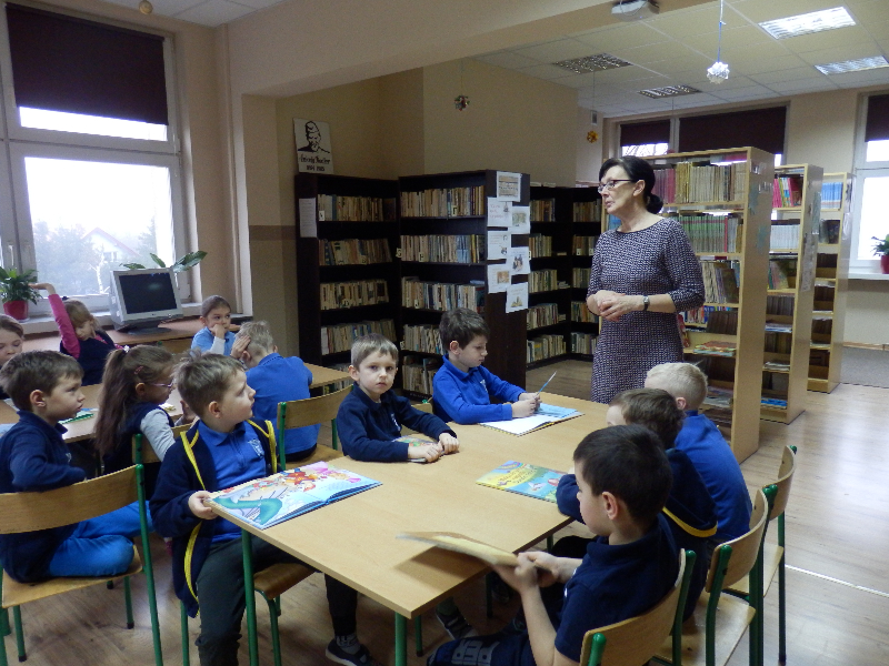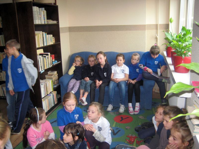 Podczas tej wizyty uczniowie poznali regulamin biblioteki i czytelni, już wiedzą jak należy się zachować, jakich reguł przestrzegać, aby być wzorowym czytelnikiem. Było to ciekawe spotkanie, były wiersze, zagadki, uczniowie poznali bohaterów ciekawych książek dla dzieci. Zajęcia pomogły przygotować dziewczęta z Koła Miłośników Książek – recytowały wiersze, prezentowały zagadki, pomagały rozwiązywać zagadki swoim młodszym kolegom.