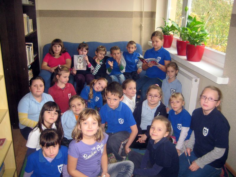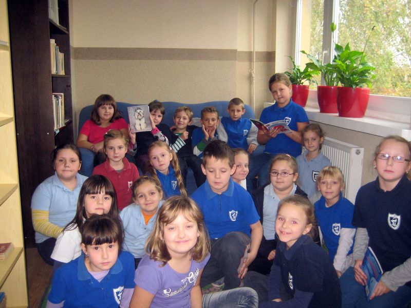 . Czytaliśmy już książki Czesława Janczarskiego, Janiny Porazińskiej Marii Kruger oraz wiersze Juliana Tuwima. Październik to miesiąc dobroci dla zwierząt, dlatego biblioteka szkolna przygotowała okolicznościową gazetkę, poświęconą naszym milusińskim, wystawę książek, których bohaterami są psy. Na głośne czytanie do biblioteki zapraszała pani bibliotekarka i książki Holly Webb „Wróć Alfiku” i „W poszukiwaniu domu”.