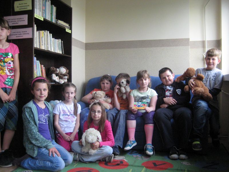 W bibliotece szkolnej zorganizowano imprezę czytelniczą z okazji Światowego Dnia Pluszowego Misia. Celem spotkania z uczniami klas I-III było: kształtowanie i rozwijanie zainteresowań czytelniczych i artystycznych, wyrabianie u dzieci nawyku korzystania ze zbiorów biblioteki szkolnej, rozwijanie aktywnej postawy w czasie spotkania, kształtowanie poczucia szacunku do zabawek i książek oraz zachęcanie do czytania książek o określonej tematyce. W tym roku z pluszowym misiem dzieci bawiły się przez dwa dni. Dzień pierwszy to tradycyjna już Misiowa spartakiada, przygotowana w formie misiowego toru przeszkód.Dzieci miały do pokonania test sprawnościowy, zabawę ruchową z piłką, test odwagi polegający na przejściu przez tunel i wiele innych. W czasie zabawy dzieciom towarzyszyły przyniesione z domu maskotki – pluszowe misie. Wszyscy bawili się znakomicie, dokładnie wykonując zaplanowane przez nauczyciela wychowania fizycznego, pana Sławomira Krawczyka, sportowe zadania. Drugi dzień zabawy z pluszowym misiem to zajęcia prowadzone przez panią bibliotekarkę Katarzynę Zaworską – czytanie opowiadania o zielonym misiu, zagadki związane z misiami i ulubione przez dzieci kolorowanki. W bibliotece szkolnej na uczniów czekała wystawa książek z misiami w roli tytułowej i okolicznościowa gazetka.