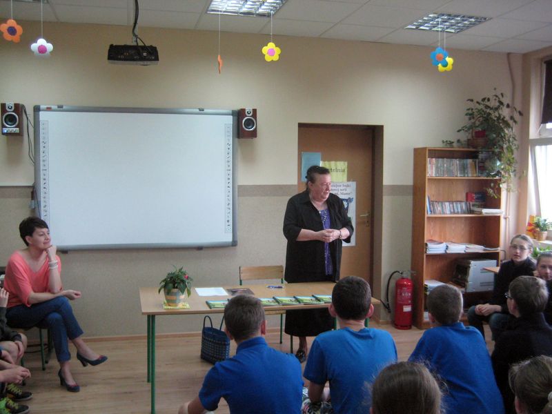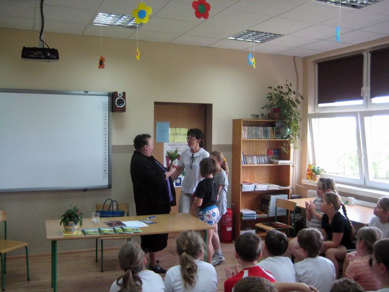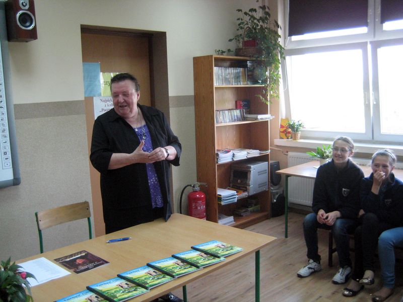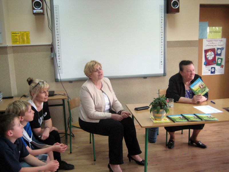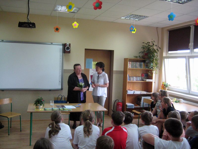 Autorka książki w bardzo ciekawy sposób przedstawiła uczniom „proces” powstawania książki , od samej myśli o pisaniu do dnia, w którym książka znajdzie się w księgarni. Opowiadała również o wsi Skrzebowa, w której się urodziła i do której czuje ogromny sentyment. W spotkaniu wzięły udział wszystkie klasy II, III, IV i VI.