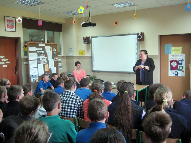 Gościem biblioteki szkolnej była pani Urszula Mróz, autorka książki „Tajemne ruiny. Opowieść prawdziwa”. Pani Urszula, była nauczycielka naszej szkoły, napisała książkę specjalnie dla dzieci, aby poznały niezwykłe dzieje kaplicy w maleńkiej wiosce Skrzebowa. Zebrane w niej opowieści nie są baśniami, wszystko wydarzyło się naprawdę. Przed wiekami w skrzebowskiej kaplicy znajdował się obraz Matki Boskiej, za przyczyną którego zdarzały się niezwykłe cuda, liczne uzdrowienia i niespotykane zjawiska. Dzisiaj po kaplicy zostały tylko ruiny, a cudowny obraz znajduje się w pobliskim kościele parafialnym.
