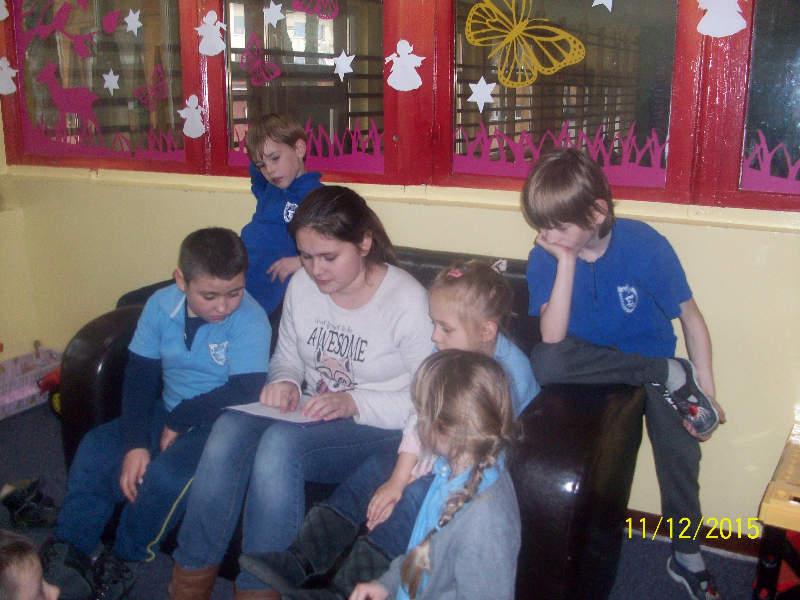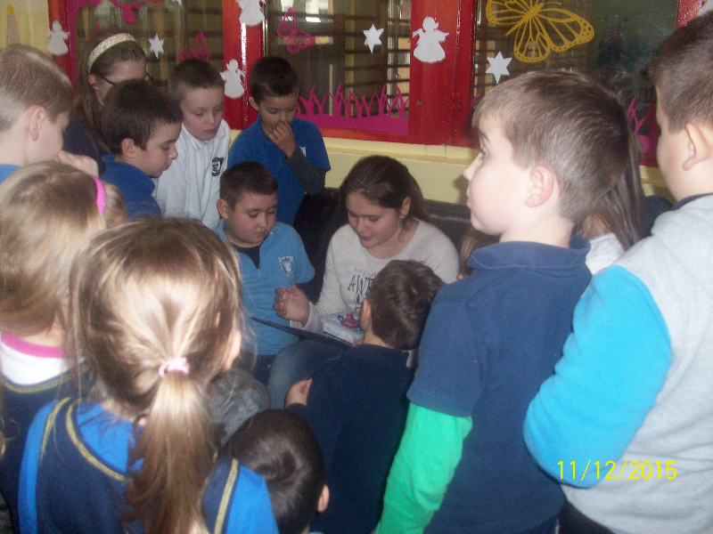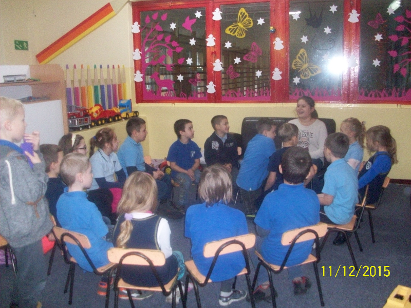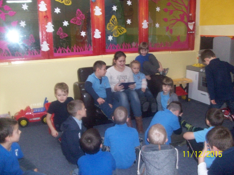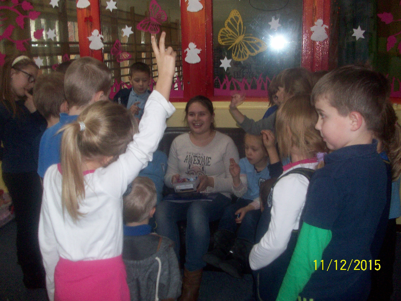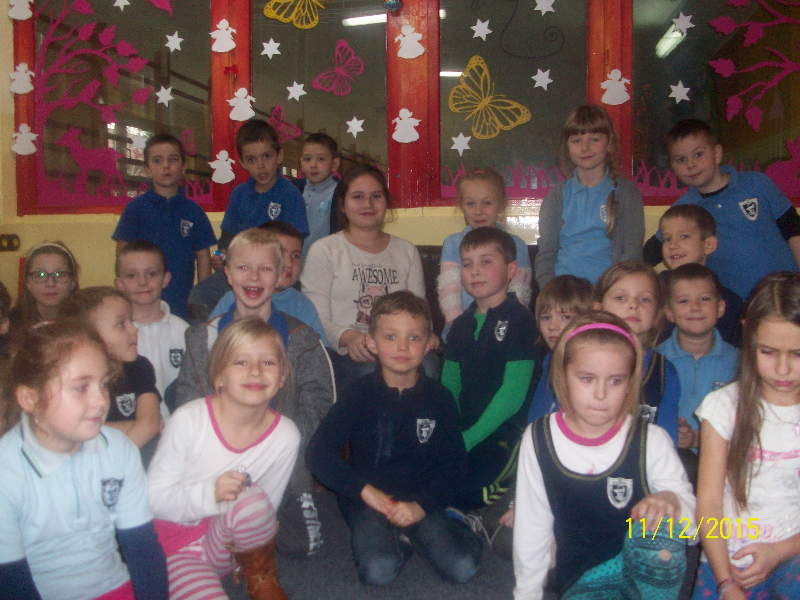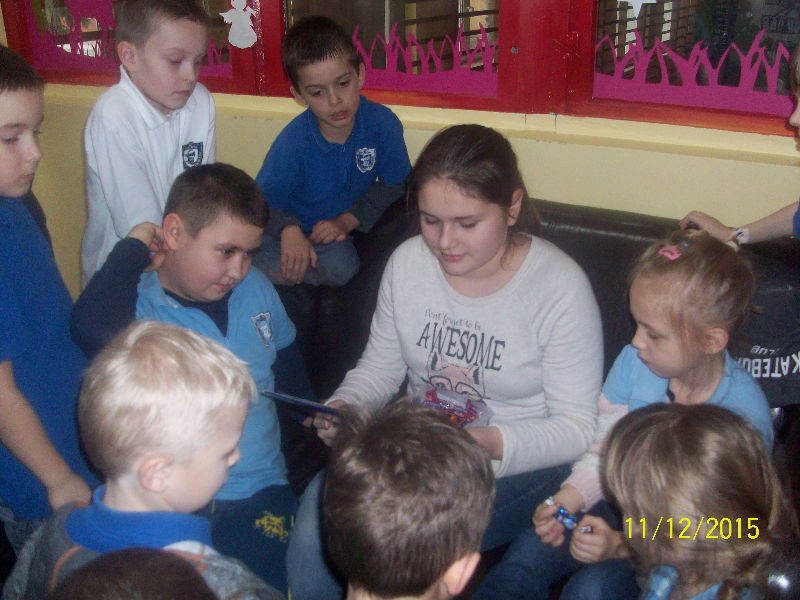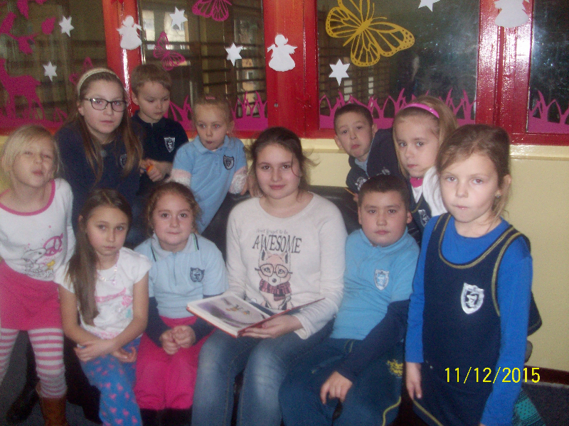 W piątek 11.12. gościem świetlicy „Kredkowej” była absolwentka naszej szkoły ADRIANNA SOBAŃSKA. Gimnazjalistka przeczytała uczniom kl. I- III autorską baśń pt. „Dziewczyna o cudownym głosie”. Dzieci z zainteresowaniem wysłuchały opowieści o Stelli, która urzekła mieszkańców krainy swoim niebiańskim głosem. Ada wprowadziła naszych małych słuchaczy w świat magii i fantastyki. Przygotowała quiz, dotyczący znajomości treści baśni. Uczniowie aktywnie wzięli udział w zabawie, padały poprawne odpowiedzi, potwierdzające, że z uwagą słuchali nowej historii. Pełni entuzjazmu i z zaangażowaniem uczestniczyli w zabawach ruchowych. Spotkanie zakończyło się przypomnieniem zwyczajów bożonarodzeniowych i wspólnym odśpiewaniem kolęd.