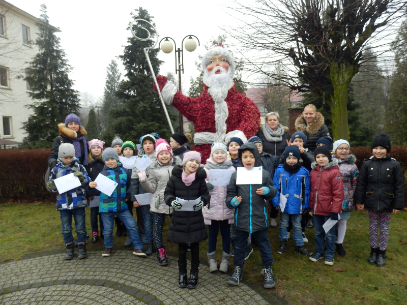 Z okazji zbliżających się Świąt Bożego Narodzenia, uczniowie klas II b i II e pisali życzenia dla swoich najbliższych. Dzieci samodzielnie wykonały kartkę bożonarodzeniową, zaadresowały kopertę i korzystając z dobrej pogody wybrały się do Urzędu Pocztowego w Raszkowie. Podczas spaceru dzieci podziwiały świątecznie przystrojony raszkowski rynek oraz odwiedziły mini zoo. Opiekunami uczniów w czasie wycieczki były panie: Iwona Bartczak i Alina Stefańska oraz rodzice.