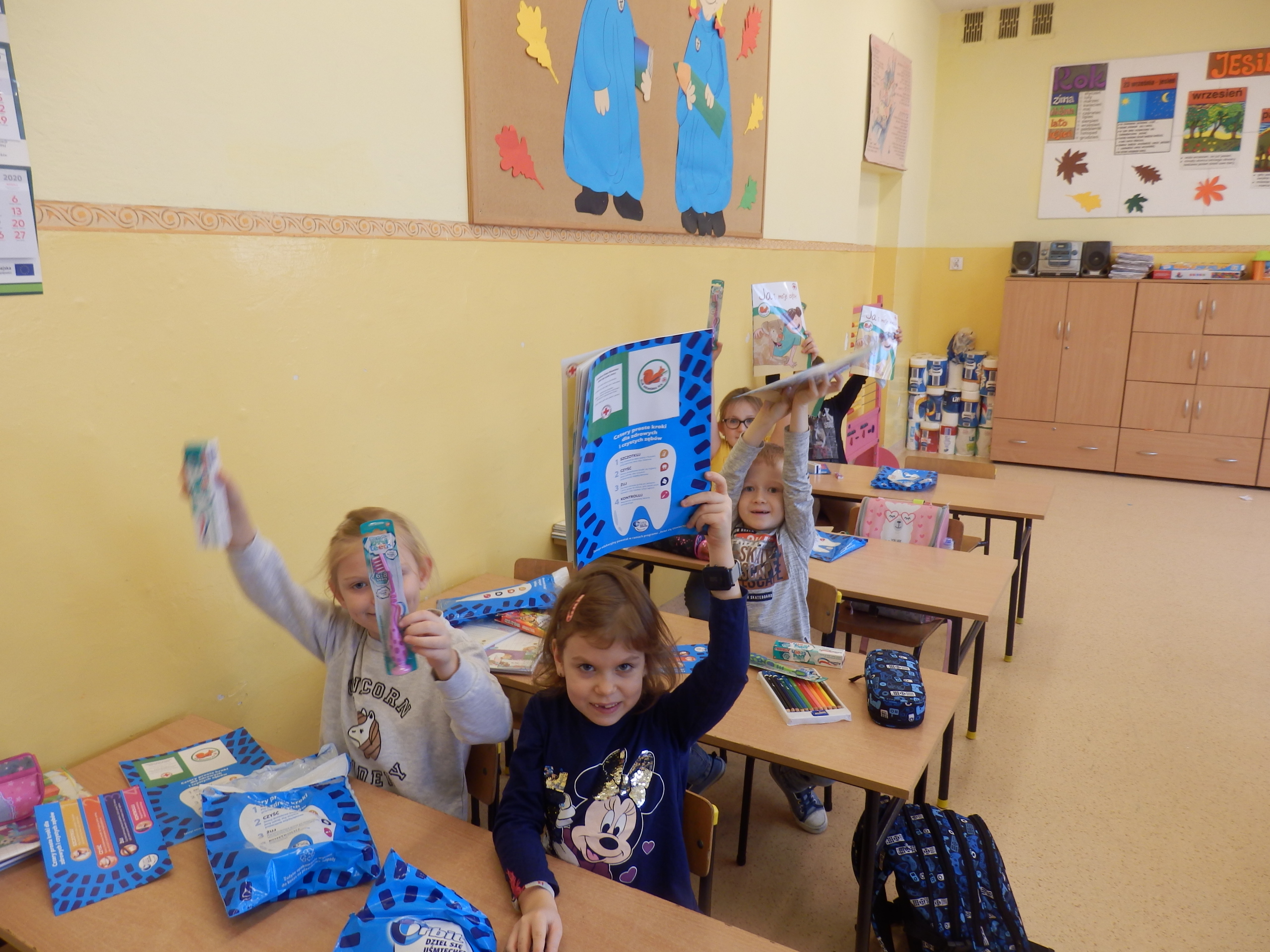 Uczestnicy programu edukacyjnego „Dziel się Uśmiechem” biorą udział w zajęciach prowadzonych przez nauczycieli współpracujących z lokalnymi Oddziałami PCK, których celem jest wykształcenie u dzieci nawyków dbania o zdrowie. Na potrzeby programu zostały przygotowane materiały edukacyjne dostosowane do możliwości poznawczych dzieci. Dla młodszych uczniów klas I-III, powstał zeszyt „Ja i moje zęby”. Dzięki nowoczesnym materiałom, dzieci mogą w ciekawy i atrakcyjny sposób poznać najważniejsze zasady oraz zalety dbania o swoje zęby. Zeszyty mają interaktywny charakter – zawierają ćwiczenia, gry, quizy. Przewodnikiem dzieci po świecie pięknego uśmiechu jest sympatyczna postać Super Wiewiórki. Jednocześnie powstał zeszyt metodyczny dla nauczycieli i wolontariuszy z przykładowymi tematami oraz scenariuszami zajęć, który pomaga w realizacji programu „Dziel się Uśmiechem” w klasach I-III i IV-VI szkoły podstawowej. W ramach akcji dzieci otrzymały ciekawe materiały dydaktyczne oraz pakiety do pielęgnacji zębów, składające się ze szczoteczki, pasty do zębów oraz bezcukrowej gumy do żucia Orbit.