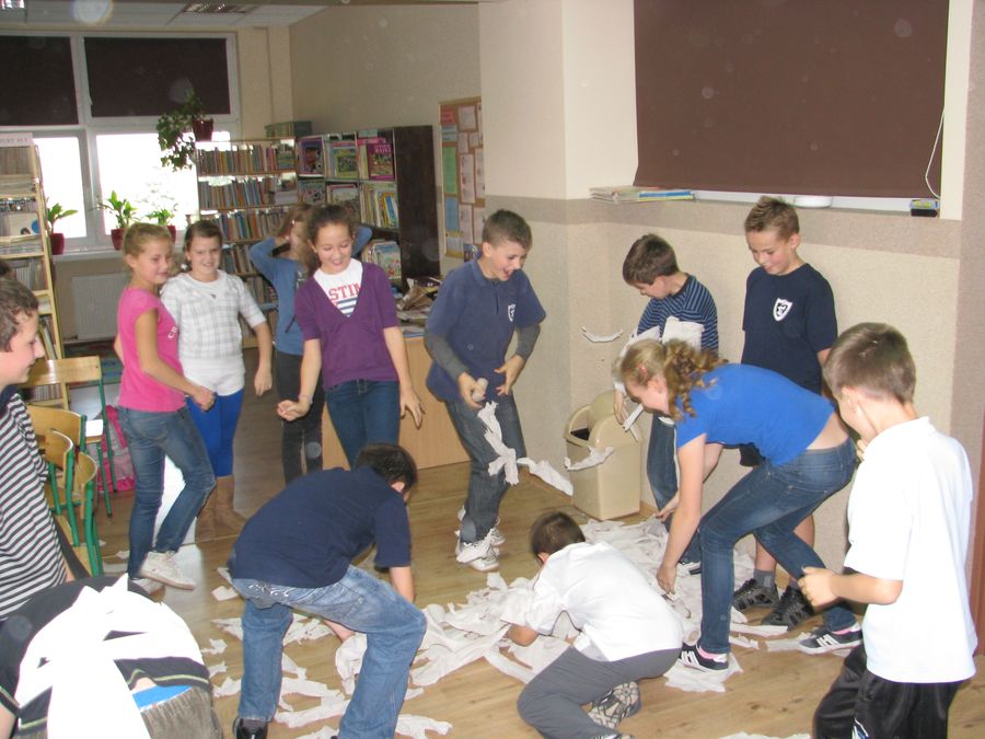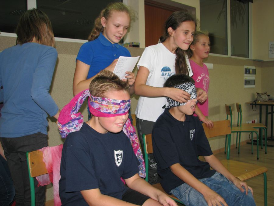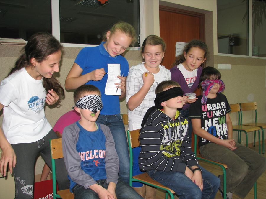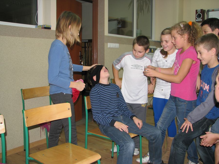 Śmiechu było co niemiara – co widać na załączonych zdjęciach:) Nad całością czuwała wychowawczyni klasy 5 a, pani Małgorzata Palczewska.