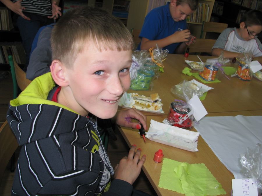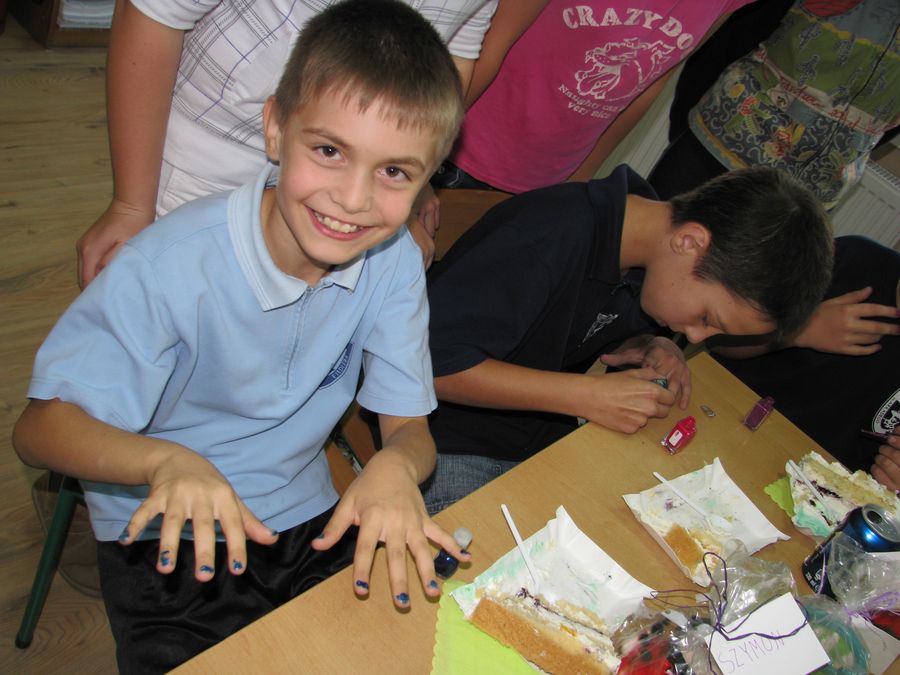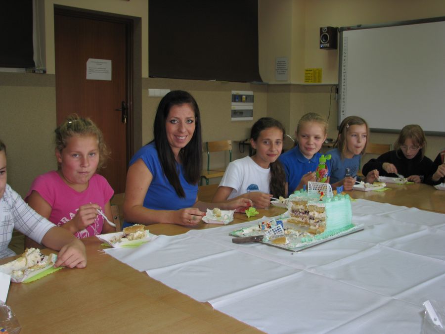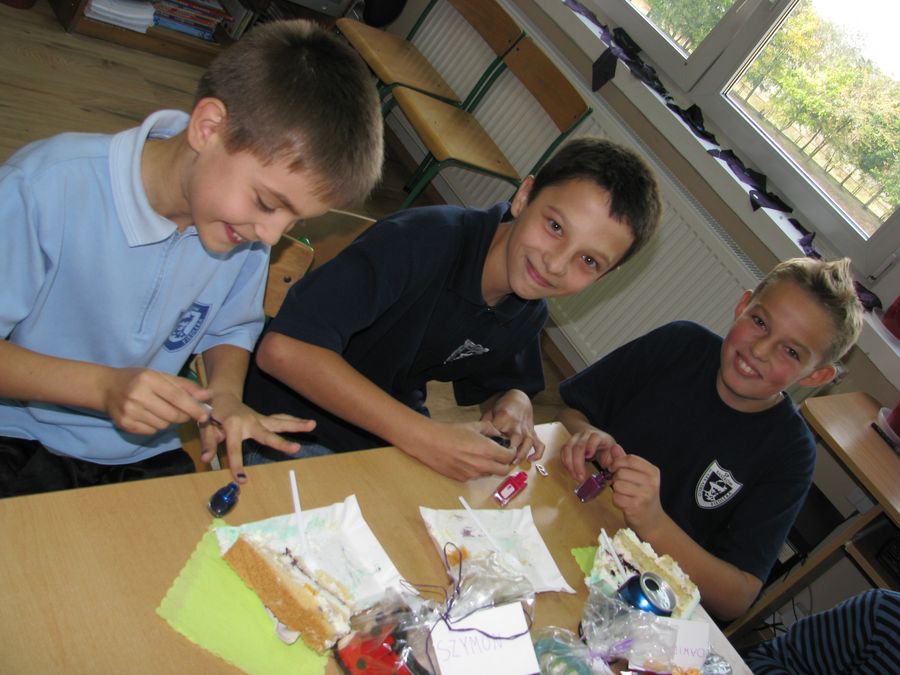 Dzień Chłopca to uroczystość, która od wielu lat wpisana jest do szkolnego kalendarza imprez. Dziewczęta z klasy 5 a także w tym roku nie zawiodły i przygotowały prezenty – niespodzianki dla swoich klasowych kolegów. Chłopcy  oniemieli z wrażenia, kiedy zobaczyli upieczony specjalnie dla nich tort w kształcie boiska do piłki nożnej – ich ulubionej gry.