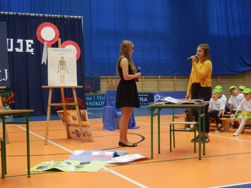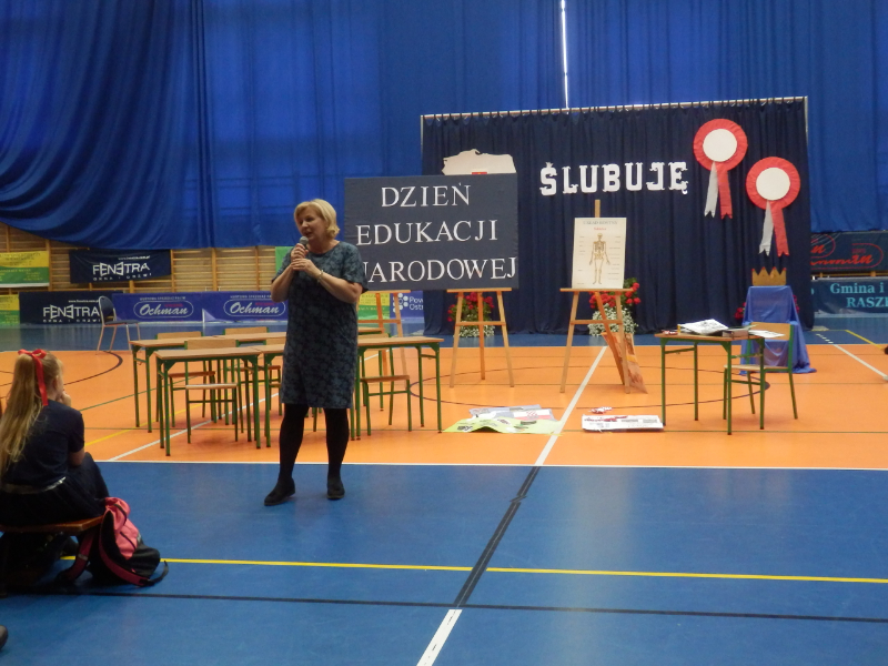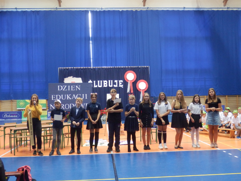 18.10.2018 r. w naszej szkole obchodziliśmy Dzień Edukacji Narodowej czyli Dzień Nauczyciela. Z tej okazji uczniowie klas 6 c ,7 a i 3 a oraz prowadząca Oliwia Jurek pod czujnym okiem Pani Justyny Lisiak, Pani Małgorzaty Palczewskiej i Pani Darii Sobczak przygotowali humorystyczne scenki z trudu codziennego życia nauczycieli. Śmiechów na sali nie było końca. Wszyscy też  mieli możliwość obejrzeć prezentację stworzoną ze zdjęć nauczycieli z ich lat młodości.  Dodatkowo nauczyciele otrzymali dyplomy w wybranych kategoriach: