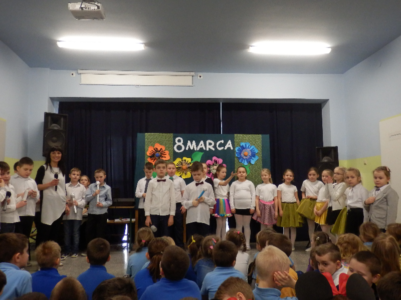 Dzień Kobiet to coroczne święto kobiet obchodzone 8 marca, jako wyraz szacunku dla ofiar walki o równouprawnienie kobiet. Jest to święto o stosunkowo długiej tradycji, ponieważ ustanowione zostało w 1910r., a więc ponad 100 lat temu. Współcześnie Dzień Kobiet jest oficjalnym świętem w kilkudziesięciu krajach świata. Jest to dobra okazja do obdarowania kobiet kwiatami i złożeniem życzeń. Z tej okazji uczniowie klasy 2c chcąc wyrazić swój szacunek dużym kobietom i małym kobietkom przygotowali artystyczny występ przepełniony radosnym śpiewem, tańcem, dowcipnym dialogiem oraz nastrojową muzyką. Uroczystość minęła w bardzo ciepłej i wesołej atmosferze. Wprawiła dorosłe Panie i dorastające koleżanki w wyjątkowy nastrój. Końcowym akcentem było zaśpiewanie „sto lat” przez wszystkich chłopców naszej szkoły