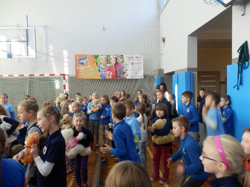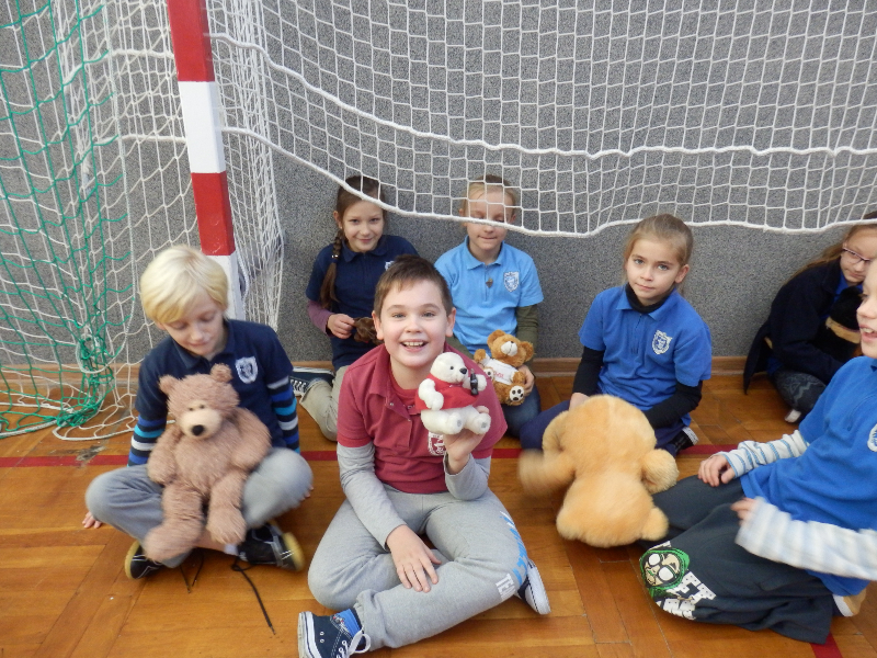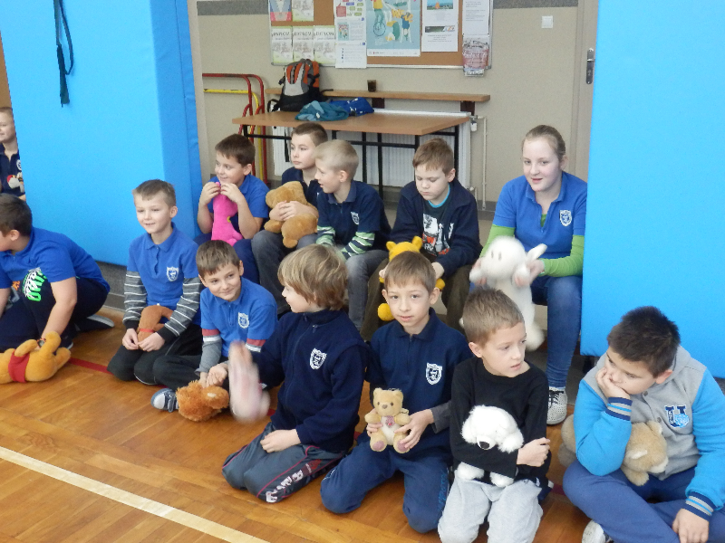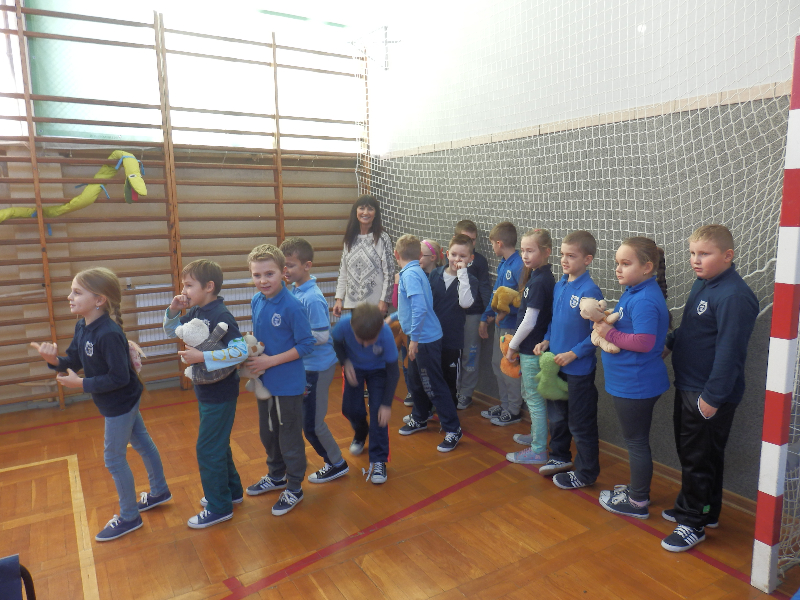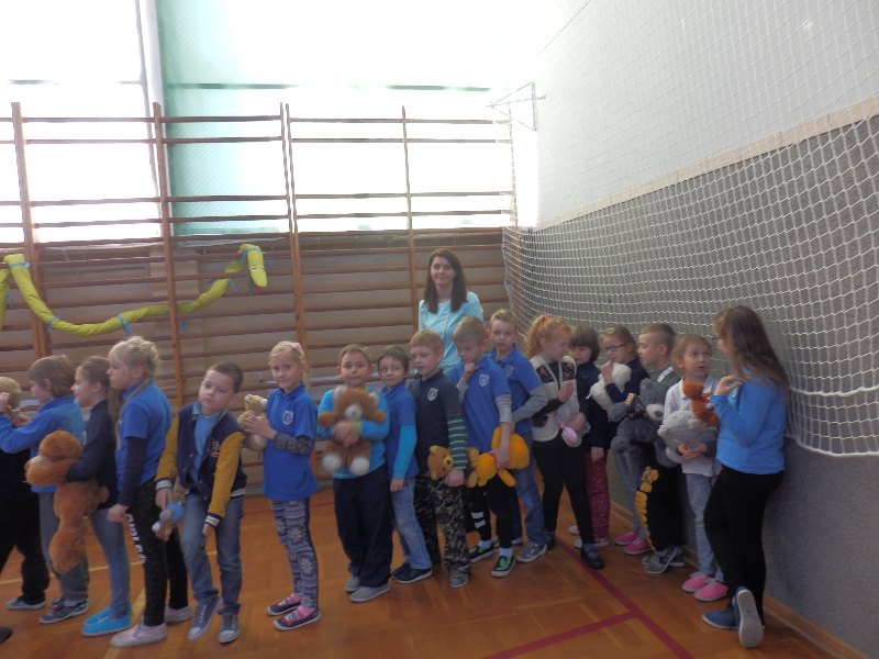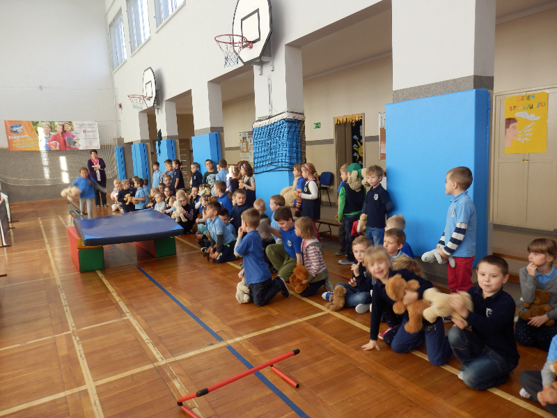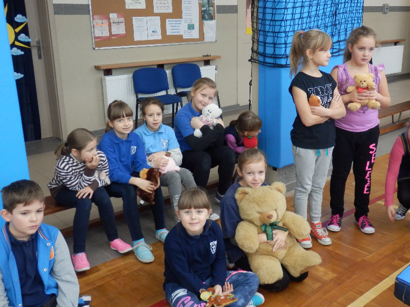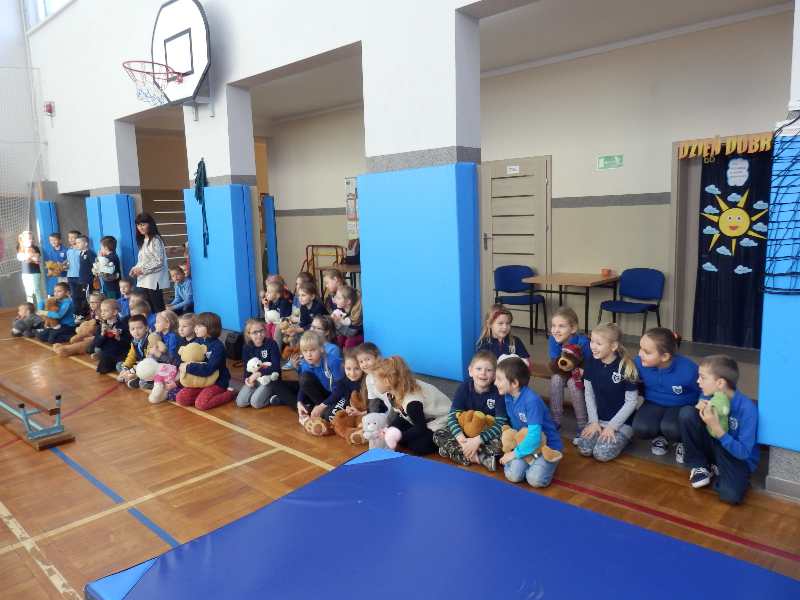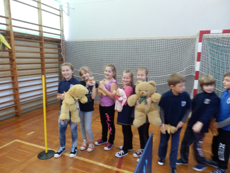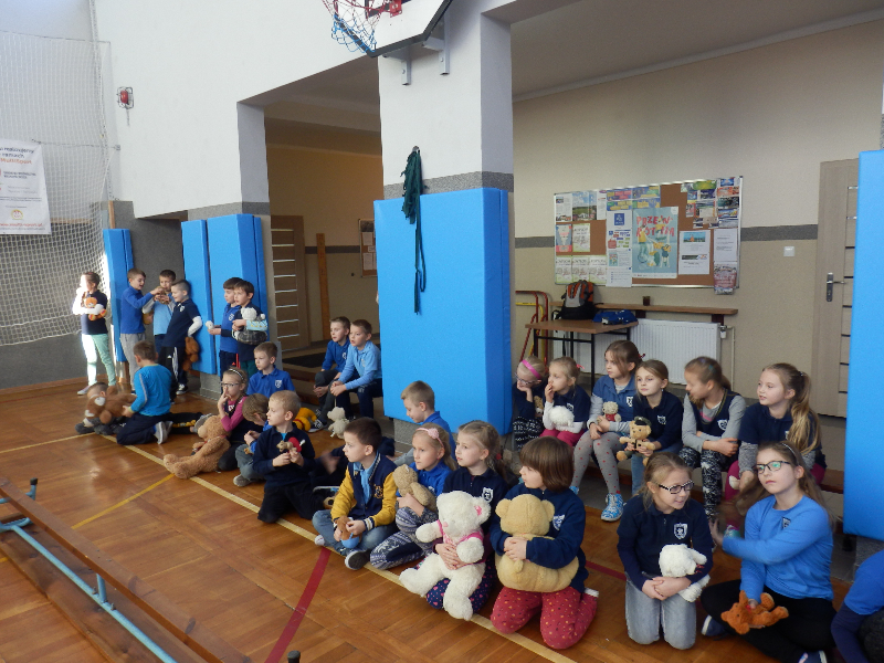 W bibliotece szkolnej zorganizowano imprezę czytelniczą z okazji Światowego Dnia Pluszowego Misia. Celem spotkania z uczniami klas I-III było: kształtowanie i rozwijanie zainteresowań czytelniczych i artystycznych, wyrabianie u dzieci nawyku korzystania ze zbiorów biblioteki szkolnej, rozwijanie aktywnej postawy w czasie spotkania, kształtowanie poczucia szacunku do zabawek i książek oraz zachęcanie do czytania książek o określonej tematyce. W tym roku z pluszowym misiem dzieci bawiły się przez dwa dni. Dzień pierwszy to tradycyjna już Misiowa spartakiada, przygotowana w formie misiowego toru przeszkód. Dzieci miały do pokonania test sprawnościowy, zabawę ruchową z piłką, test odwagi polegający na przejściu przez tunel i wiele innych. W czasie zabawy dzieciom towarzyszyły przyniesione z domu maskotki – pluszowe misie. Wszyscy bawili się znakomicie, dokładnie wykonując zaplanowane przez nauczyciela wychowania fizycznego, pana Sławomira Krawczyka, sportowe zadania. Drugi dzień zabawy z pluszowym misiem to zajęcia prowadzone przez panią bibliotekarkę Katarzynę Zaworską – czytanie opowiadania o zielonym misiu, zagadki związane z misiami i ulubione przez dzieci kolorowanki. W bibliotece szkolnej na uczniów czekała wystawa książek z misiami w roli tytułowej i okolicznościowa gazetka.