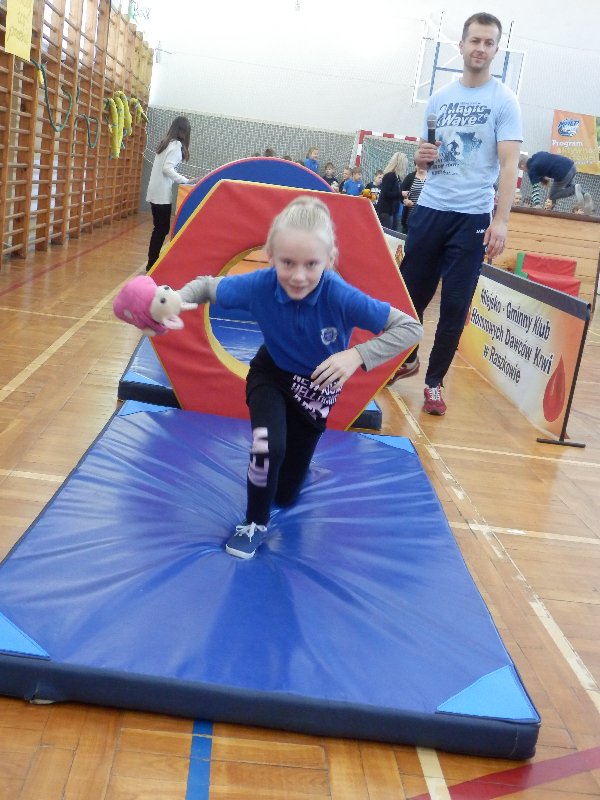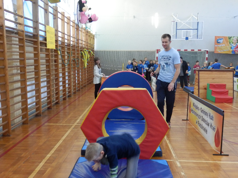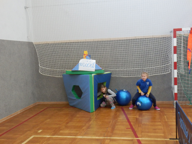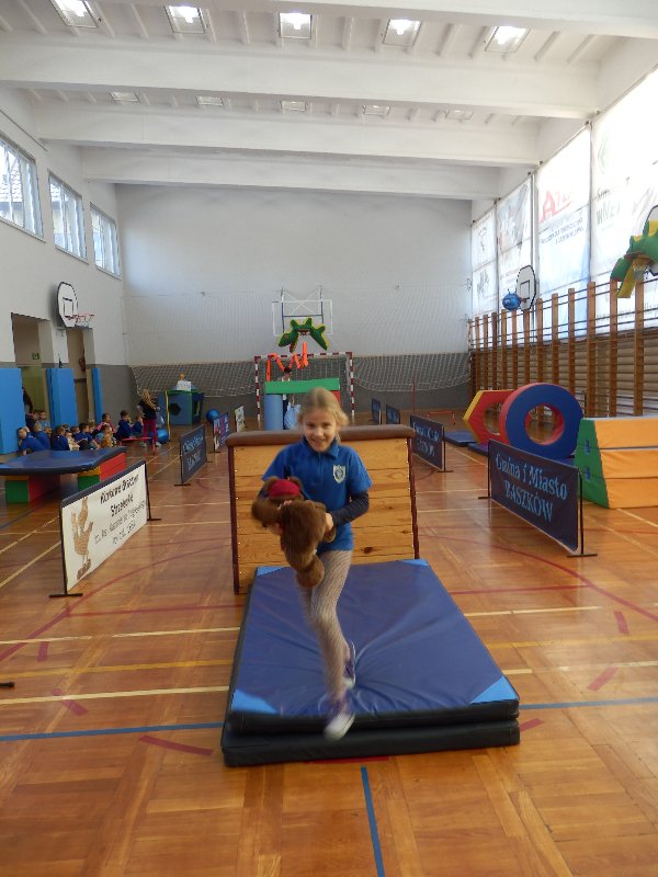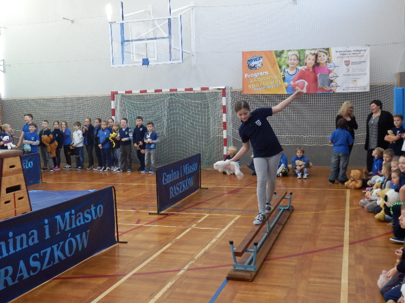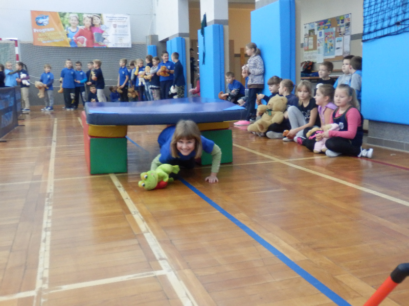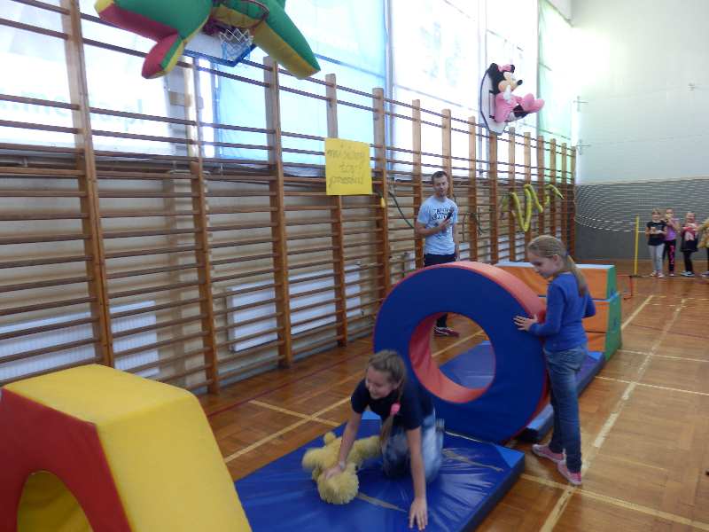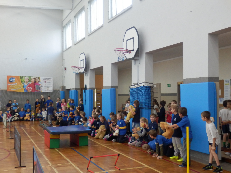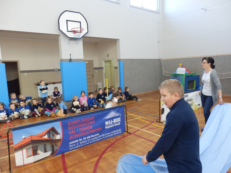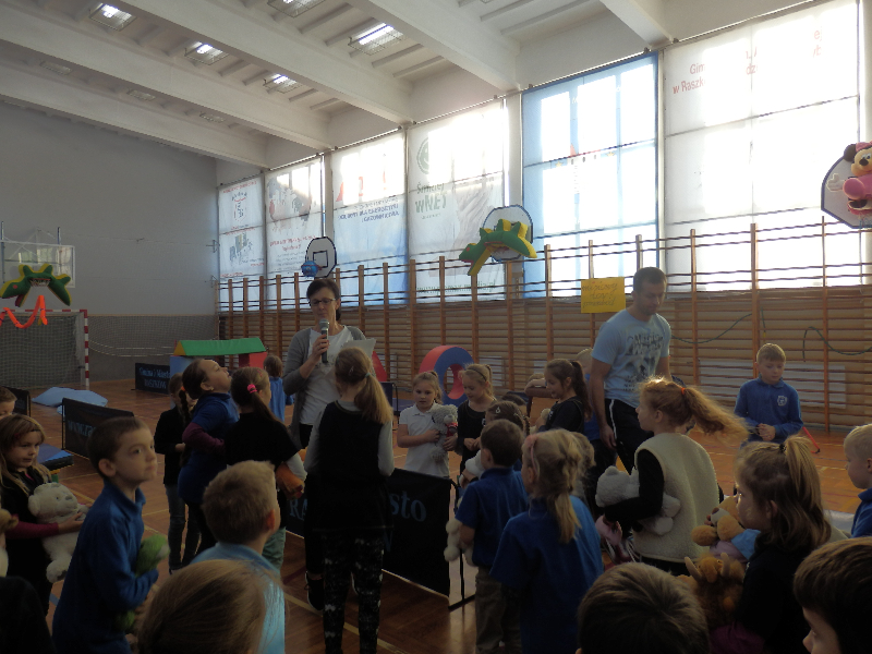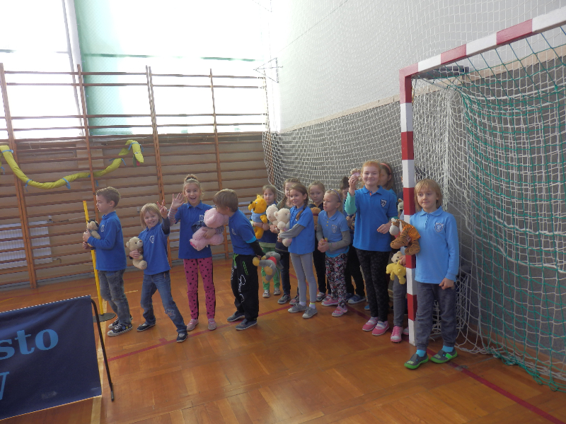 W bibliotece szkolnej zorganizowano imprezę czytelniczą z okazji Światowego Dnia Pluszowego Misia. Celem spotkania z uczniami klas I-III było: kształtowanie i rozwijanie zainteresowań czytelniczych i artystycznych, wyrabianie u dzieci nawyku korzystania ze zbiorów biblioteki szkolnej, rozwijanie aktywnej postawy w czasie spotkania, kształtowanie poczucia szacunku do zabawek i książek oraz zachęcanie do czytania książek o określonej tematyce. W tym roku z pluszowym misiem dzieci bawiły się przez dwa dni. Dzień pierwszy to tradycyjna już Misiowa spartakiada, przygotowana w formie misiowego toru przeszkód. Dzieci miały do pokonania test sprawnościowy, zabawę ruchową z piłką, test odwagi polegający na przejściu przez tunel i wiele innych. W czasie zabawy dzieciom towarzyszyły przyniesione z domu maskotki – pluszowe misie. Wszyscy bawili się znakomicie, dokładnie wykonując zaplanowane przez nauczyciela wychowania fizycznego, pana Sławomira Krawczyka, sportowe zadania. Drugi dzień zabawy z pluszowym misiem to zajęcia prowadzone przez panią bibliotekarkę Katarzynę Zaworską – czytanie opowiadania o zielonym misiu, zagadki związane z misiami i ulubione przez dzieci kolorowanki. W bibliotece szkolnej na uczniów czekała wystawa książek z misiami w roli tytułowej i okolicznościowa gazetka.