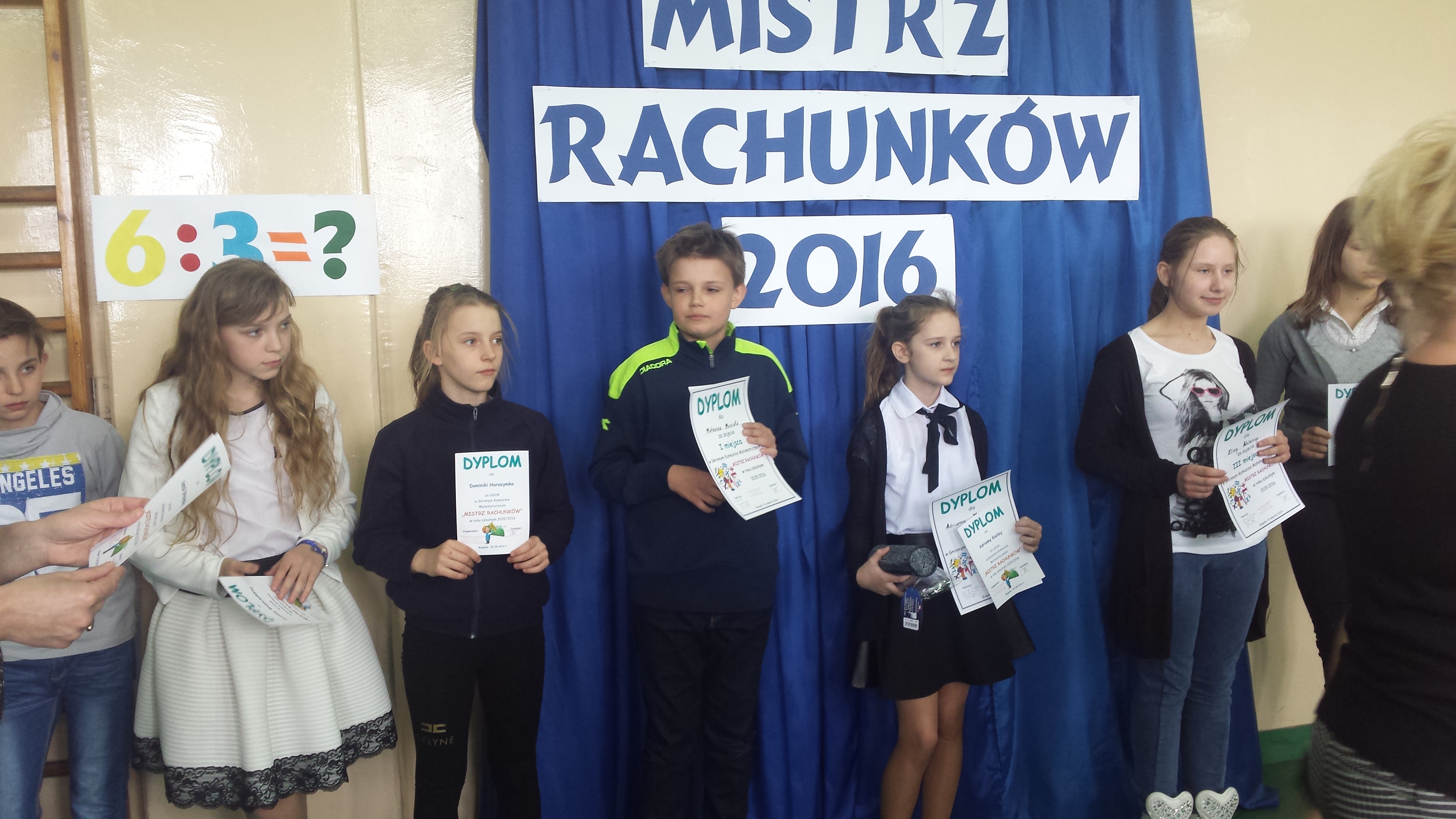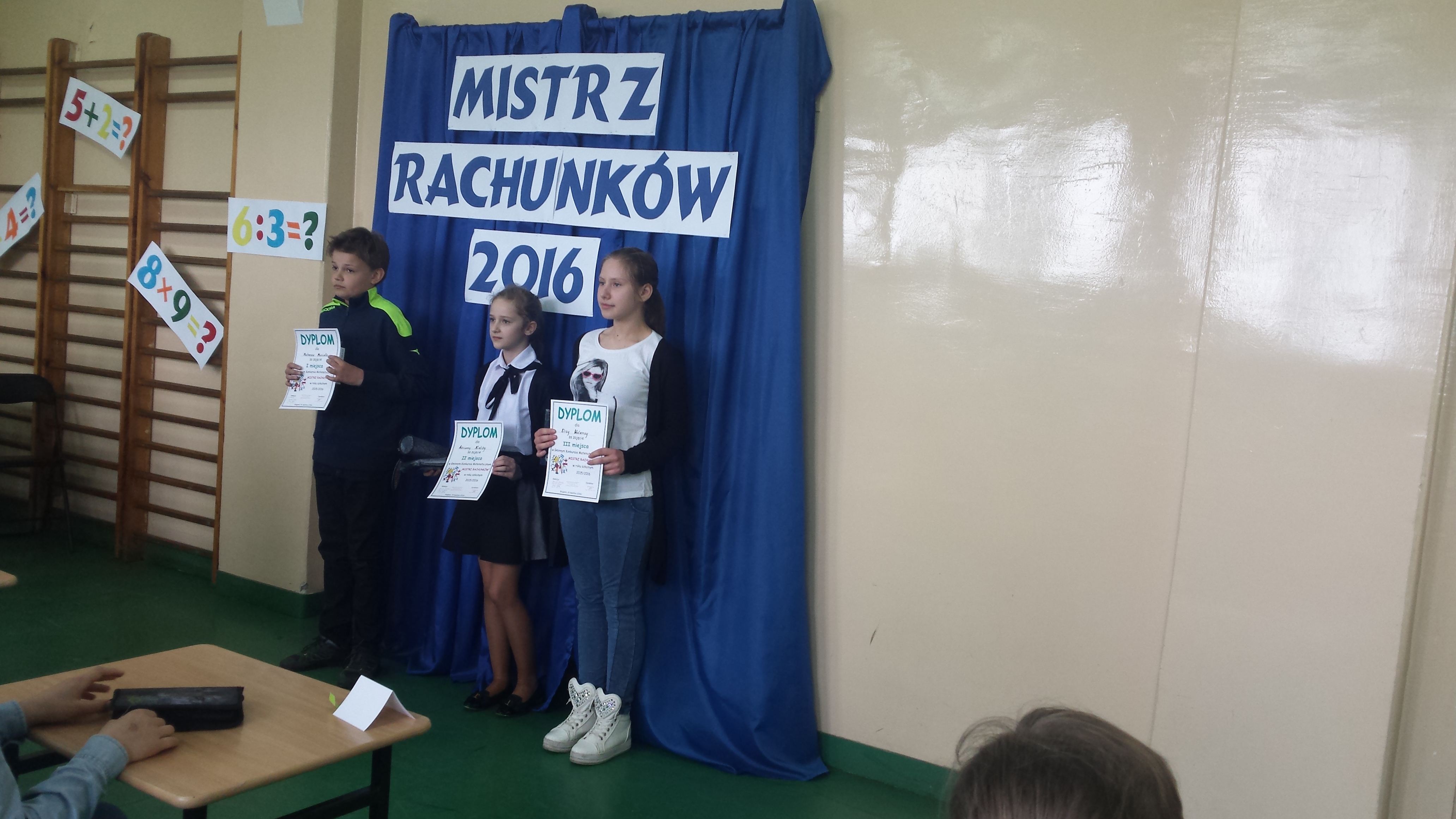 Konkurs matematyczny „Mistrz Rachunków” odbył się 26.IV.2016r. w BieganinieUczestniczyło w nim 18 uczniów ze szkół gminy Raszków: SP Bieganin, SP Ligota, ZS Koryta, SP Raszków, SP Radłów, SP Janków Zaleśny.Uczniowie zmagali się z działaniami na liczbach naturalnych w pamięci lub pisemnie oraz musieli wykazać się bardzo dobrą znajomością kolejności działań. O wygranej decydowała poprawność wykonywanych działań oraz czas.
