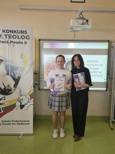 17 marca w Szkole Podstawowej im. św. Jana Pawła II w Radłowie odbył się gminny konkurs teologiczny. Naszą szkołę reprezentowała uczennica klasy VI – Ania Wicenciak. Aby dobrze przygotować się do udziału w konkursie należało zmierzyć się z pięciuset pytaniami obejmującymi m.in. Biblię, okresy liturgiczne, katechizm a nawet zwroty po łacinie. Następnie podczas konkursu trzeba było odpowiedzieć na 58 pytań. Ania godnie reprezentowała naszą szkołę. Gratulujemy wiedzy i odwagi zmierzenia się z tak obszernym materiałem do opanowania.