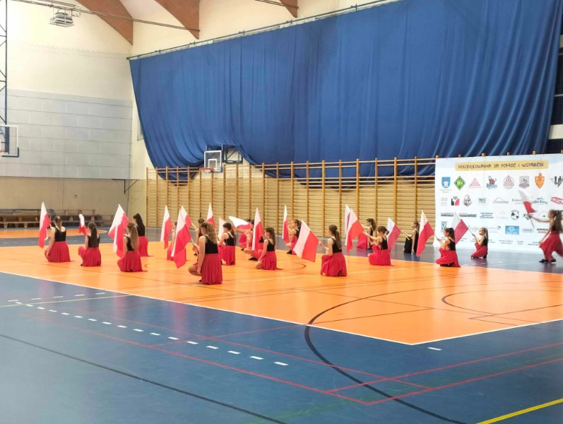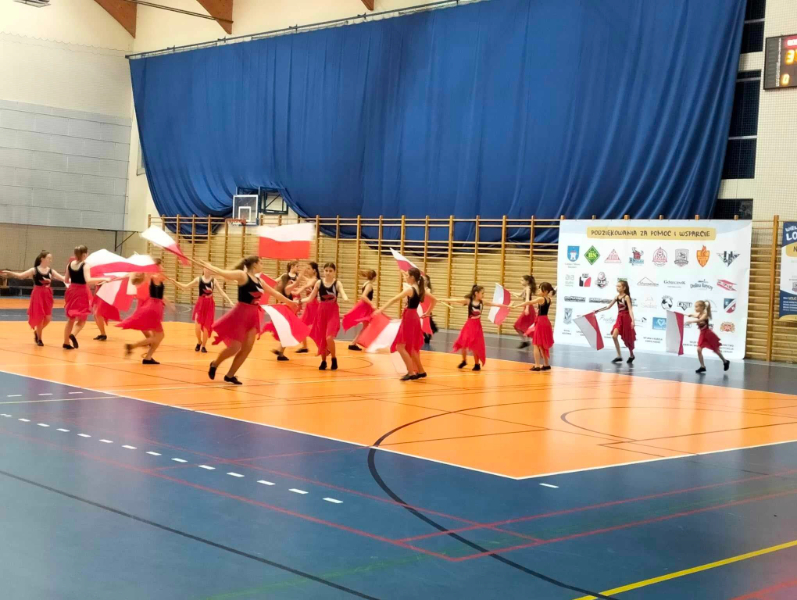 W czasie turnieju swoje umiejętności taneczne zaprezentowała również nasza szkolna grupa „Mariposa”. Dziewczyny jak zawsze stanęły na wysokości zadania i wykonały 6 tańców – m.in. taniec z flagami, tańce do piosenek „All I want for Christmas”, „Shivers” czy „Do boju, Polsko!”