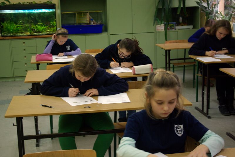 Dnia 21.11.2013r. odbyły się szkolne eliminacje do III Wojewódzkiego Konkursu Przyrodniczego. Celem konkursu było zainteresowanie uczniów światem przyrody, jego różnorodnością, bogactwem i pięknem, zachęcenie do samodzielnego zdobywania i pogłębiania wiedzy oraz stwarzanie uczniom możliwości do współzawodnictwa. Konkurs przebiegł zgodnie z ustalonym regulaminem. Udział wzięło 12 uczniów naszej szkoły z klas V i VI. Rozwiązywali test zawierający 25 zadań. Wśród nich było 16 zadań zamkniętych i 9 zadań otwartych. Do etapu rejonowego zakwalifikowała się Adrianna Żurkiewicz z klasy 6c, która reprezentować będzie szkołę w Wojewódzkim Konkursie Przyrodniczym.