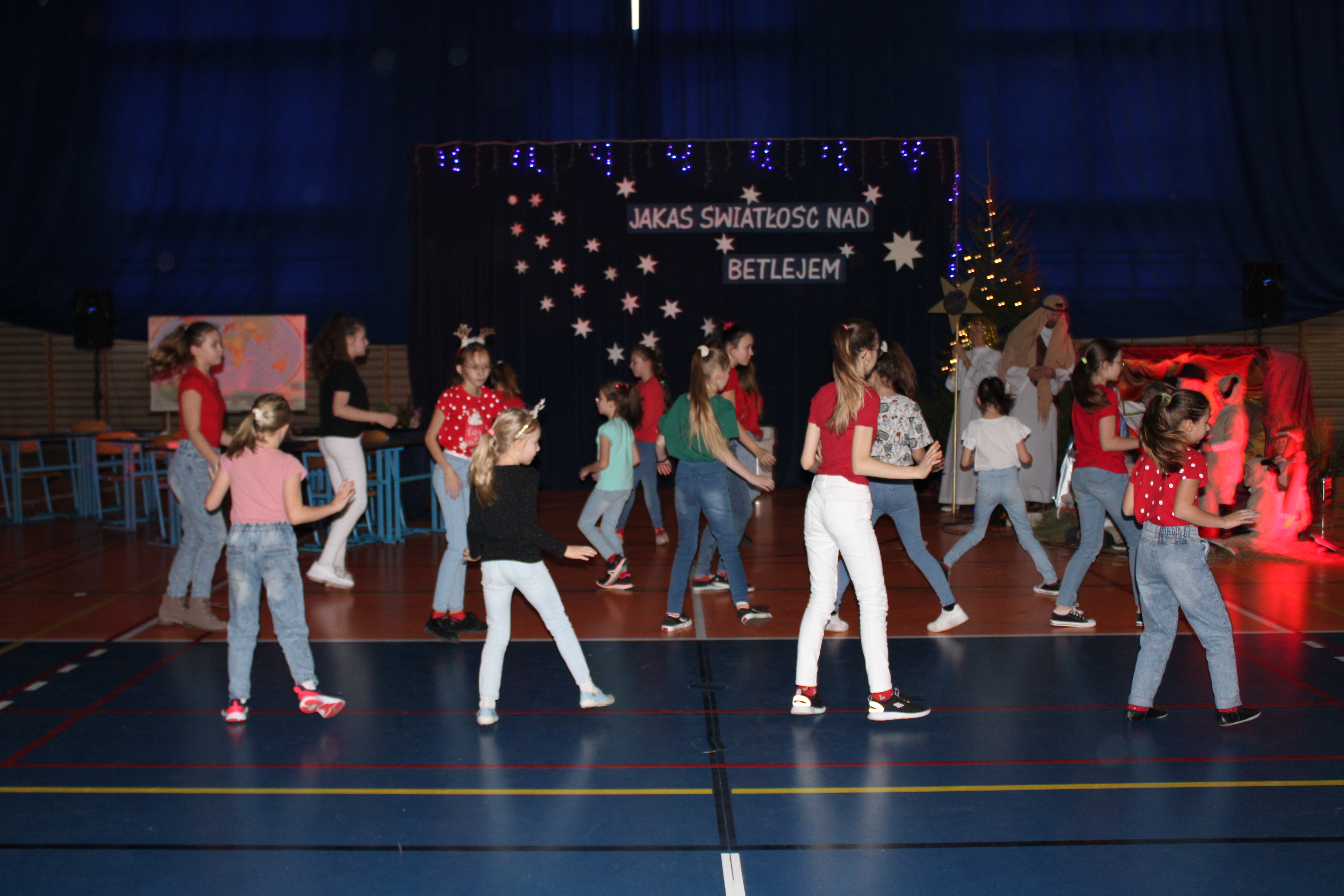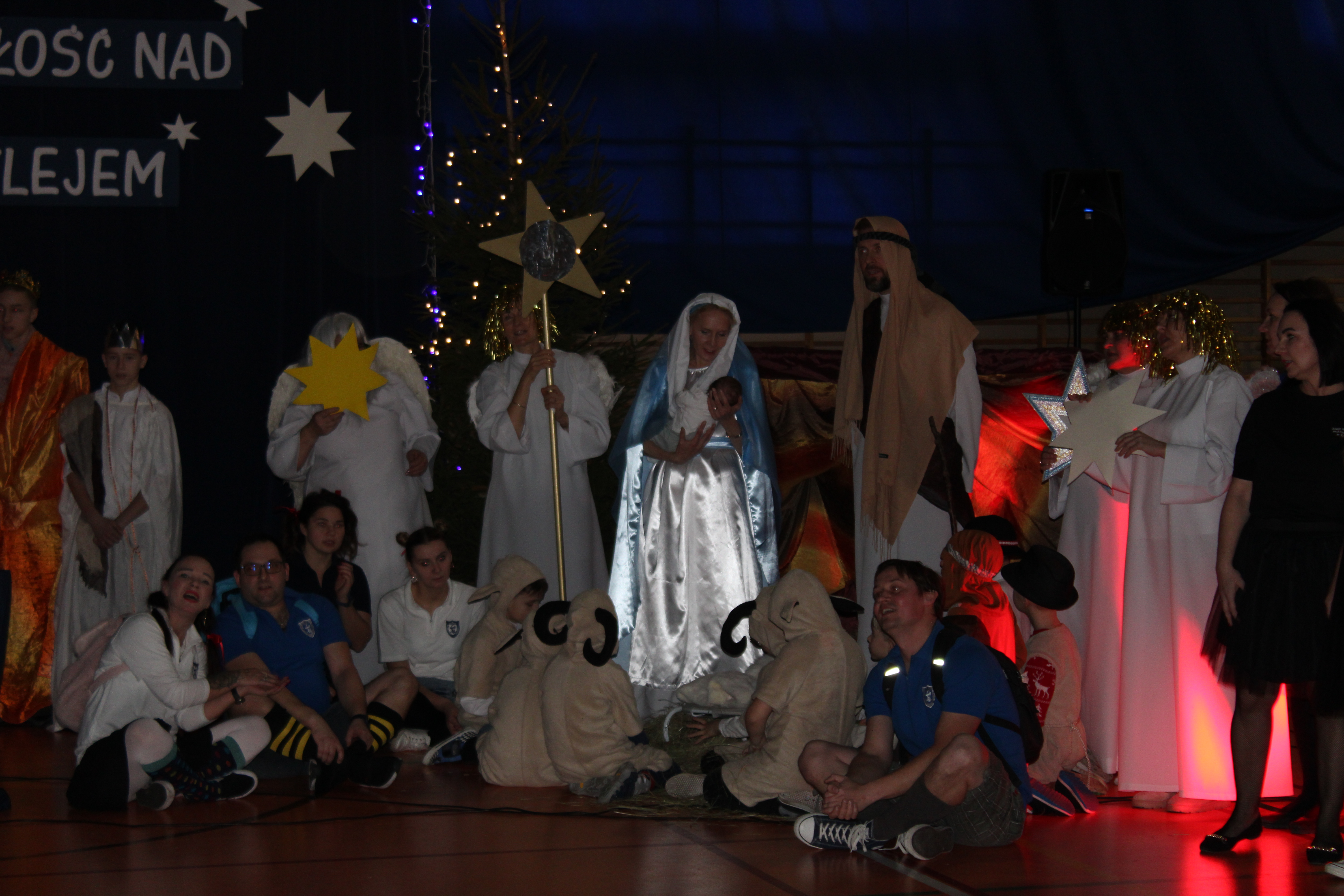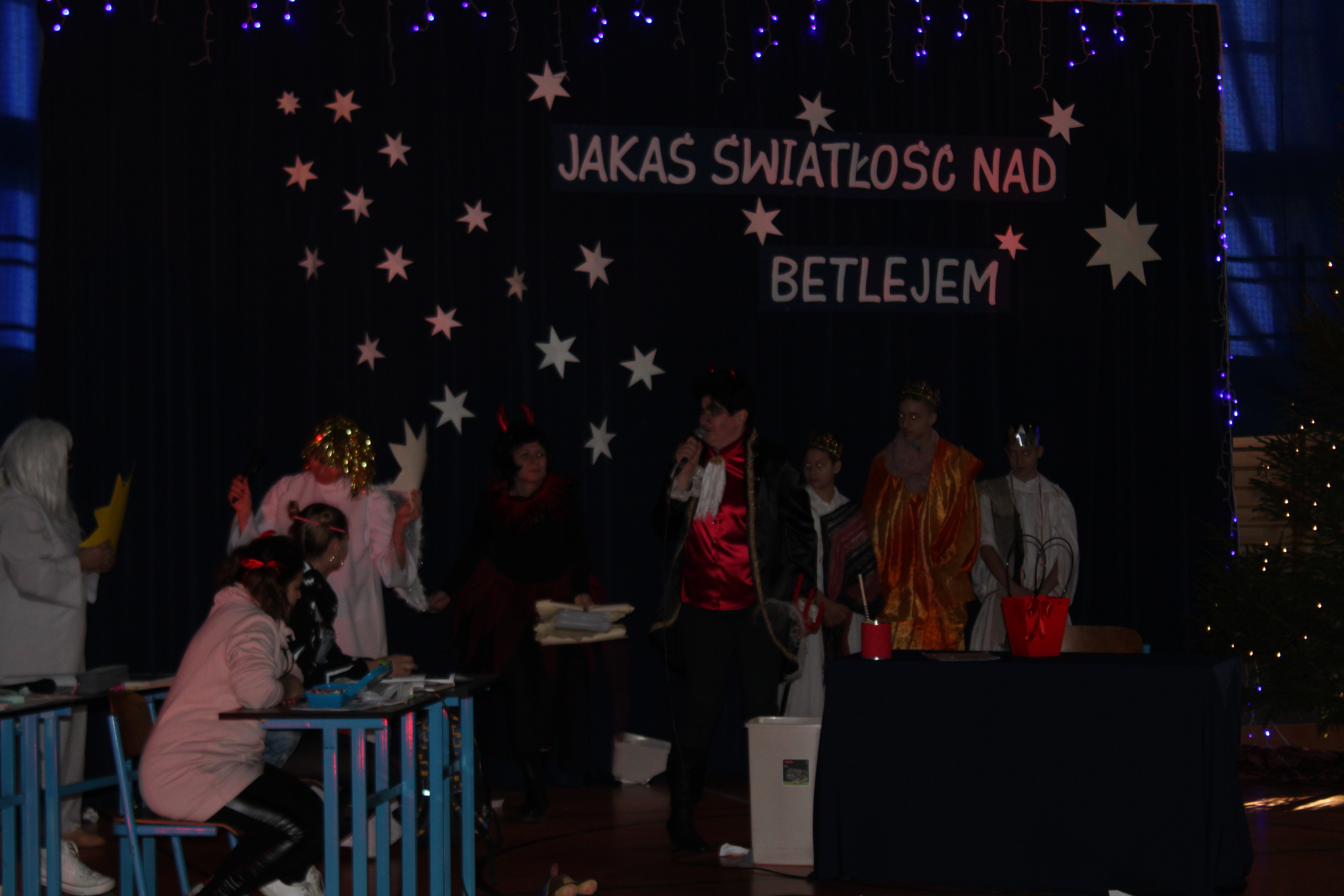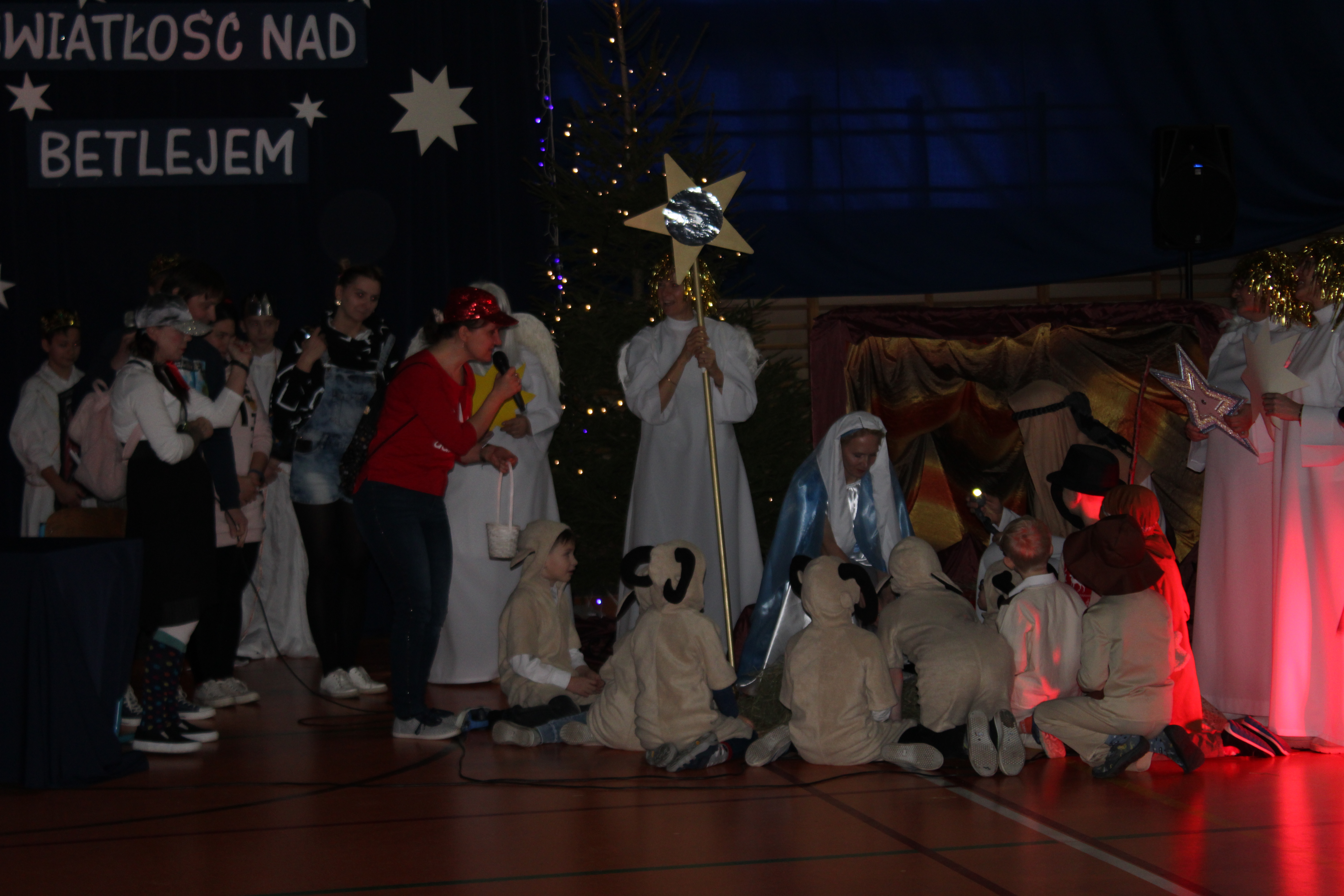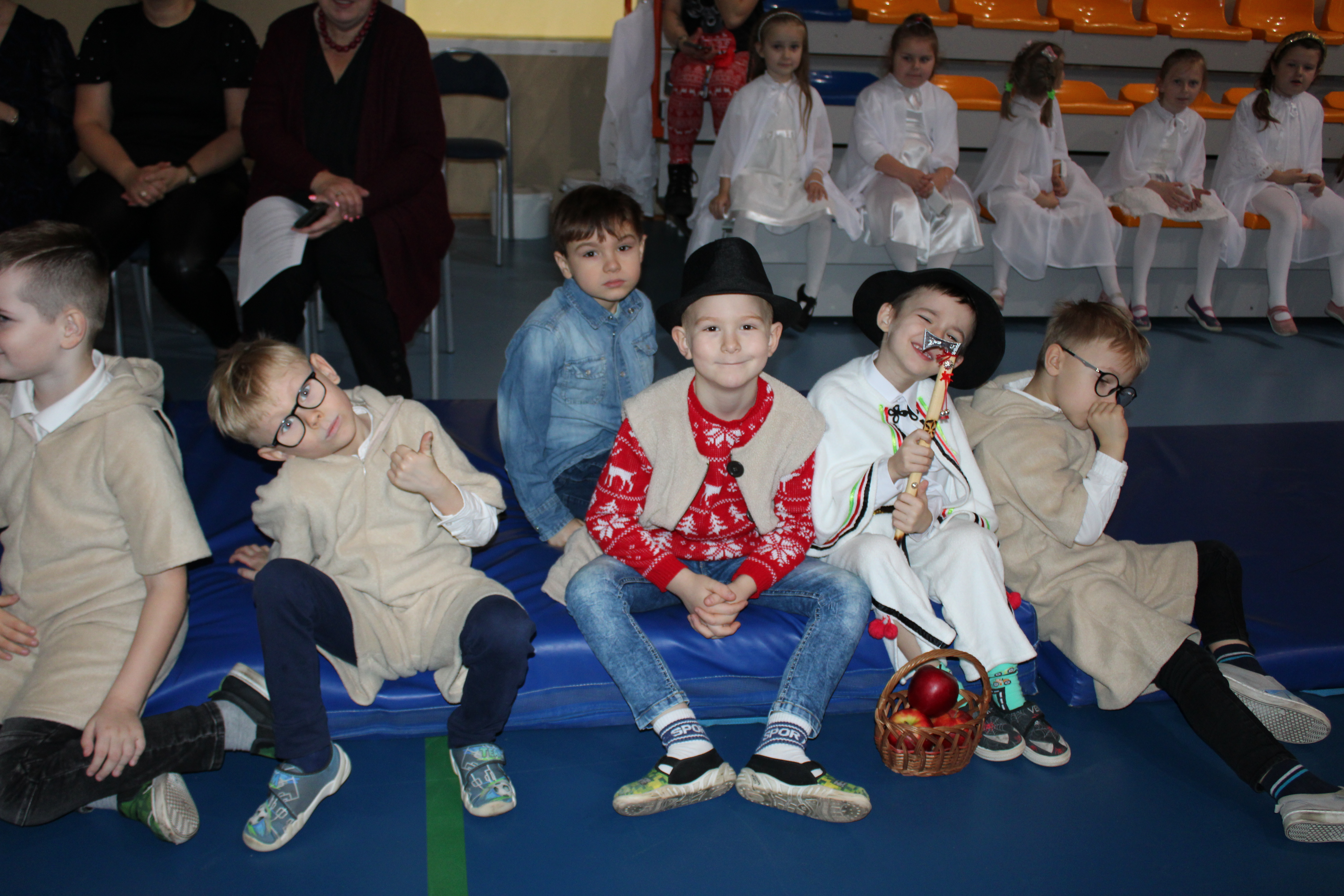 Zbliżające się święta Bożego Narodzenia to czas wyczekiwany szczególnie przez dzieci, ale także przez dorosłych. Magię świąt w naszej szkole można było poczuć w miniony czwartek, który był jednocześnie ostatnim dniem nauki w bieżącym roku. Jasełka to widowisko o Bożym Narodzeniu, które od wieków wpisane są w polską tradycję oraz corocznie wystawiane w naszej szkole. Przedstawienie jasełkowe pt. „Jakaś światłość nad Betlejem” miało przybliżyć uczniom okoliczności narodzin Pana Jezusa. Scenariusz jasełek zawierał najważniejsze wydarzenia towarzyszące narodzinom Jezusa. Główni bohaterowie jasełek – niesforna klasa, dostąpiła zaszczytu obecności przy narodzeniu małego Jezusa. Droga to tego spotkania usłana była różnymi przeciwnościami – podstępne diabły chciały namówić dzieci na naukę w piekielnej klasie! Jednak opieka cudownych Aniołów, pozwoliła dzieciom uwolnić się spod wpływu diabłów i w sposób godny, doniosły przeżyć czas Bożego Narodzenia. W jasełkach bożonarodzeniowych udział wzięli rodzice naszych uczniów: panie Iwona Piotrowicz, Sylwia Konczyńska, Bogumiła Hejdysz i pan Dariusz Drygas. Nauczycielska kadra występująca w tym dniu to: Alina Stefańska, Renata Bartoś, Małgorzata Hajdziony, Anna Sztok, Anna Szymankiewicz, Mariola Janiak, Violeta Rostalska, Izabela Urbaniak, Małgorzata Palczewska, Daria Sobczak, Beata Lisiak, Katarzyna Zaworska, Karol Marciszewski i Sławomir Krawczyk. Piękne piosenki nawiązujące do dnia Bożego Narodzenia wykonały uczennice Sara Janoś i Małgorzata Pluta. Dziewczynki z oddziałów przedszkolnych zatańczyły przy żłóbku, przy którym czuwali pastuszkowie i owieczki. Trzej Królowie: Mateusz Wandelt, Kacper Gościaniak i Krystian Gwóźdź złożyli dary i pokłonili się Maleńkiemu – w tym roku nowonarodzonego Jezuska cudownie zagrała maleńka Zuzia. O oprawę muzyczną zadbał pan Łukasz Naczke, nad całością spektaklu czuwały panie: Marzena Klimek i Justyna Żurkiewicz. Szkolny zespół Mariposa wykonał układy taneczne do popularnych piosenek świątecznych.