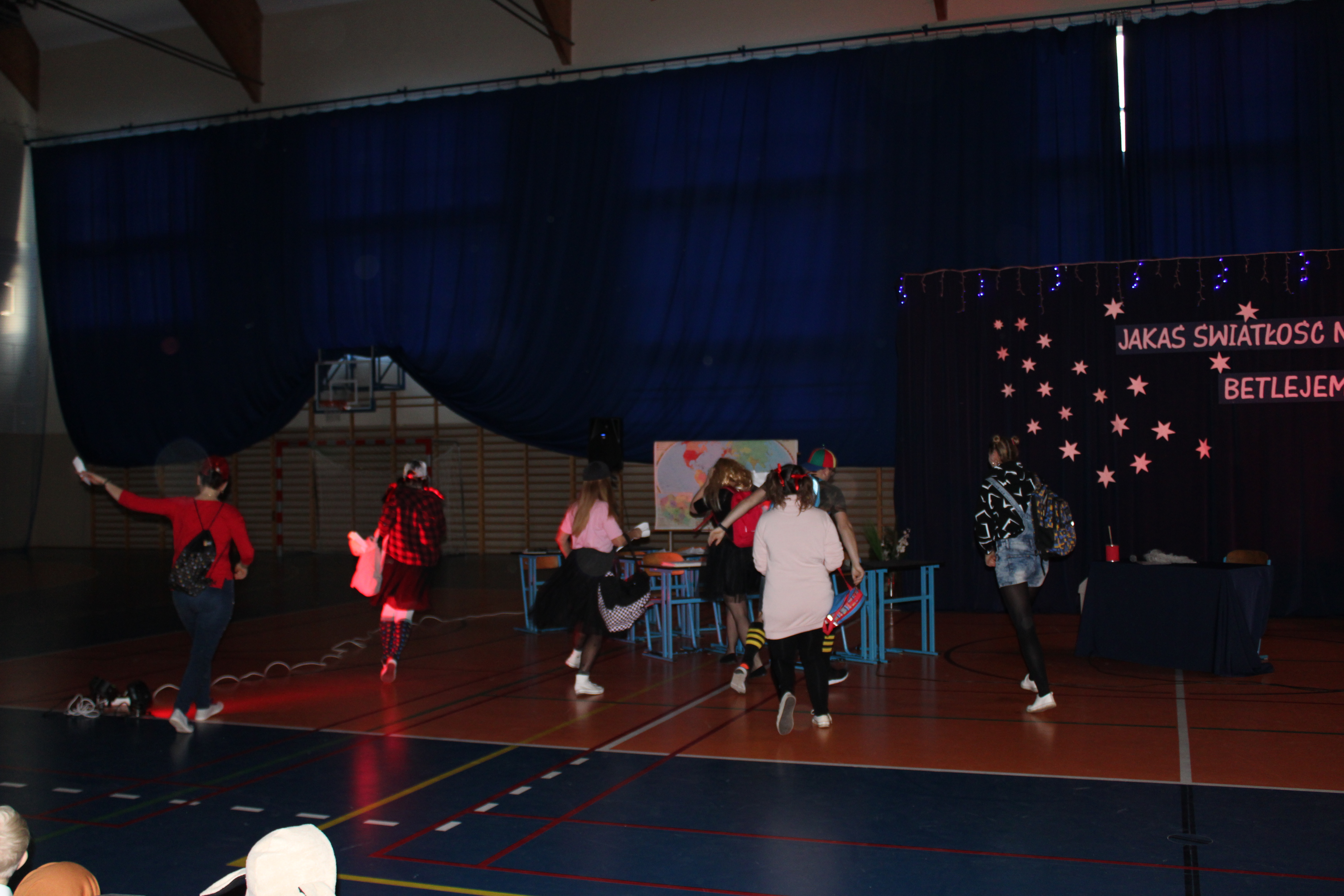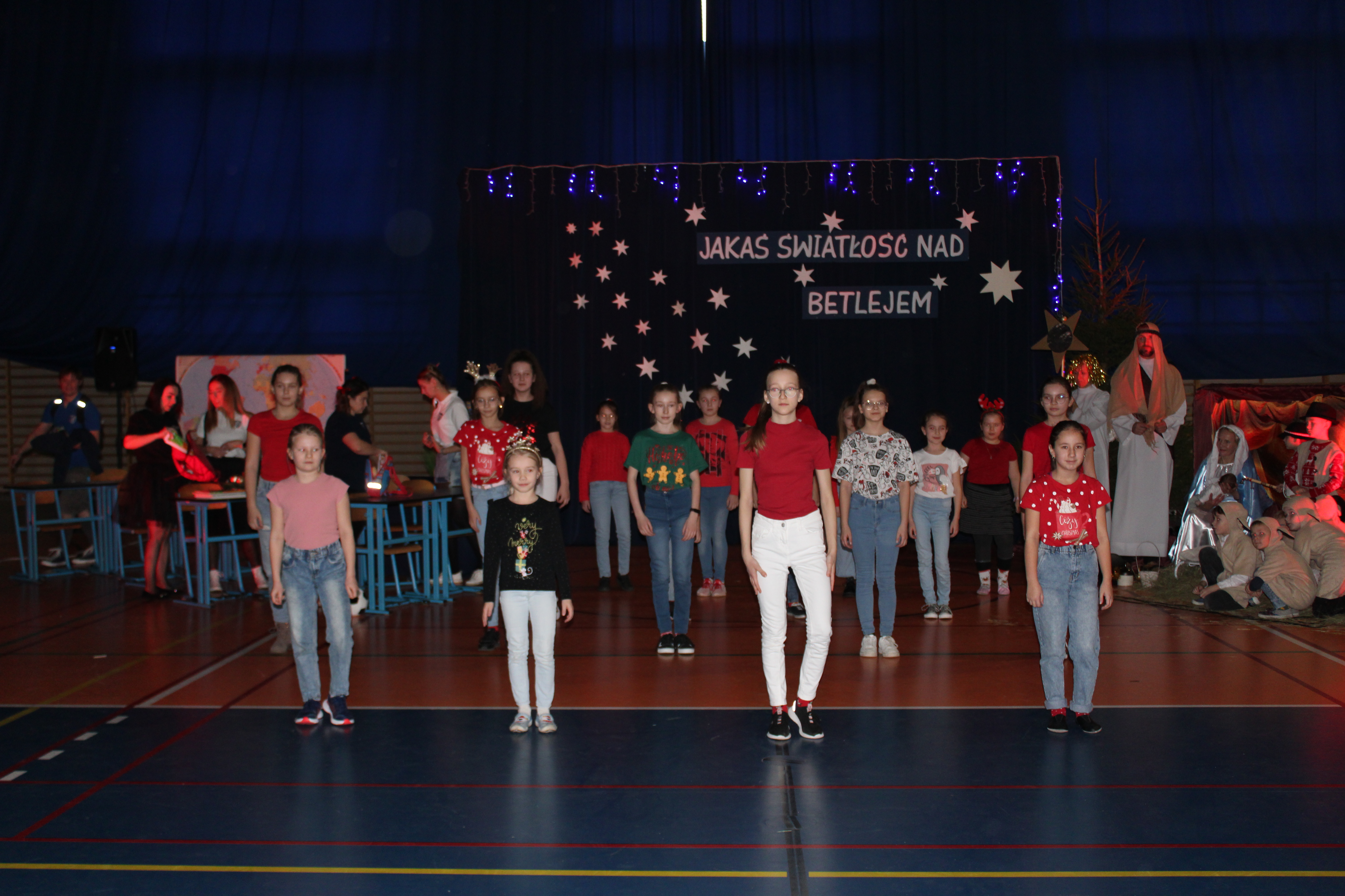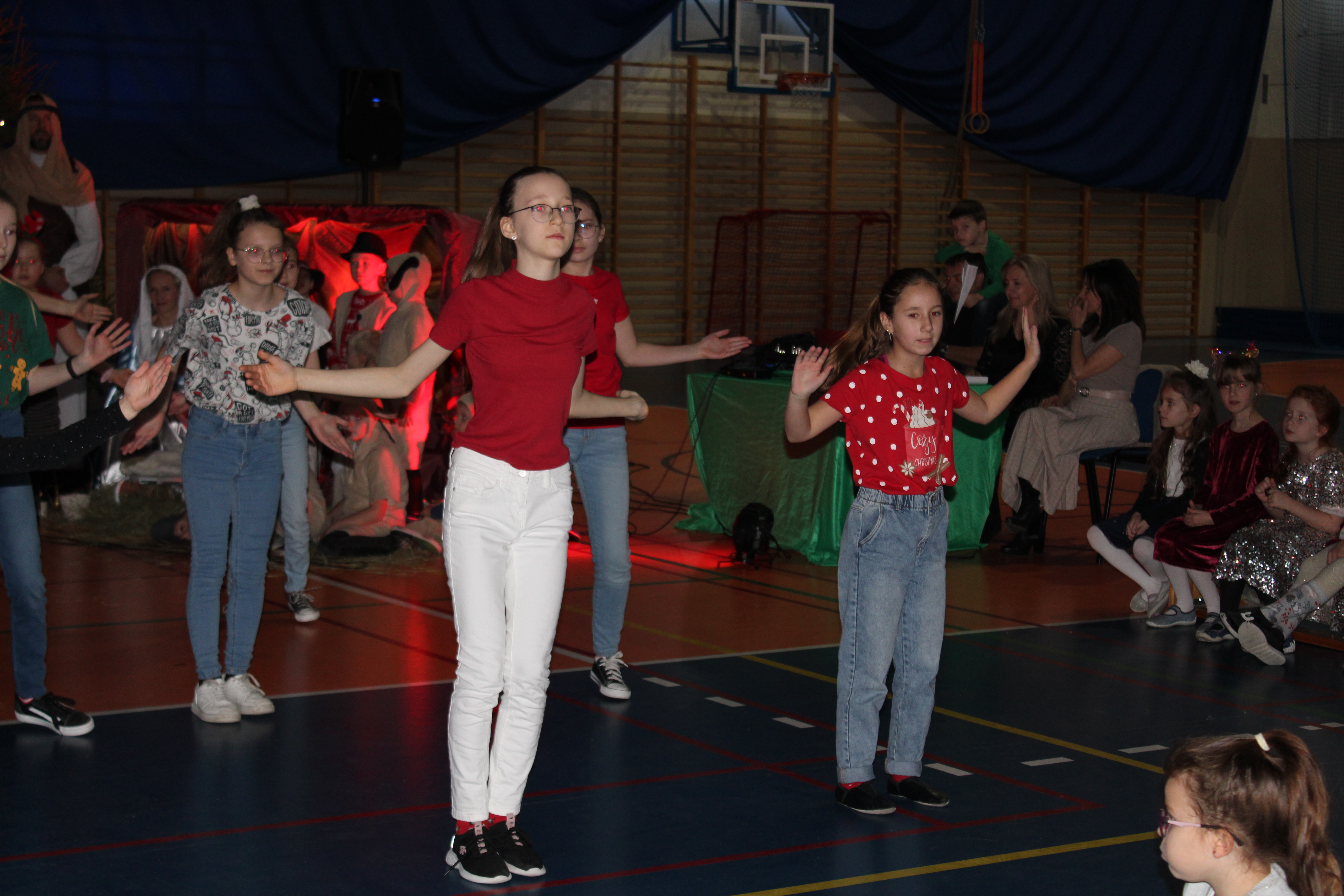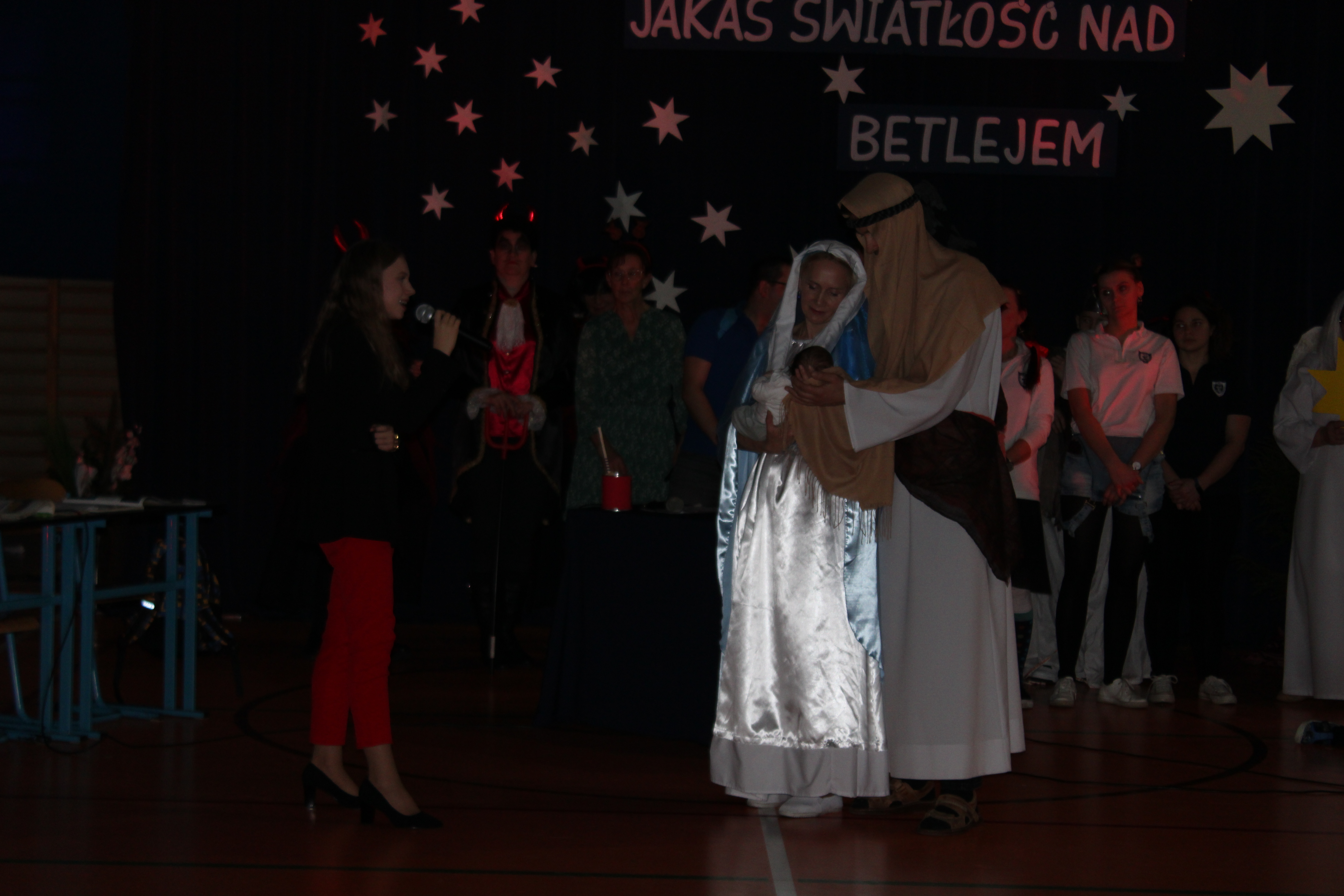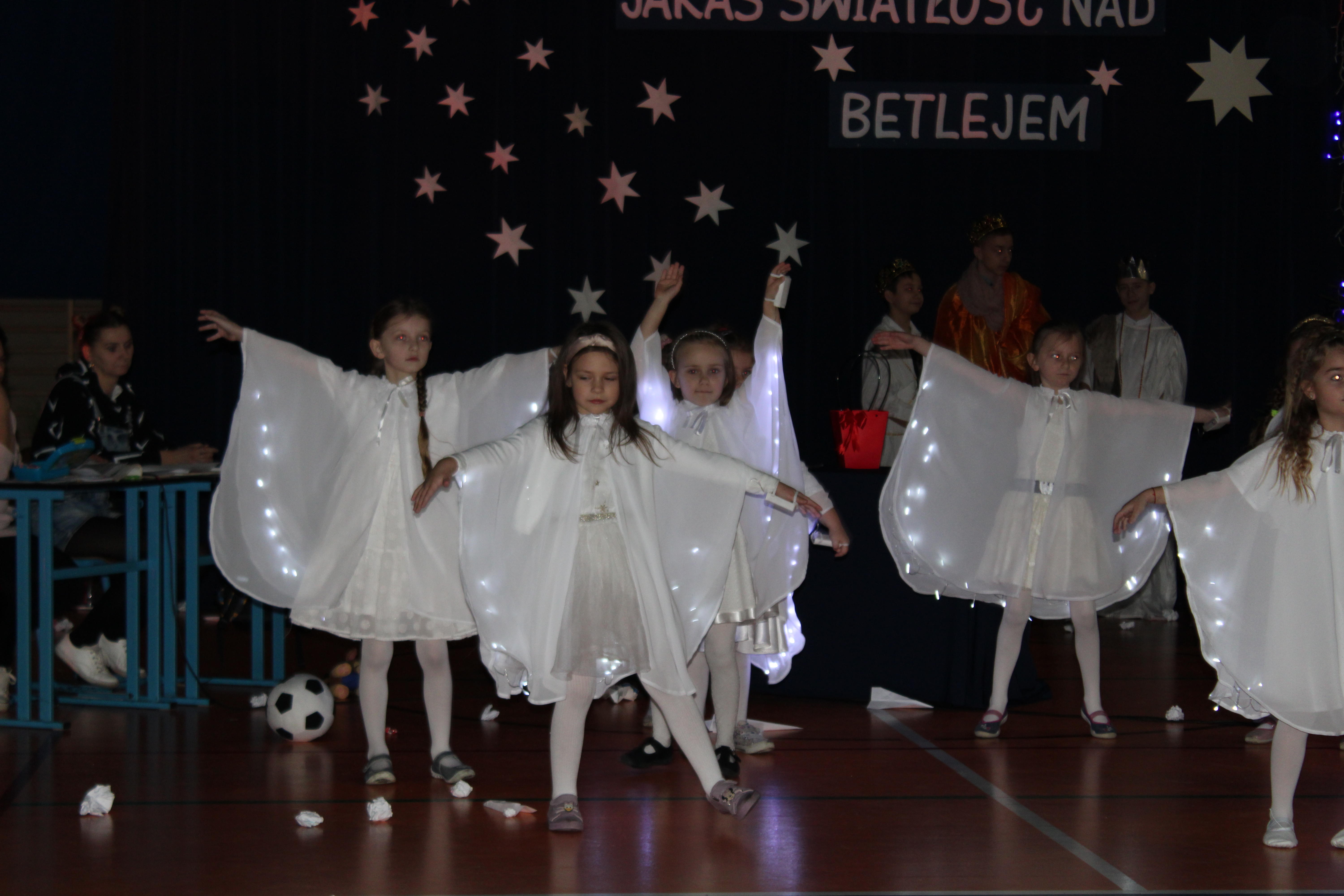 Zbliżające się święta Bożego Narodzenia to czas wyczekiwany szczególnie przez dzieci, ale także przez dorosłych. Magię świąt w naszej szkole można było poczuć w miniony czwartek, który był jednocześnie ostatnim dniem nauki w bieżącym roku. Jasełka to widowisko o Bożym Narodzeniu, które od wieków wpisane są w polską tradycję oraz corocznie wystawiane w naszej szkole. Przedstawienie jasełkowe pt. „Jakaś światłość nad Betlejem” miało przybliżyć uczniom okoliczności narodzin Pana Jezusa. Scenariusz jasełek zawierał najważniejsze wydarzenia towarzyszące narodzinom Jezusa. Główni bohaterowie jasełek – niesforna klasa, dostąpiła zaszczytu obecności przy narodzeniu małego Jezusa. Droga to tego spotkania usłana była różnymi przeciwnościami – podstępne diabły chciały namówić dzieci na naukę w piekielnej klasie! Jednak opieka cudownych Aniołów, pozwoliła dzieciom uwolnić się spod wpływu diabłów i w sposób godny, doniosły przeżyć czas Bożego Narodzenia. W jasełkach bożonarodzeniowych udział wzięli rodzice naszych uczniów: panie Iwona Piotrowicz, Sylwia Konczyńska, Bogumiła Hejdysz i pan Dariusz Drygas. Nauczycielska kadra występująca w tym dniu to: Alina Stefańska, Renata Bartoś, Małgorzata Hajdziony, Anna Sztok, Anna Szymankiewicz, Mariola Janiak, Violeta Rostalska, Izabela Urbaniak, Małgorzata Palczewska, Daria Sobczak, Beata Lisiak, Katarzyna Zaworska, Karol Marciszewski i Sławomir Krawczyk. Piękne piosenki nawiązujące do dnia Bożego Narodzenia wykonały uczennice Sara Janoś i Małgorzata Pluta. Dziewczynki z oddziałów przedszkolnych zatańczyły przy żłóbku, przy którym czuwali pastuszkowie i owieczki. Trzej Królowie: Mateusz Wandelt, Kacper Gościaniak i Krystian Gwóźdź złożyli dary i pokłonili się Maleńkiemu – w tym roku nowonarodzonego Jezuska cudownie zagrała maleńka Zuzia. O oprawę muzyczną zadbał pan Łukasz Naczke, nad całością spektaklu czuwały panie: Marzena Klimek i Justyna Żurkiewicz. Szkolny zespół Mariposa wykonał układy taneczne do popularnych piosenek świątecznych.