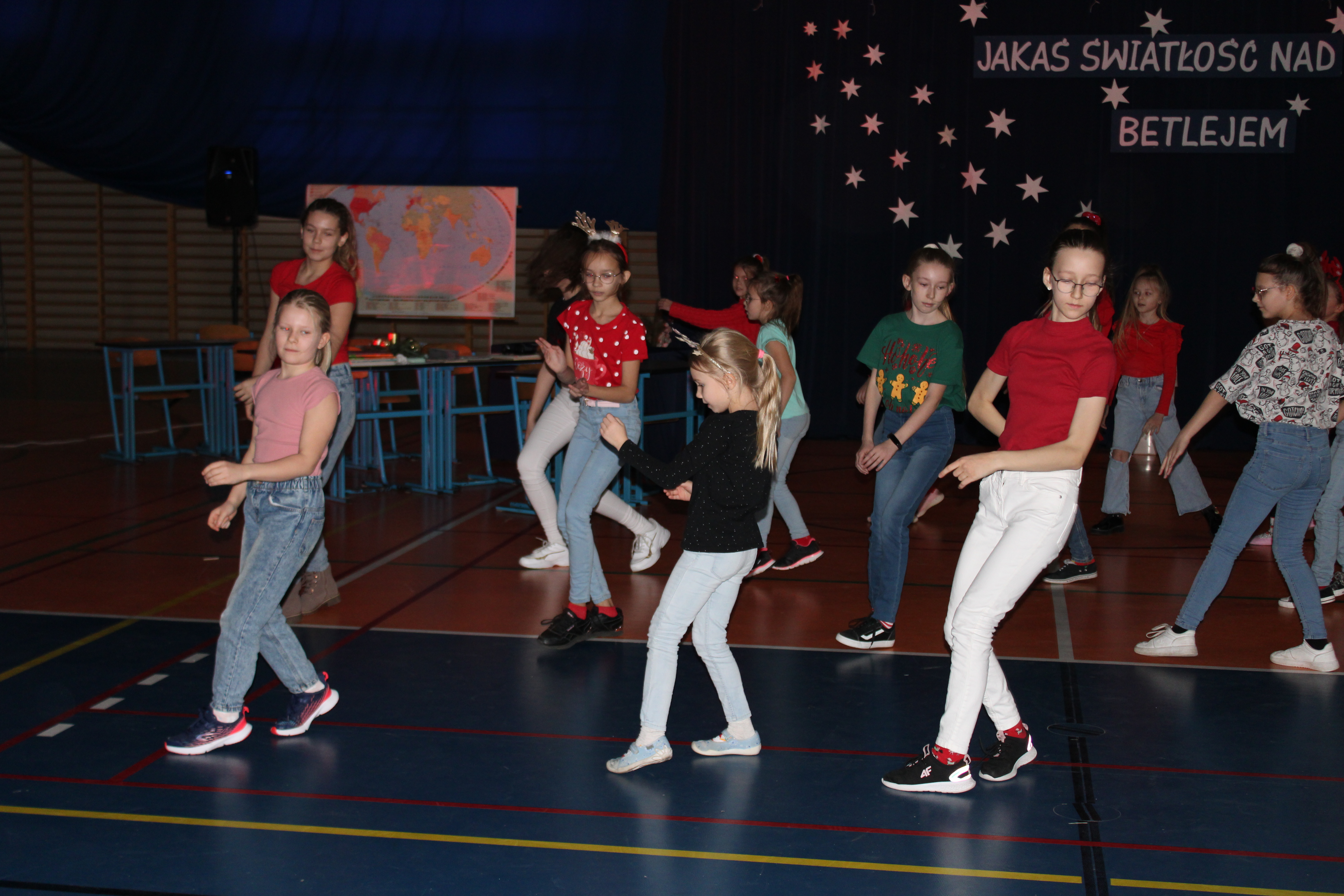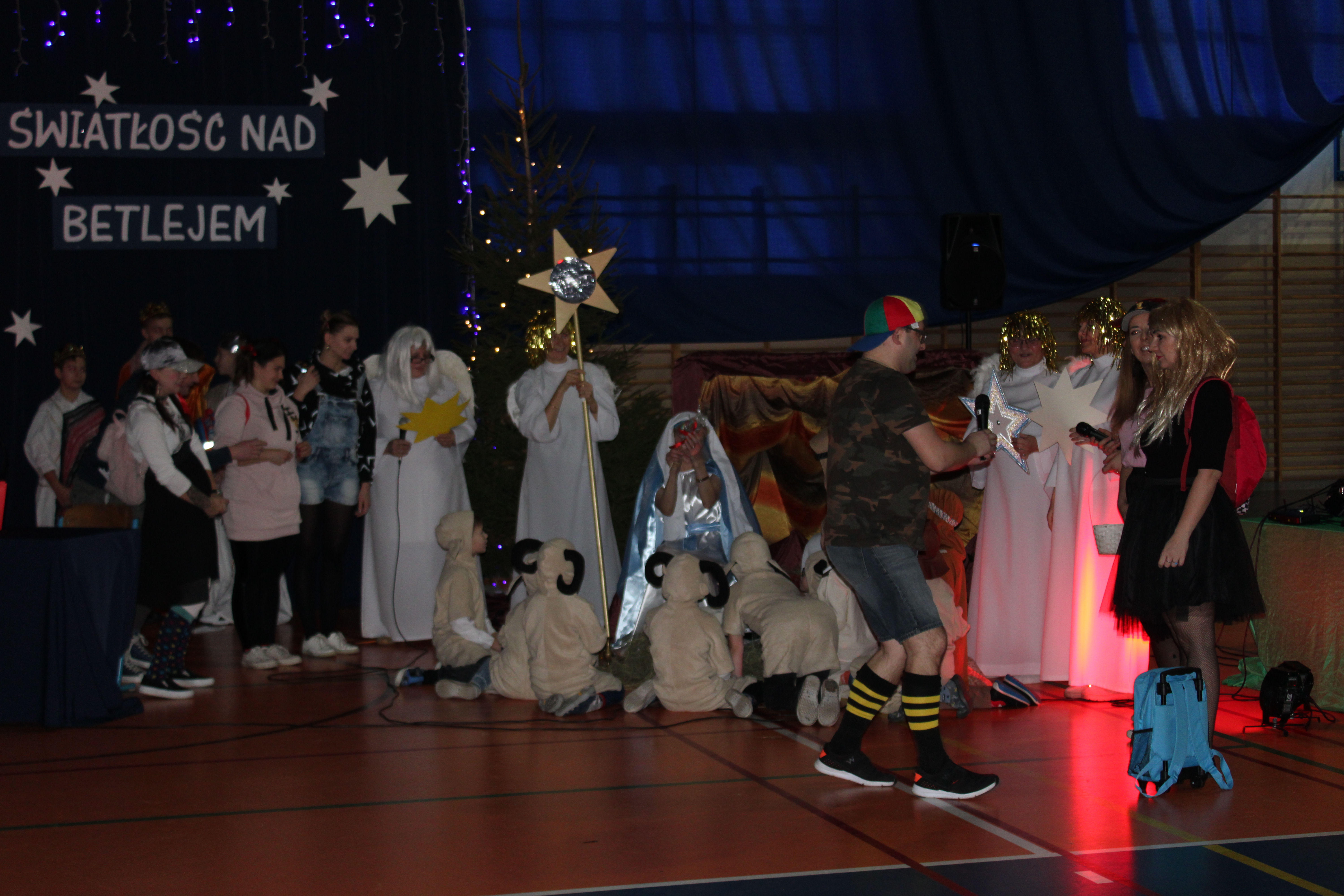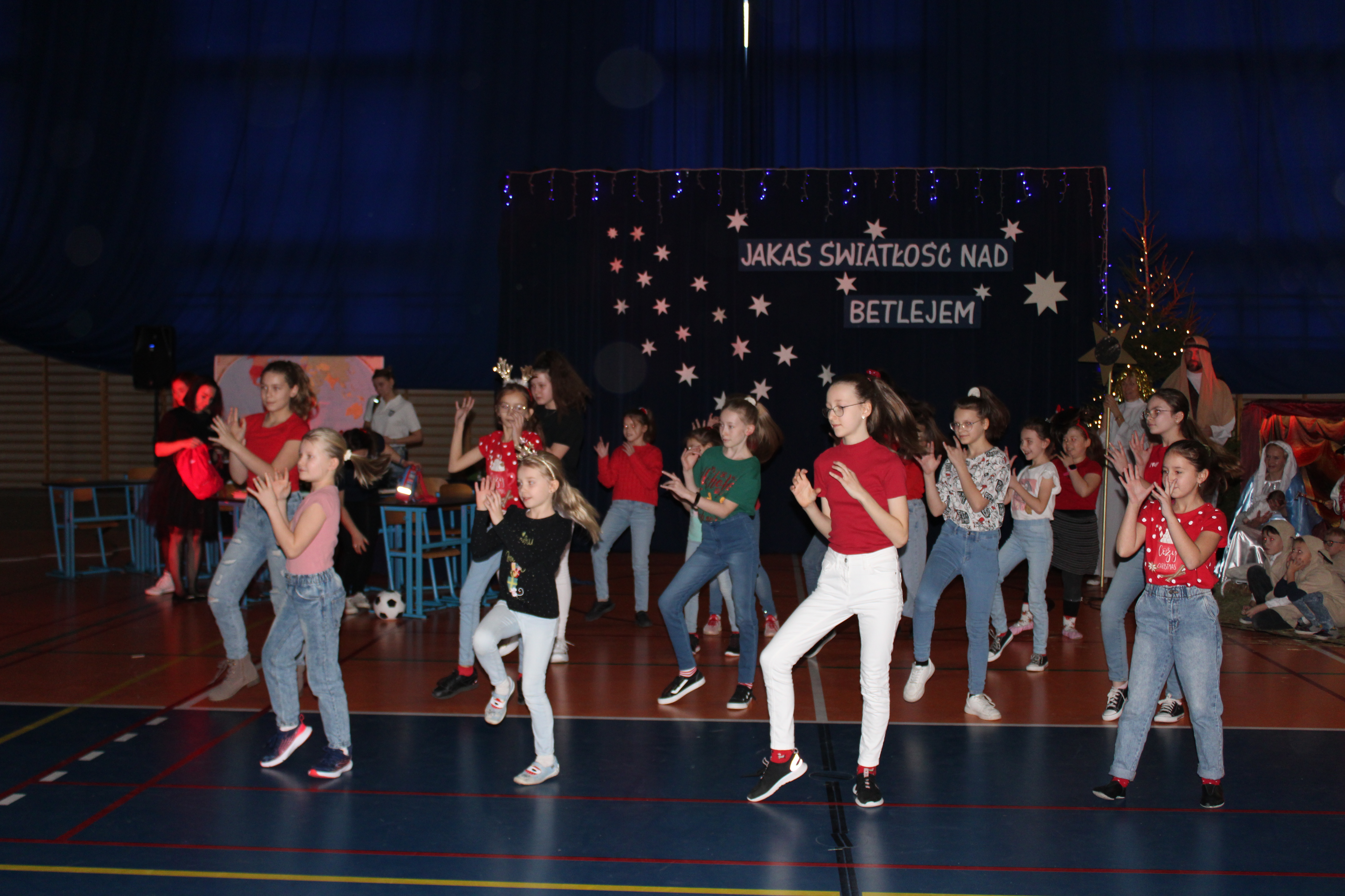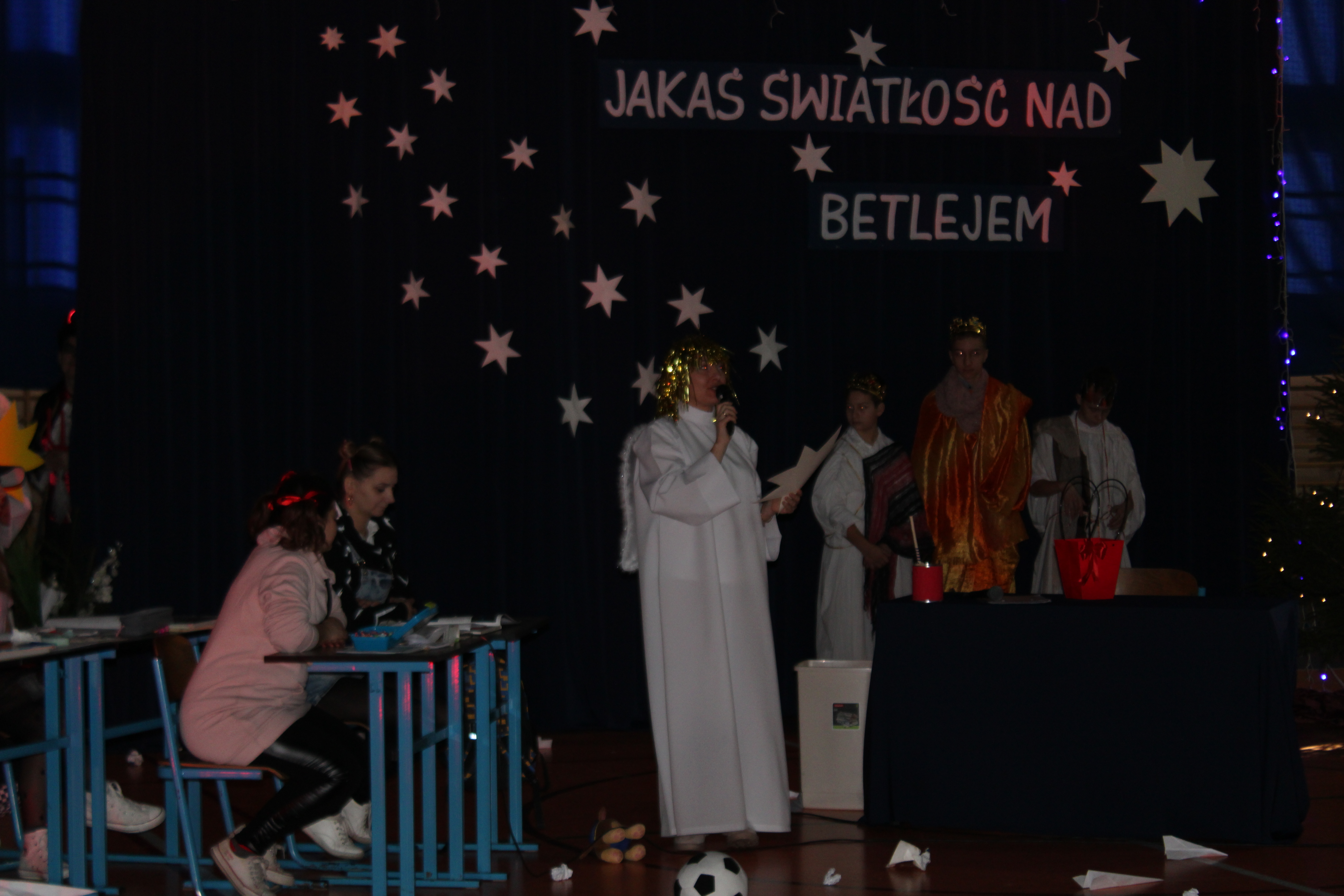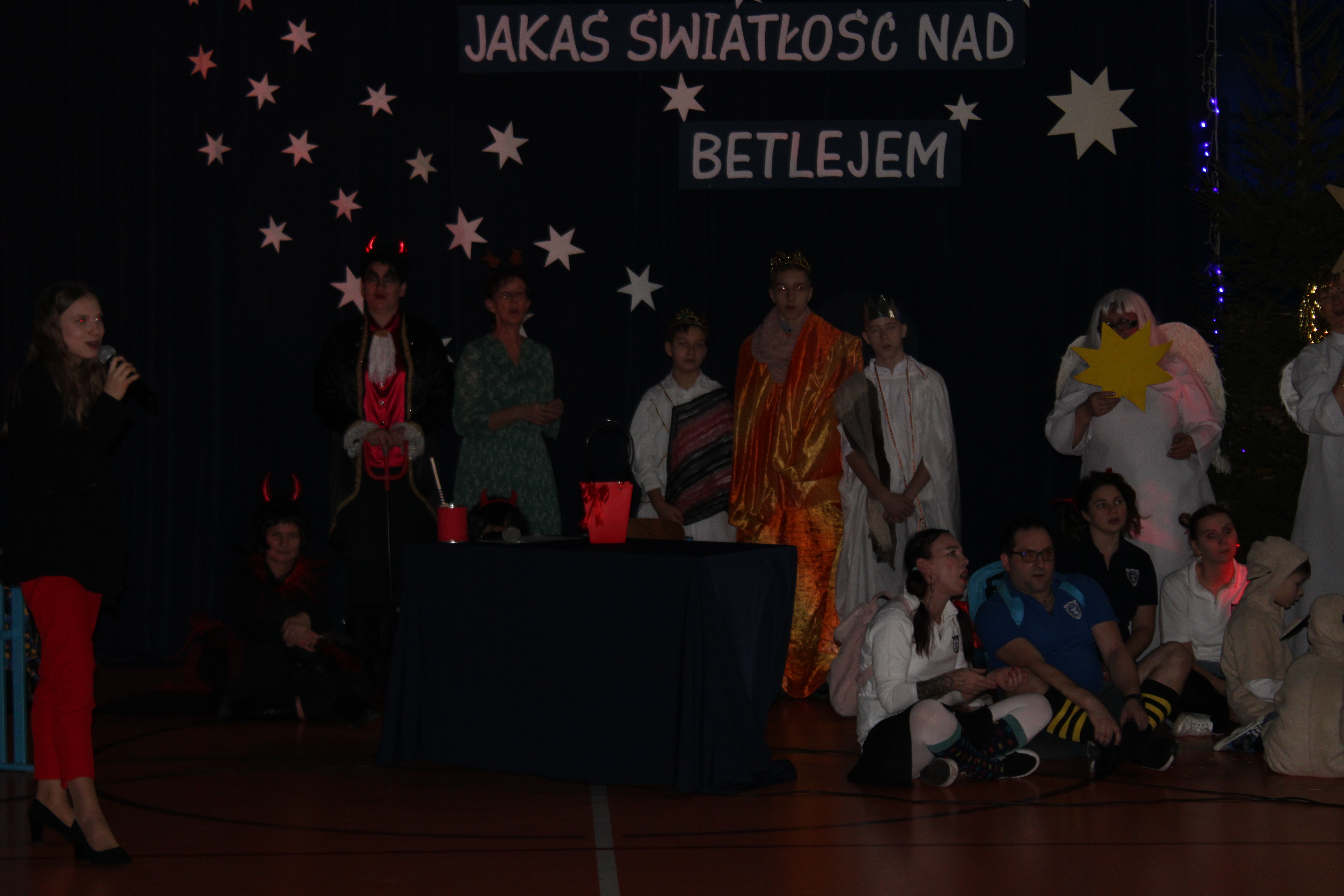Zbliżające się święta Bożego Narodzenia to czas wyczekiwany szczególnie przez dzieci, ale także przez dorosłych. Magię świąt w naszej szkole można było poczuć w miniony czwartek, który był jednocześnie ostatnim dniem nauki w bieżącym roku. Jasełka to widowisko o Bożym Narodzeniu, które od wieków wpisane są w polską tradycję oraz corocznie wystawiane w naszej szkole. Przedstawienie jasełkowe pt. „Jakaś światłość nad Betlejem” miało przybliżyć uczniom okoliczności narodzin Pana Jezusa. Scenariusz jasełek zawierał najważniejsze wydarzenia towarzyszące narodzinom Jezusa. Główni bohaterowie jasełek – niesforna klasa, dostąpiła zaszczytu obecności przy narodzeniu małego Jezusa. Droga to tego spotkania usłana była różnymi przeciwnościami – podstępne diabły chciały namówić dzieci na naukę w piekielnej klasie! Jednak opieka cudownych Aniołów, pozwoliła dzieciom uwolnić się spod wpływu diabłów i w sposób godny, doniosły przeżyć czas Bożego Narodzenia. W jasełkach bożonarodzeniowych udział wzięli rodzice naszych uczniów: panie Iwona Piotrowicz, Sylwia Konczyńska, Bogumiła Hejdysz i pan Dariusz Drygas. Nauczycielska kadra występująca w tym dniu to: Alina Stefańska, Renata Bartoś, Małgorzata Hajdziony, Anna Sztok, Anna Szymankiewicz, Mariola Janiak, Violeta Rostalska, Izabela Urbaniak, Małgorzata Palczewska, Daria Sobczak, Beata Lisiak, Katarzyna Zaworska, Karol Marciszewski i Sławomir Krawczyk. Piękne piosenki nawiązujące do dnia Bożego Narodzenia wykonały uczennice Sara Janoś i Małgorzata Pluta. Dziewczynki z oddziałów przedszkolnych zatańczyły przy żłóbku, przy którym czuwali pastuszkowie i owieczki. Trzej Królowie: Mateusz Wandelt, Kacper Gościaniak i Krystian Gwóźdź złożyli dary i pokłonili się Maleńkiemu – w tym roku nowonarodzonego Jezuska cudownie zagrała maleńka Zuzia. O oprawę muzyczną zadbał pan Łukasz Naczke, nad całością spektaklu czuwały panie: Marzena Klimek i Justyna Żurkiewicz. Szkolny zespół Mariposa wykonał układy taneczne do popularnych piosenek świątecznych.