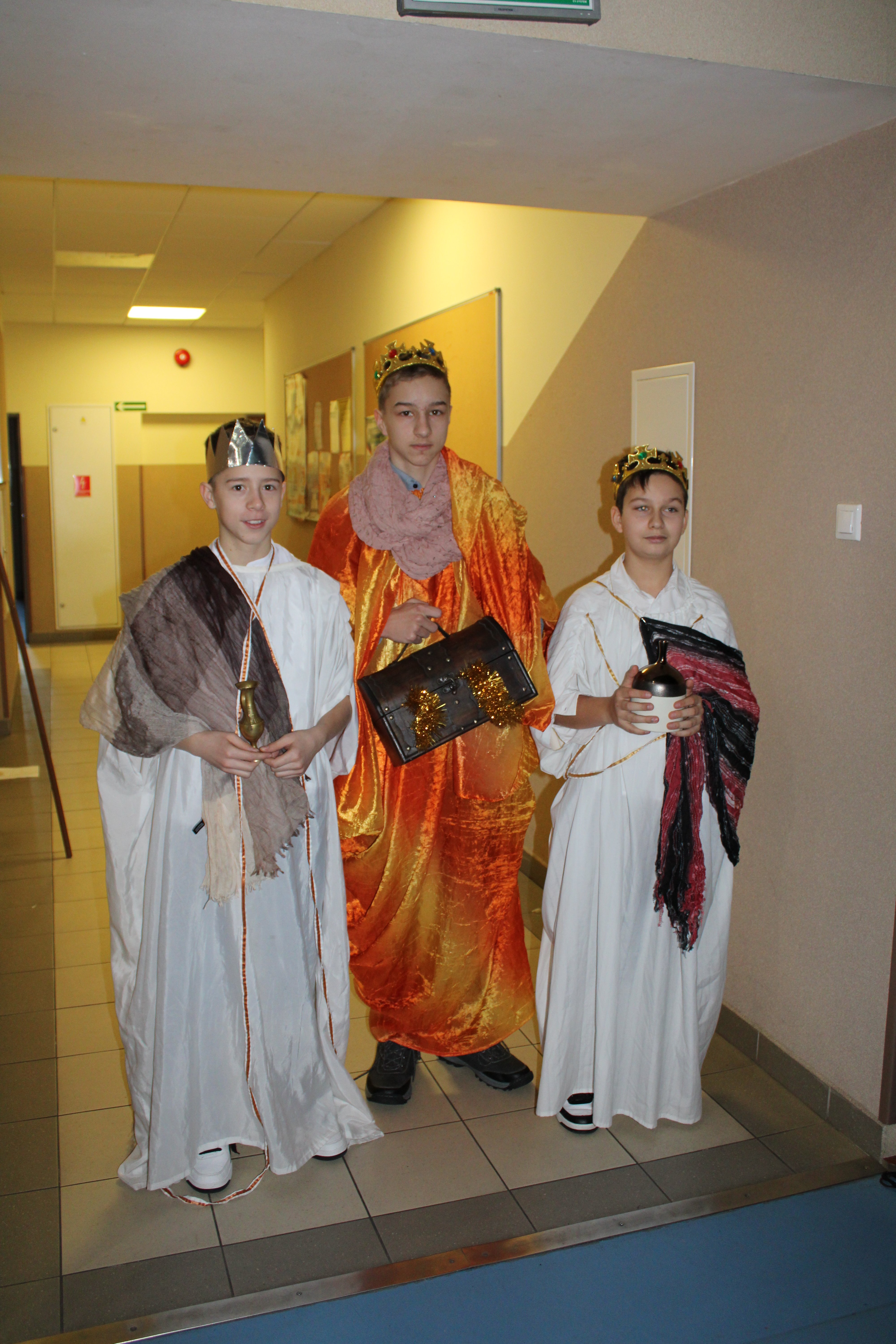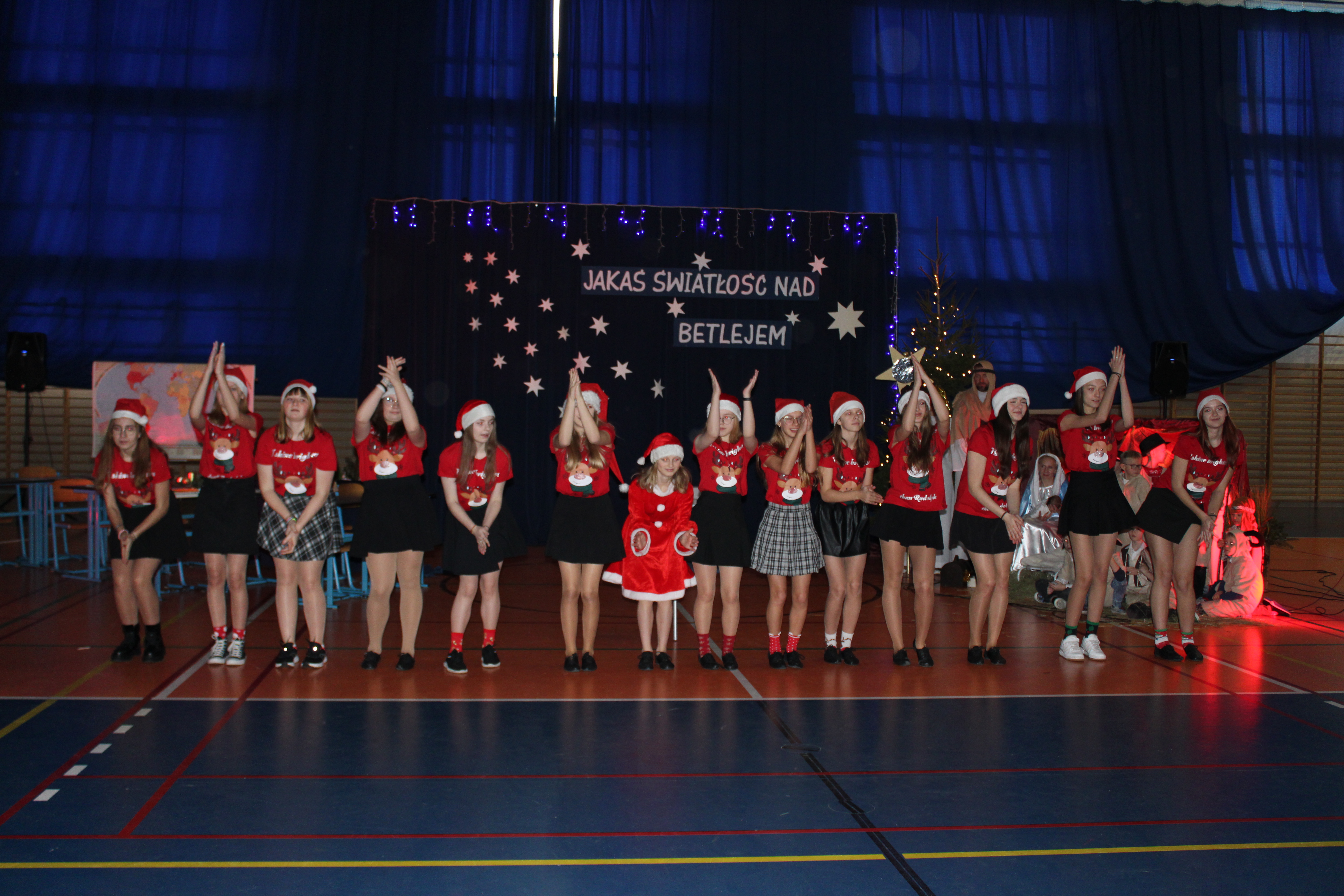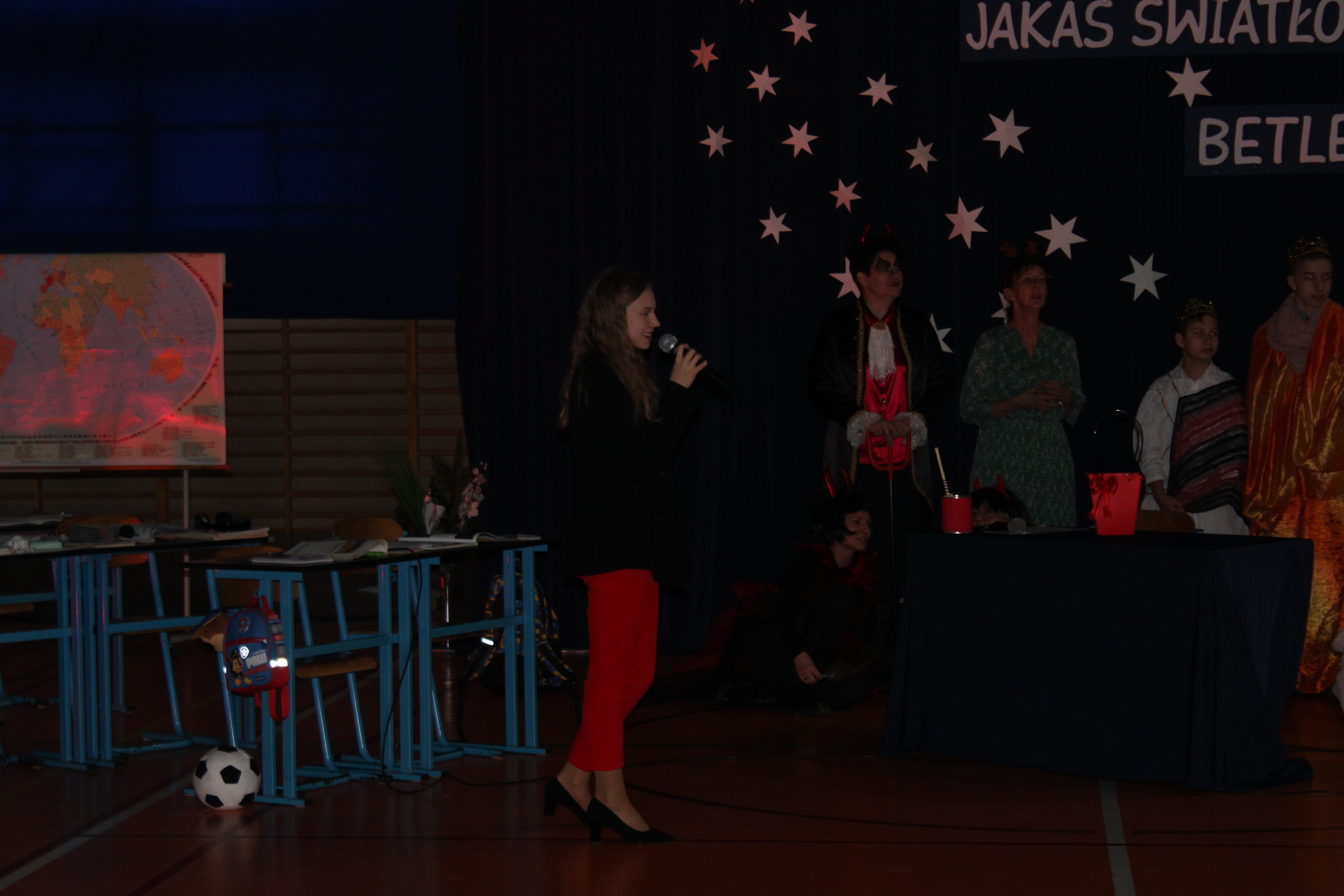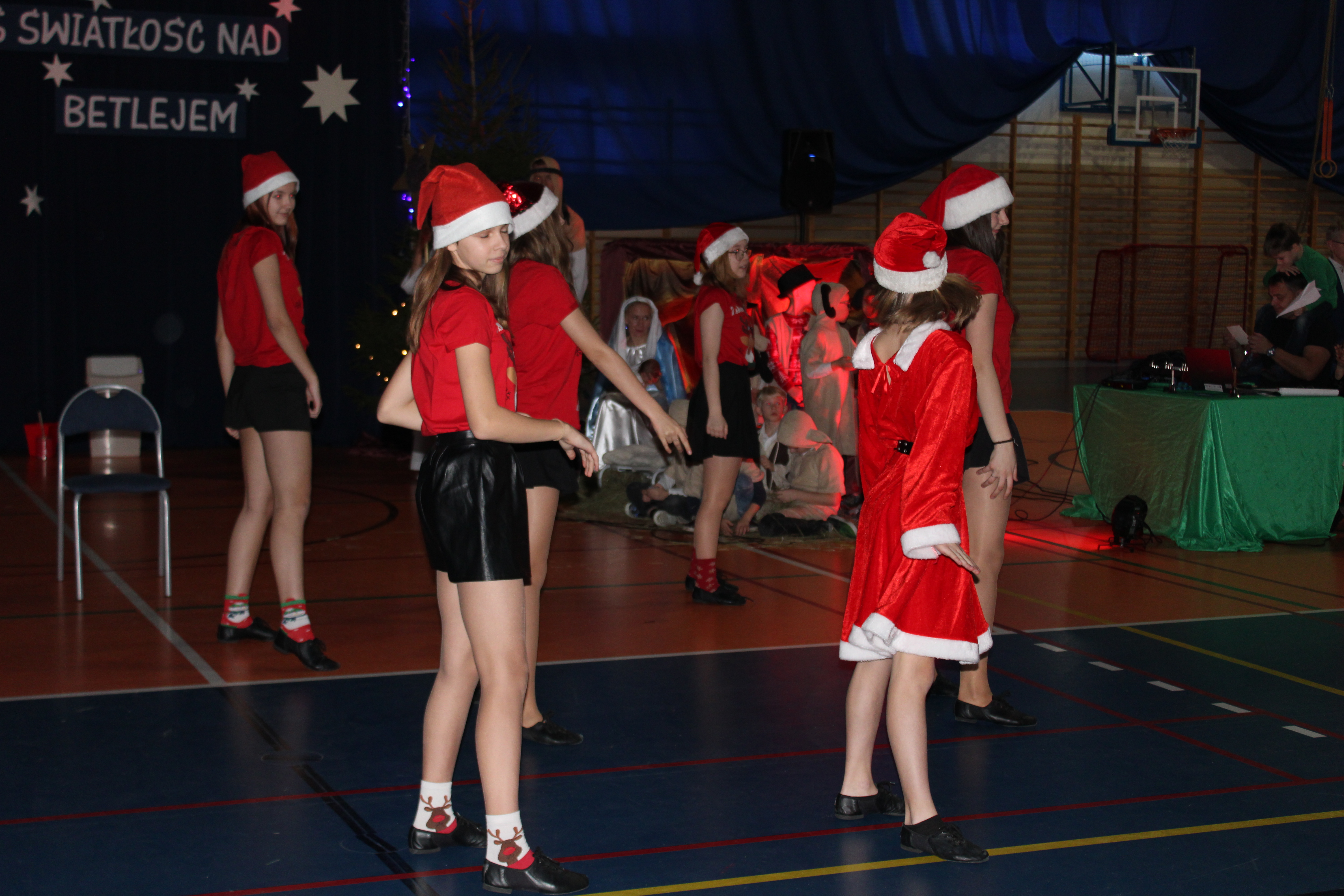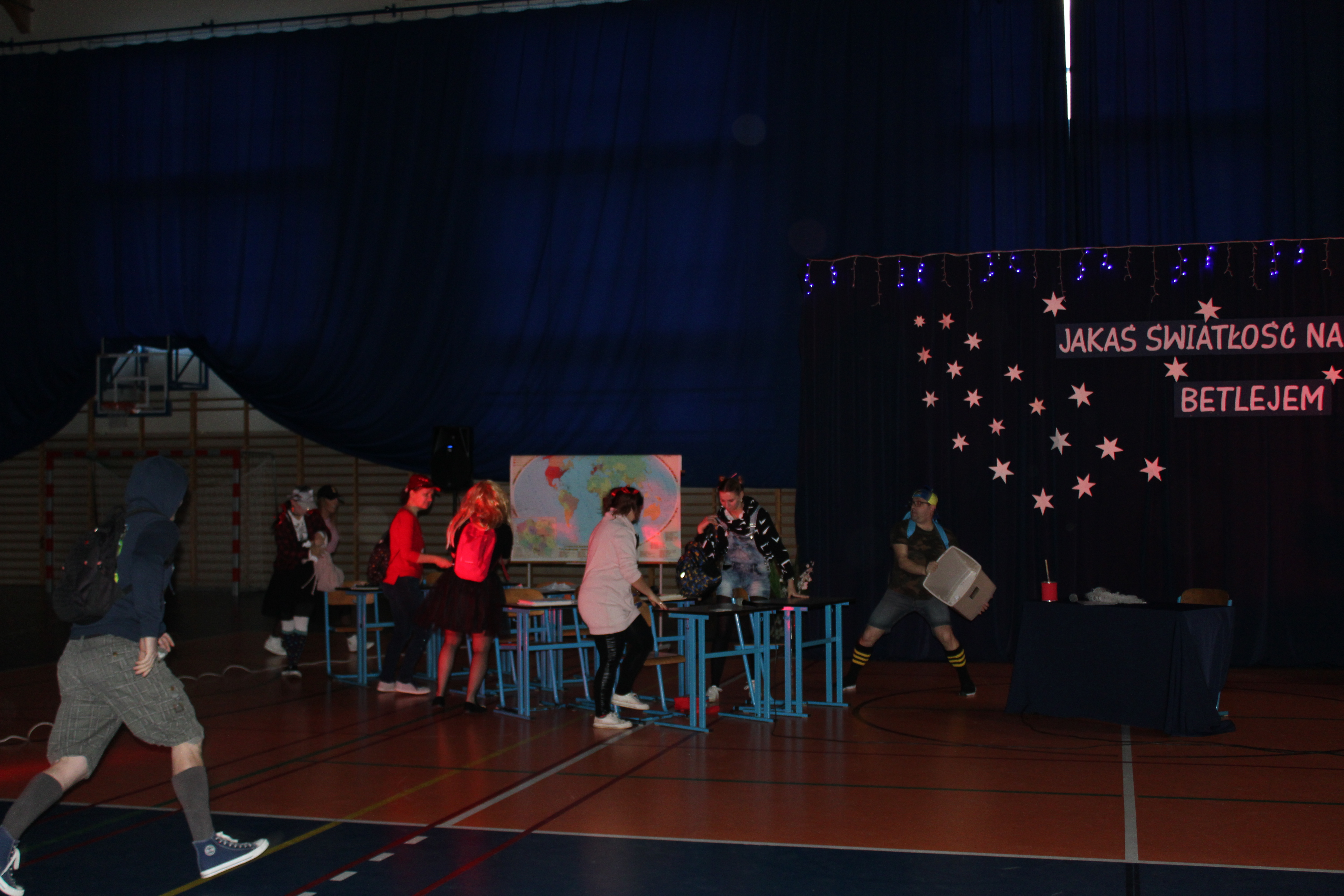 Zbliżające się święta Bożego Narodzenia to czas wyczekiwany szczególnie przez dzieci, ale także przez dorosłych. Magię świąt w naszej szkole można było poczuć w miniony czwartek, który był jednocześnie ostatnim dniem nauki w bieżącym roku. Jasełka to widowisko o Bożym Narodzeniu, które od wieków wpisane są w polską tradycję oraz corocznie wystawiane w naszej szkole. Przedstawienie jasełkowe pt. „Jakaś światłość nad Betlejem” miało przybliżyć uczniom okoliczności narodzin Pana Jezusa. Scenariusz jasełek zawierał najważniejsze wydarzenia towarzyszące narodzinom Jezusa. Główni bohaterowie jasełek – niesforna klasa, dostąpiła zaszczytu obecności przy narodzeniu małego Jezusa. Droga to tego spotkania usłana była różnymi przeciwnościami – podstępne diabły chciały namówić dzieci na naukę w piekielnej klasie! Jednak opieka cudownych Aniołów, pozwoliła dzieciom uwolnić się spod wpływu diabłów i w sposób godny, doniosły przeżyć czas Bożego Narodzenia. W jasełkach bożonarodzeniowych udział wzięli rodzice naszych uczniów: panie Iwona Piotrowicz, Sylwia Konczyńska, Bogumiła Hejdysz i pan Dariusz Drygas. Nauczycielska kadra występująca w tym dniu to: Alina Stefańska, Renata Bartoś, Małgorzata Hajdziony, Anna Sztok, Anna Szymankiewicz, Mariola Janiak, Violeta Rostalska, Izabela Urbaniak, Małgorzata Palczewska, Daria Sobczak, Beata Lisiak, Katarzyna Zaworska, Karol Marciszewski i Sławomir Krawczyk. Piękne piosenki nawiązujące do dnia Bożego Narodzenia wykonały uczennice Sara Janoś i Małgorzata Pluta. Dziewczynki z oddziałów przedszkolnych zatańczyły przy żłóbku, przy którym czuwali pastuszkowie i owieczki. Trzej Królowie: Mateusz Wandelt, Kacper Gościaniak i Krystian Gwóźdź złożyli dary i pokłonili się Maleńkiemu – w tym roku nowonarodzonego Jezuska cudownie zagrała maleńka Zuzia. O oprawę muzyczną zadbał pan Łukasz Naczke, nad całością spektaklu czuwały panie: Marzena Klimek i Justyna Żurkiewicz. Szkolny zespół Mariposa wykonał układy taneczne do popularnych piosenek świątecznych.