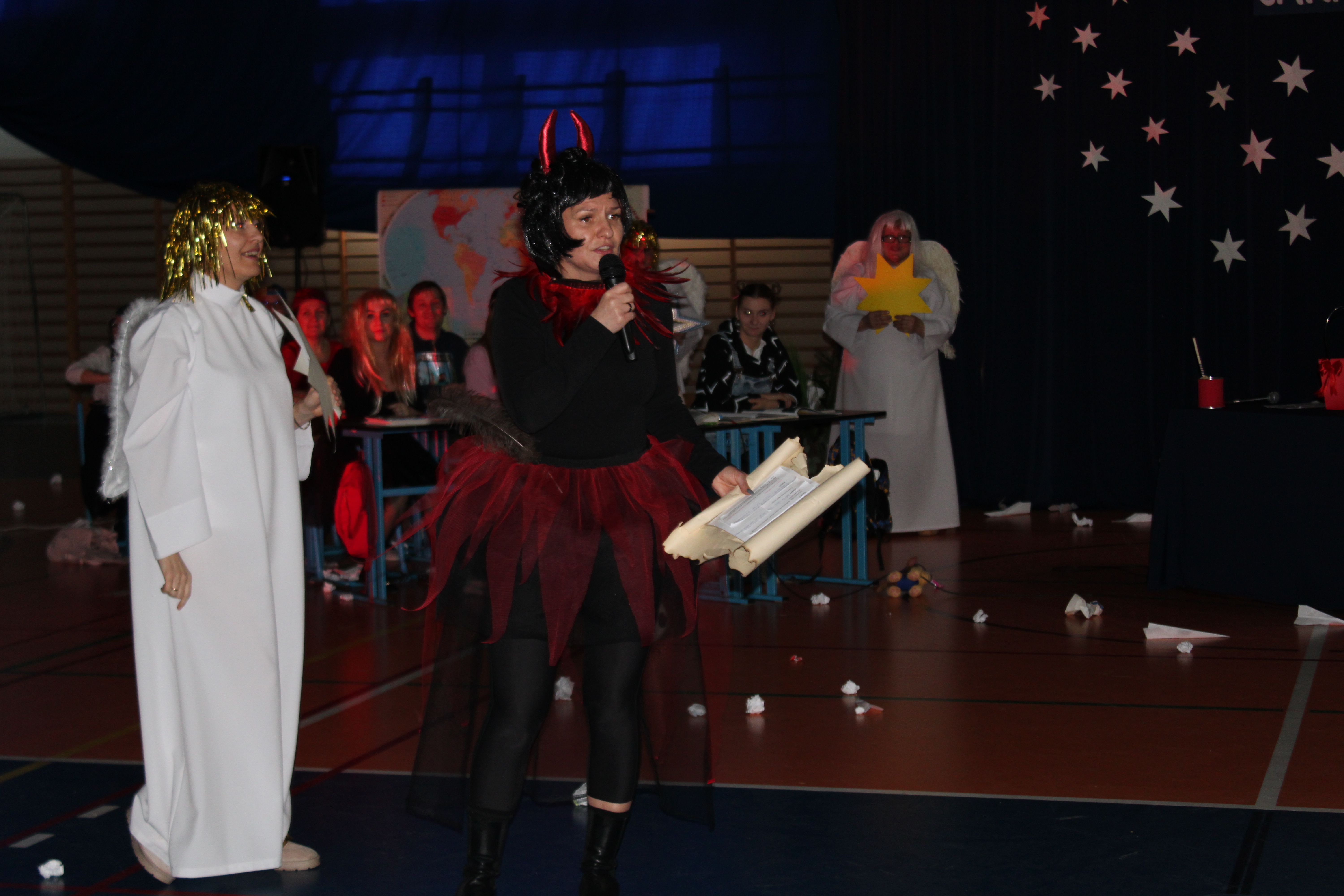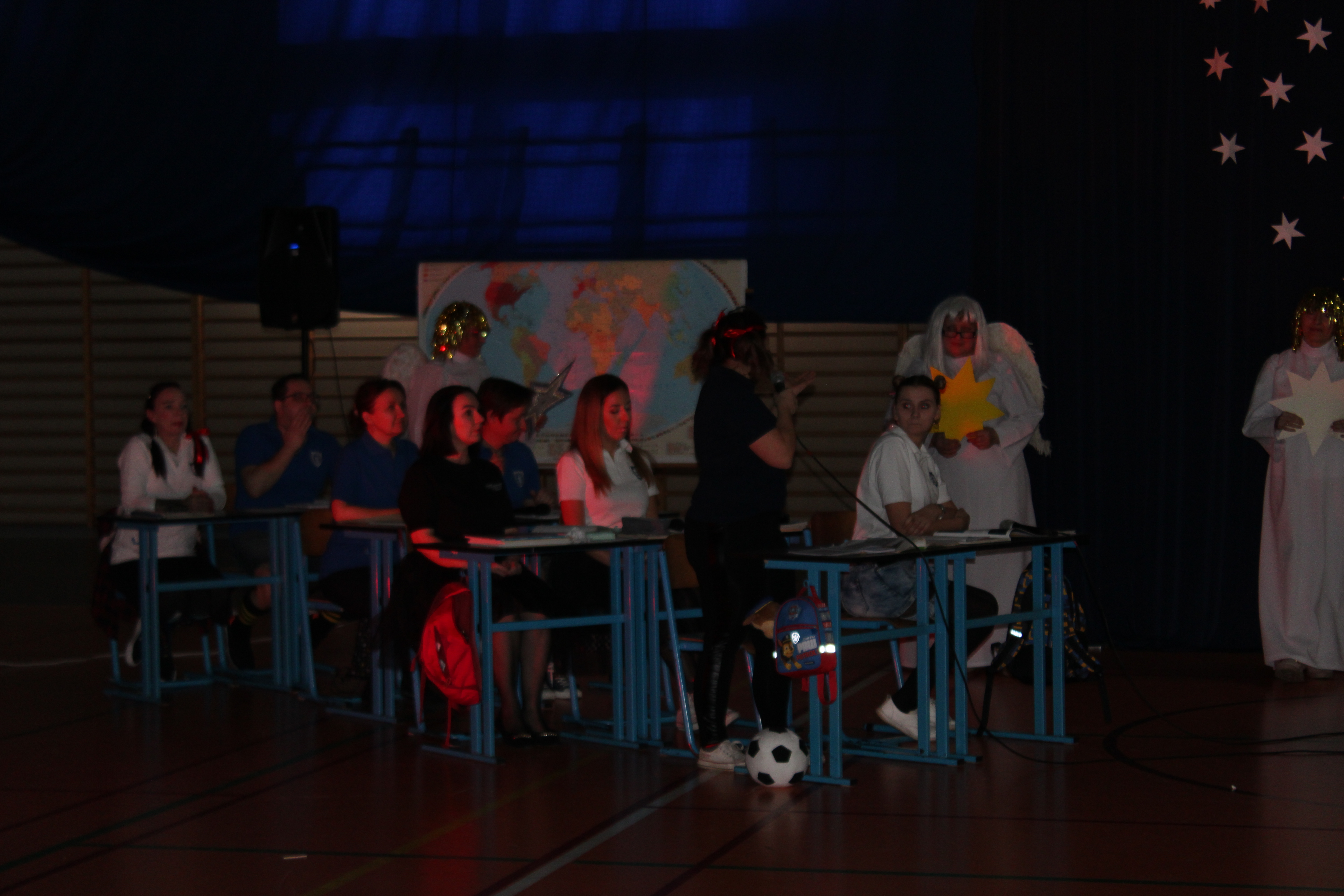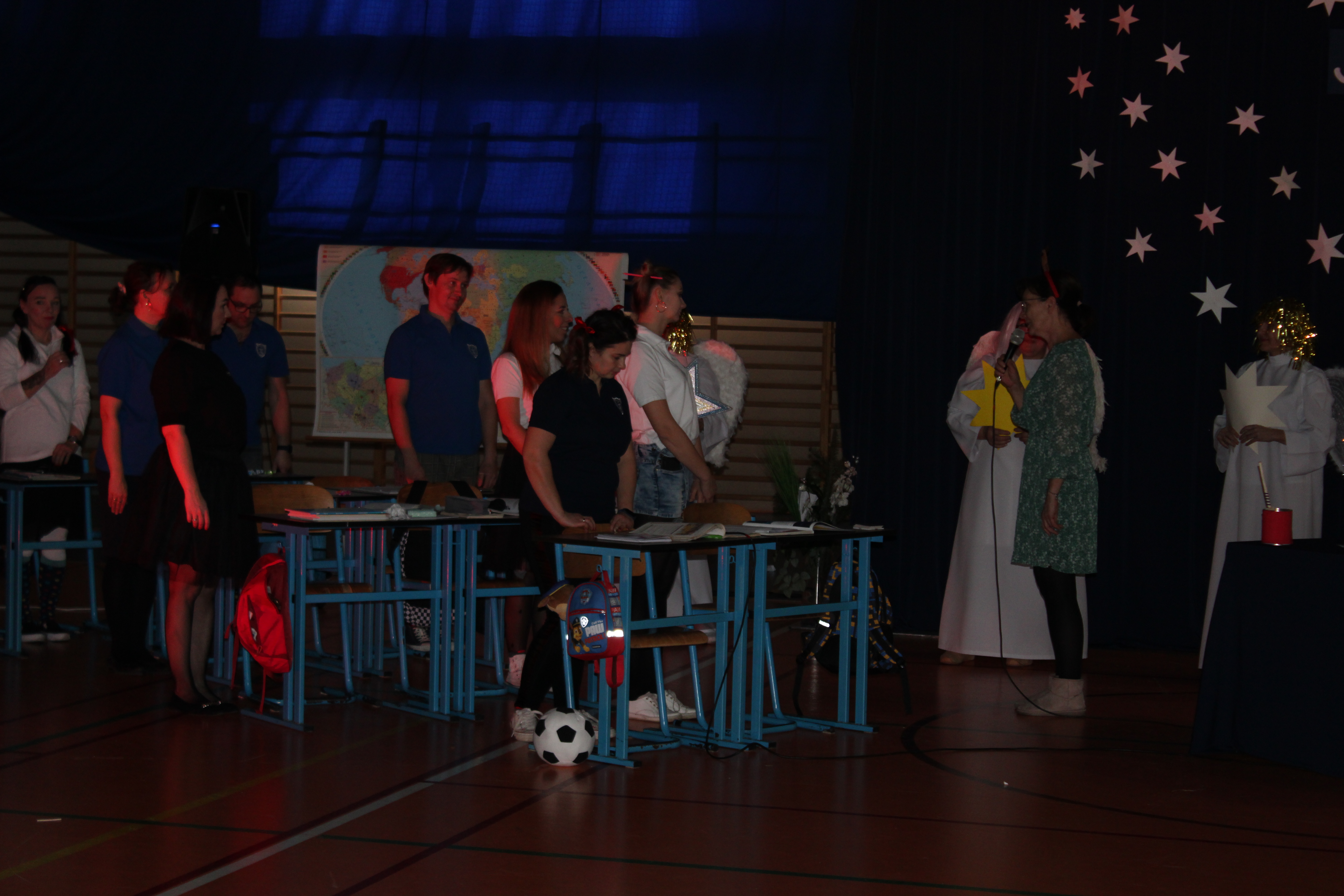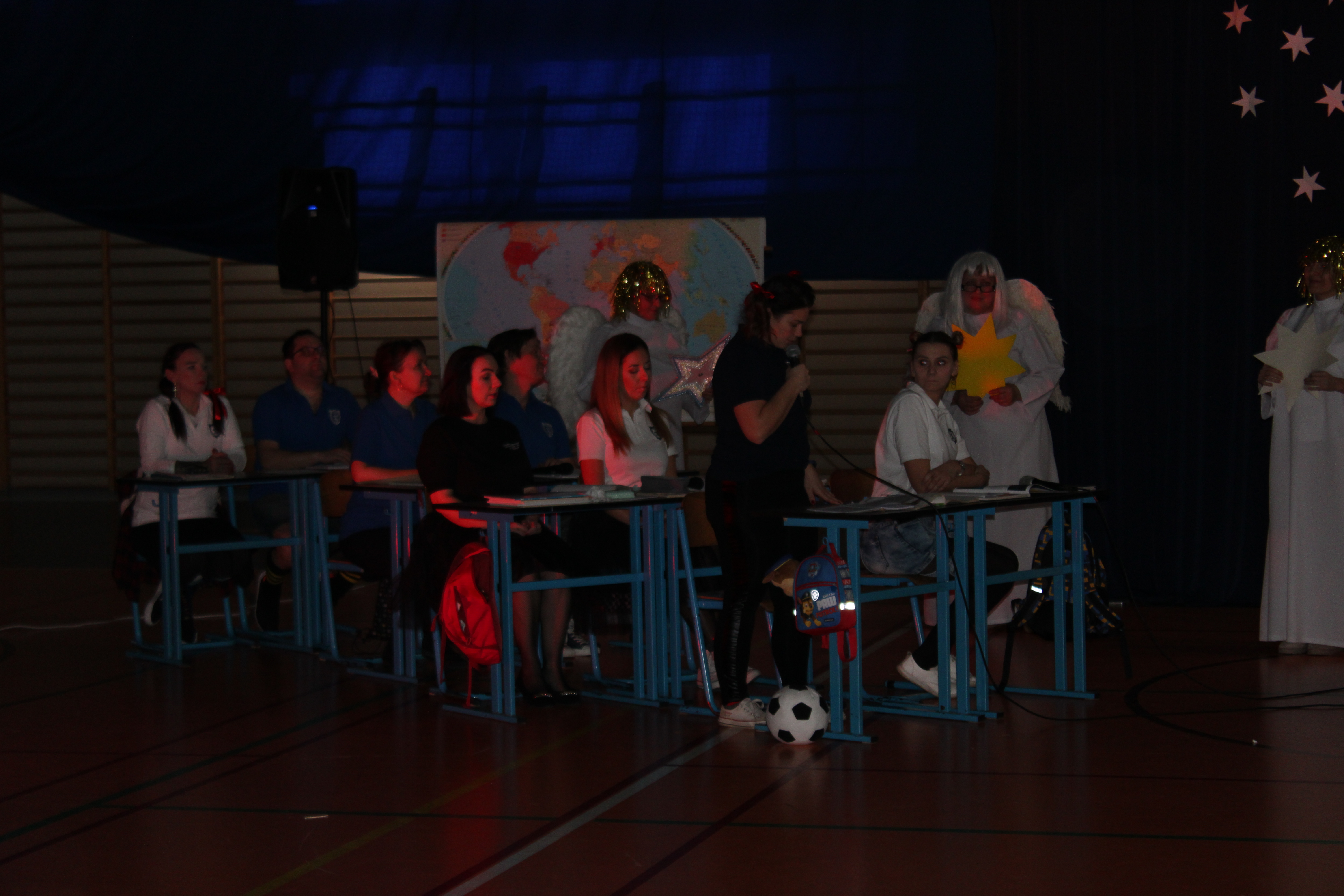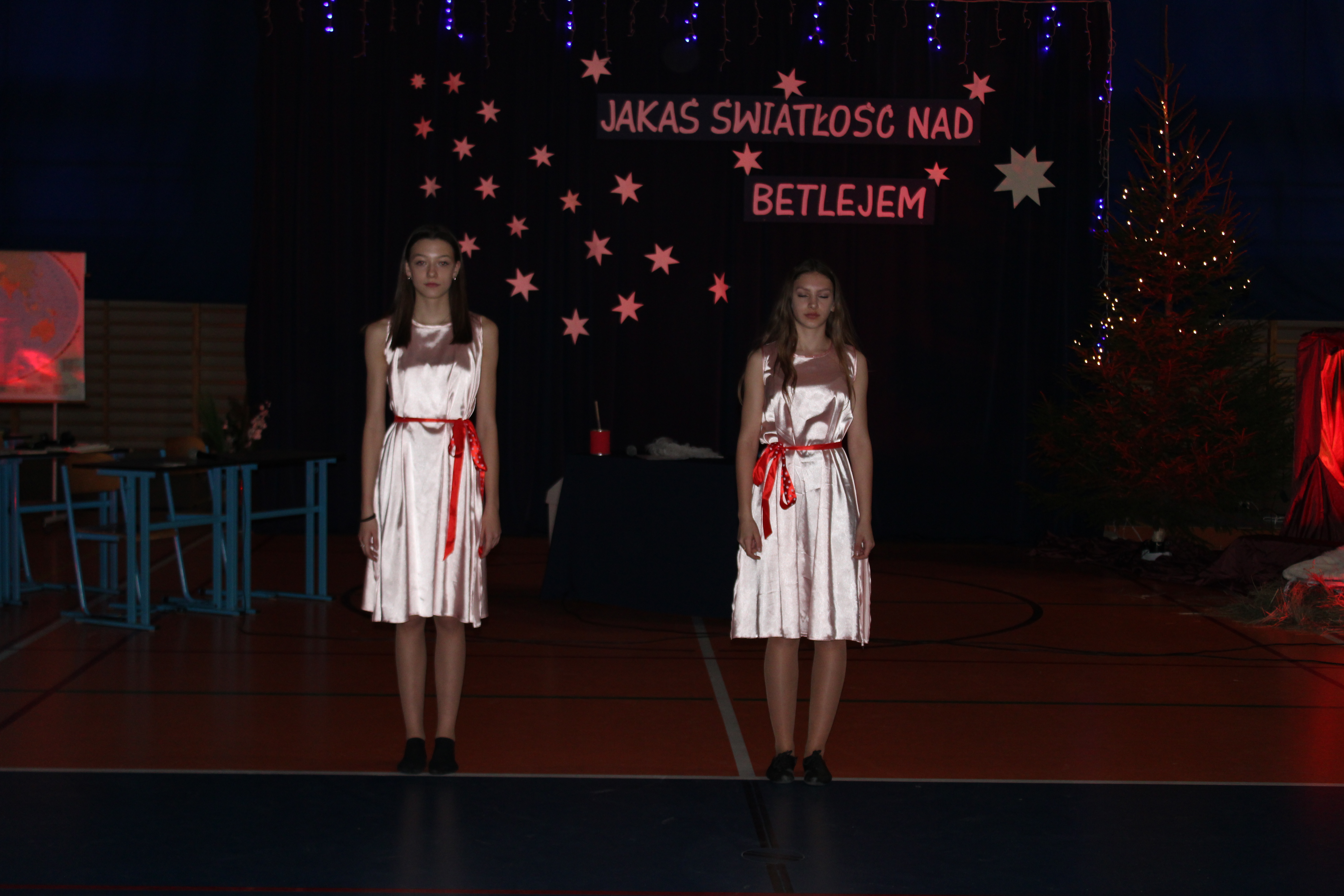 Zbliżające się święta Bożego Narodzenia to czas wyczekiwany szczególnie przez dzieci, ale także przez dorosłych. Magię świąt w naszej szkole można było poczuć w miniony czwartek, który był jednocześnie ostatnim dniem nauki w bieżącym roku. Jasełka to widowisko o Bożym Narodzeniu, które od wieków wpisane są w polską tradycję oraz corocznie wystawiane w naszej szkole. Przedstawienie jasełkowe pt. „Jakaś światłość nad Betlejem” miało przybliżyć uczniom okoliczności narodzin Pana Jezusa. Scenariusz jasełek zawierał najważniejsze wydarzenia towarzyszące narodzinom Jezusa. Główni bohaterowie jasełek – niesforna klasa, dostąpiła zaszczytu obecności przy narodzeniu małego Jezusa. Droga to tego spotkania usłana była różnymi przeciwnościami – podstępne diabły chciały namówić dzieci na naukę w piekielnej klasie! Jednak opieka cudownych Aniołów, pozwoliła dzieciom uwolnić się spod wpływu diabłów i w sposób godny, doniosły przeżyć czas Bożego Narodzenia. W jasełkach bożonarodzeniowych udział wzięli rodzice naszych uczniów: panie Iwona Piotrowicz, Sylwia Konczyńska, Bogumiła Hejdysz i pan Dariusz Drygas. Nauczycielska kadra występująca w tym dniu to: Alina Stefańska, Renata Bartoś, Małgorzata Hajdziony, Anna Sztok, Anna Szymankiewicz, Mariola Janiak, Violeta Rostalska, Izabela Urbaniak, Małgorzata Palczewska, Daria Sobczak, Beata Lisiak, Katarzyna Zaworska, Karol Marciszewski i Sławomir Krawczyk. Piękne piosenki nawiązujące do dnia Bożego Narodzenia wykonały uczennice Sara Janoś i Małgorzata Pluta. Dziewczynki z oddziałów przedszkolnych zatańczyły przy żłóbku, przy którym czuwali pastuszkowie i owieczki. Trzej Królowie: Mateusz Wandelt, Kacper Gościaniak i Krystian Gwóźdź złożyli dary i pokłonili się Maleńkiemu – w tym roku nowonarodzonego Jezuska cudownie zagrała maleńka Zuzia. O oprawę muzyczną zadbał pan Łukasz Naczke, nad całością spektaklu czuwały panie: Marzena Klimek i Justyna Żurkiewicz. Szkolny zespół Mariposa wykonał układy taneczne do popularnych piosenek świątecznych.