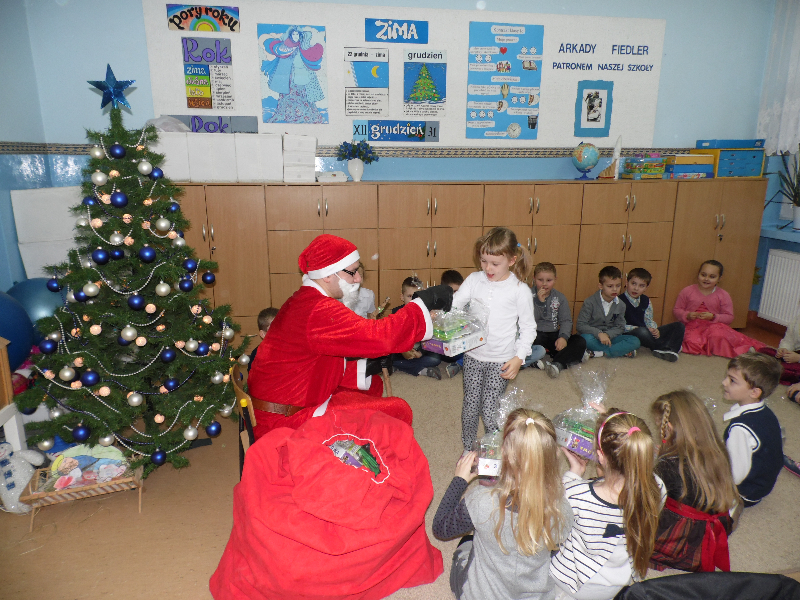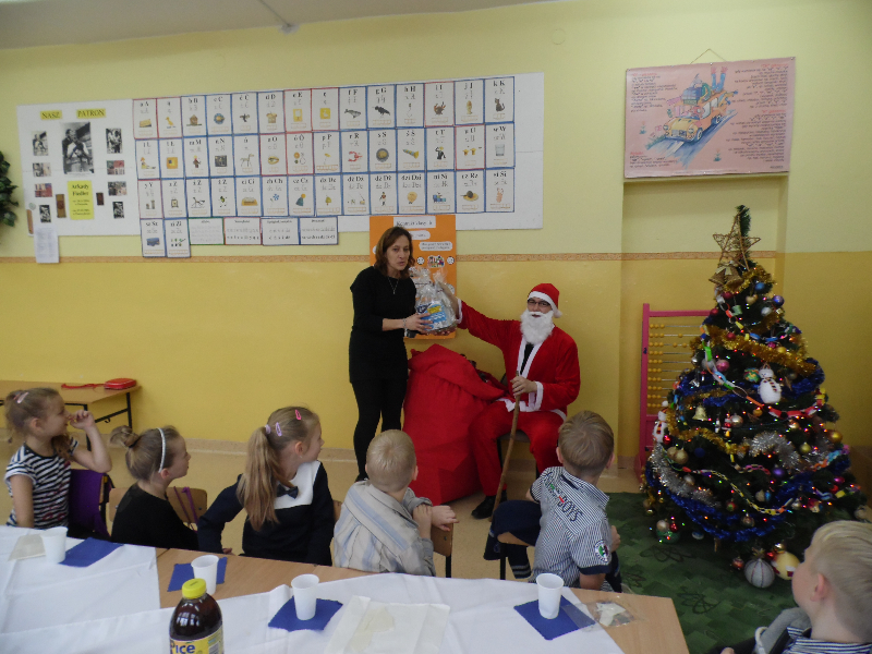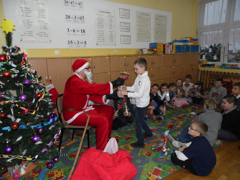 Po wigilii w klasach odwiedził uczniów Gwiazdor.