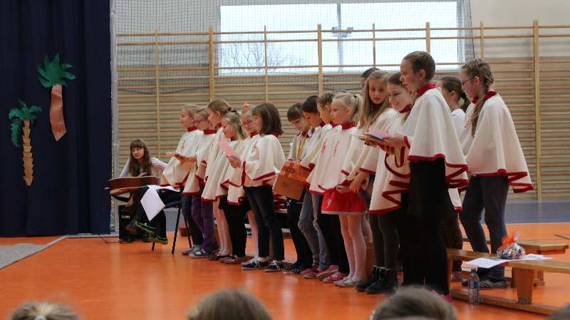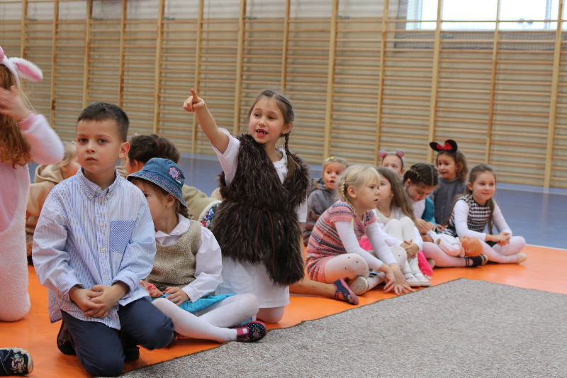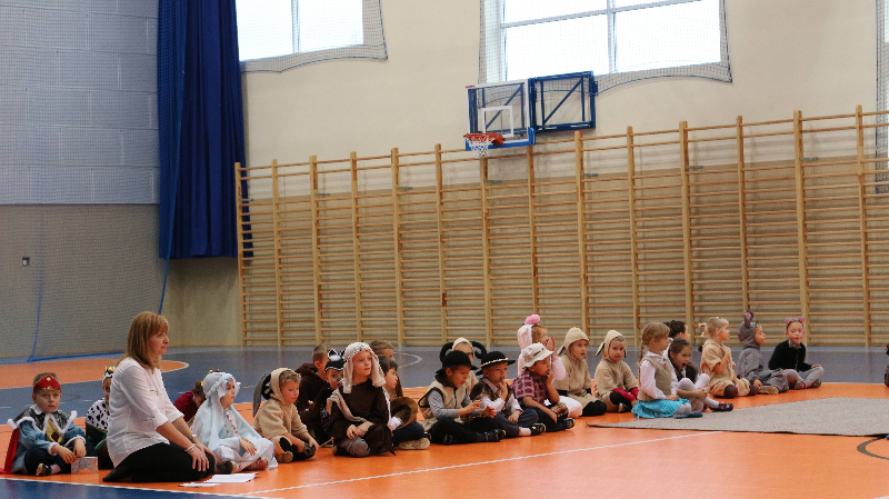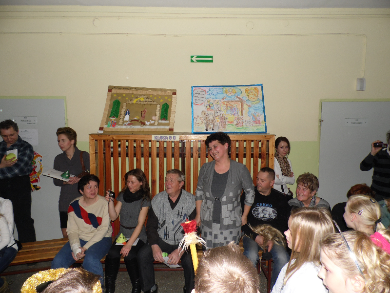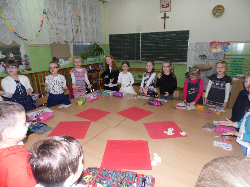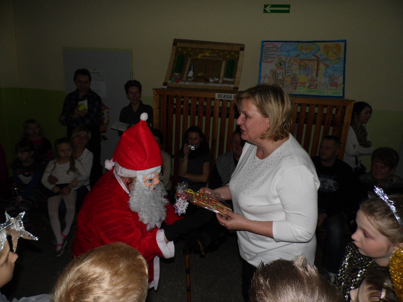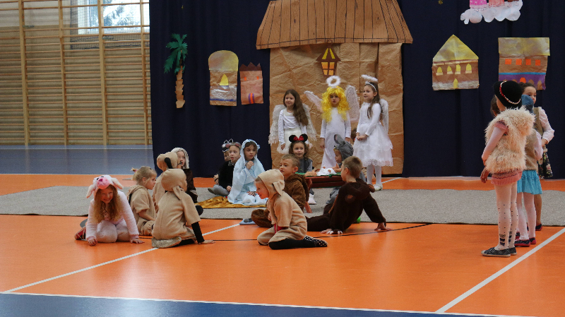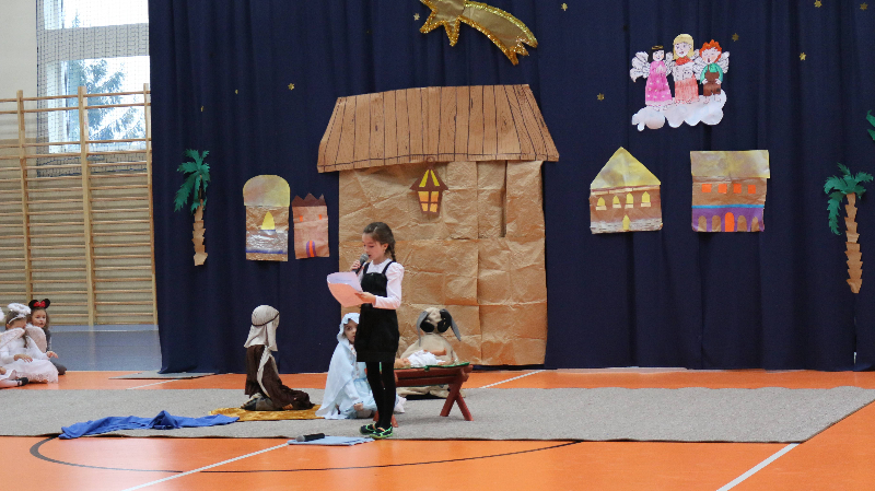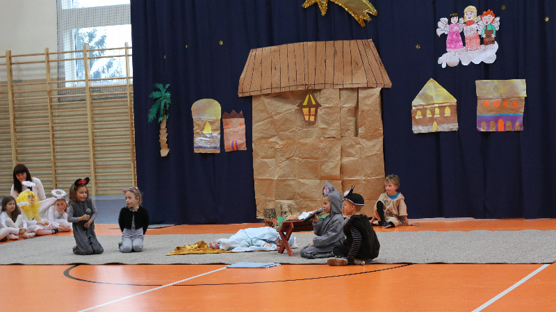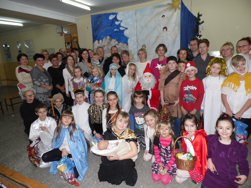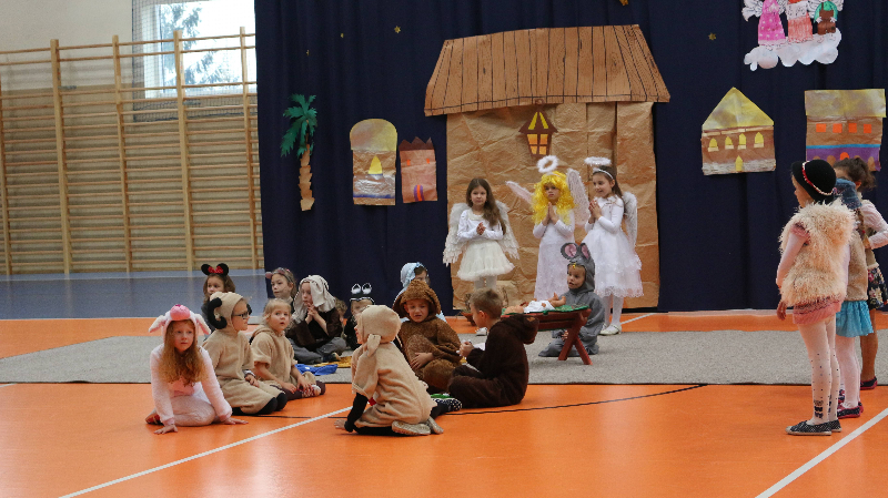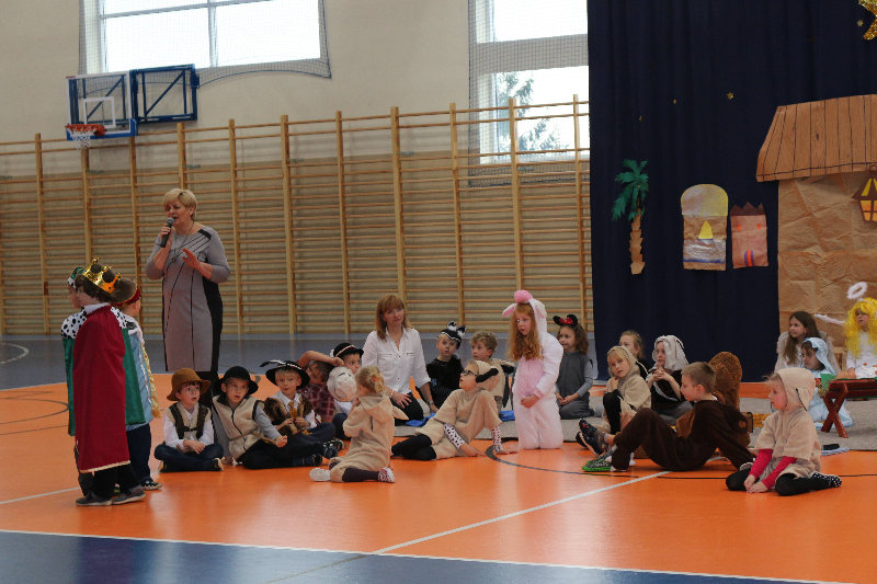 Tegoroczne jasełka bożonarodzeniowe nosiły tytuł „Jasełkowa łezka” i miały formę humoreski. Wystąpiły w nich dzieci z oddziału przedszkolnego oraz z klasy Id. W zabawnych dialogach mali aktorzy przybliżyli przesłanie płynące ze Stajenki Betlejemskiej zebranej na hali widowiskowo – sportowej społeczności szkolnej. Stroje przygotowali swoim dzieciom rodzice, a dekoracje – pani Dorota Gidaszewska – Burkietowicz. O piękny śpiew kolęd i pastorałek stosownych do scenariusza zadbał Religijny Zespół Wokalny. Przedstawienie przygotowały panie katechetki: Marzena Klimek i Justyna Żurkiewicz przy pomocy pani Ilony Klimek, która czuwała nad doborem podkładów muzycznych.