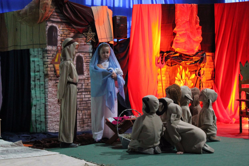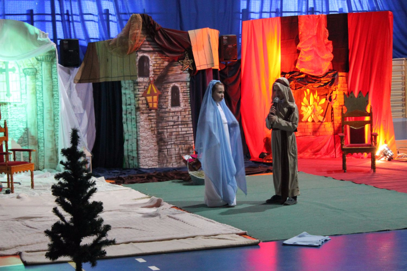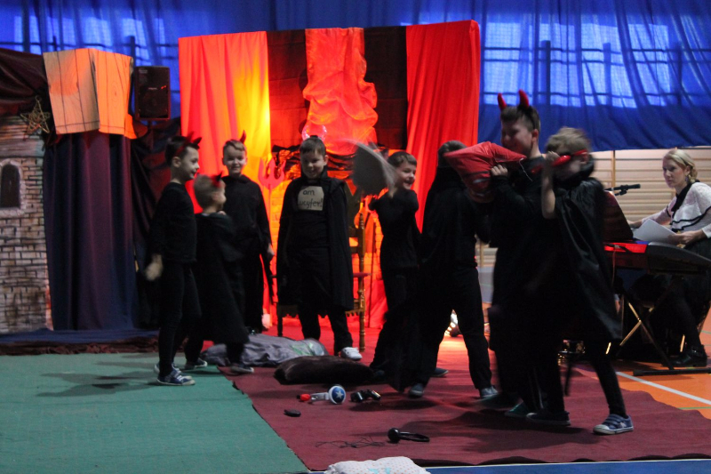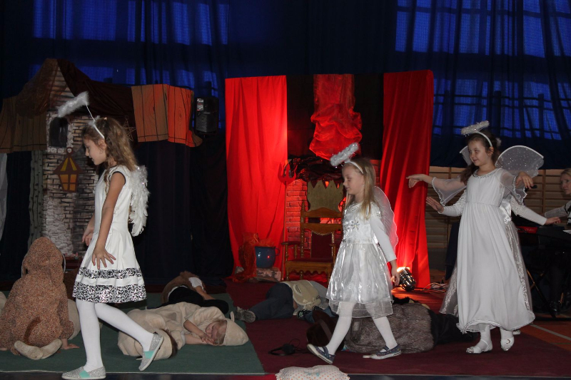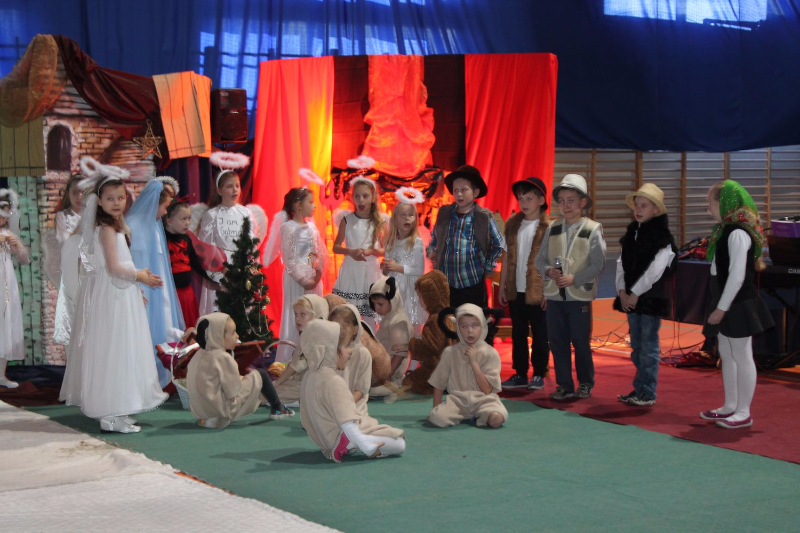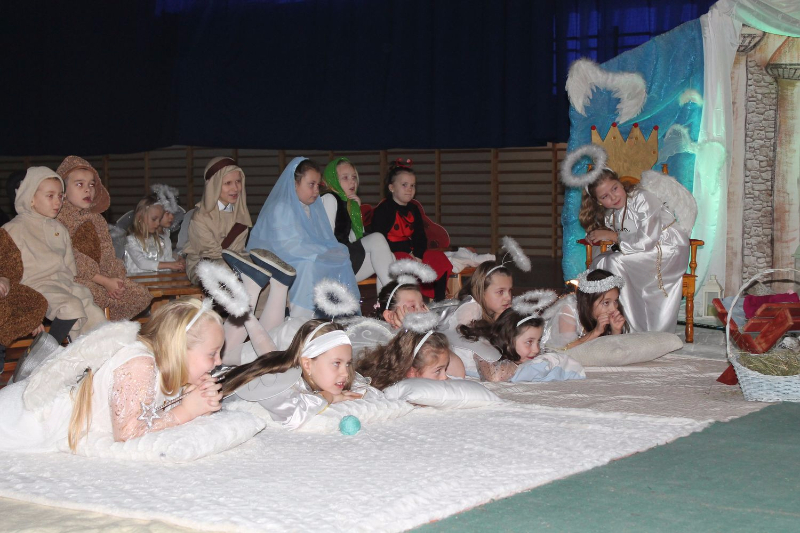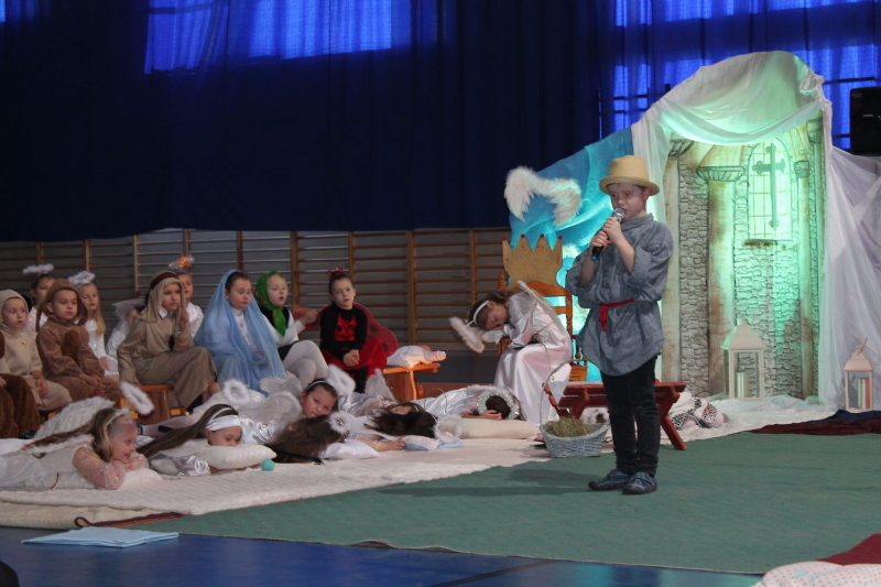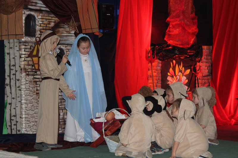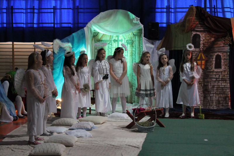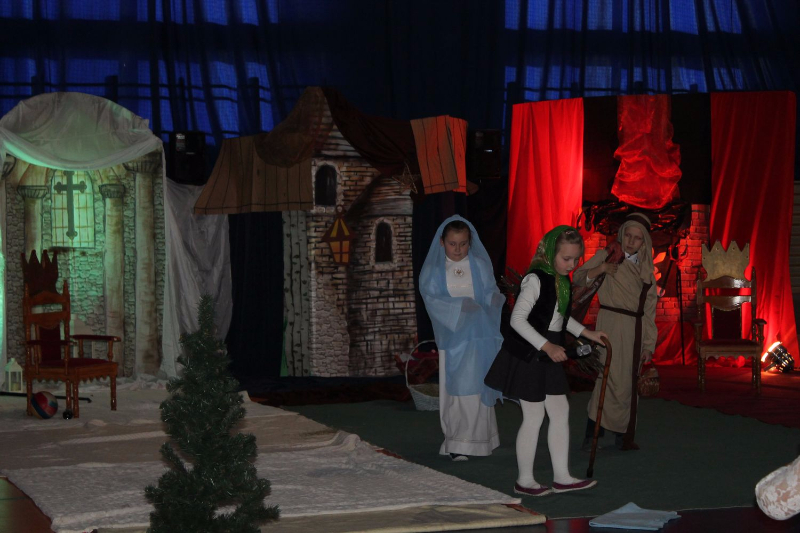 W przedświąteczny czwartek 22 grudnia 2016r. o godz. 10.00 cała społeczność szkolna wraz z dyrekcją, nauczycielami i rodzicami, zebrana w hali widowiskowo – sportowej, miała okazję przeżyć, jak co roku, tajemnicę Bożego Narodzenia, uczestnicząc w Jasełkach. Tegoroczne przedstawienie świąteczne nosiło tytuł „Jeden – zero dla Nieba”. Mali aktorzy z klas IId i IIe wspaniale wcielili się w role Świętej Rodziny, aniołów, diabełków, pasterzy, babci, biedroneczki, Trzech Króli oraz przedstawicieli dzieci. Z beztroską i radością wystąpiło też siedmioro dzieci z oddziału przedszkolnego w roli owieczek, koziołków i piesków. Głównym przesłaniem spektaklu było pragnienie, aby ludzie z wiarą i nadzieją przygotowali swoje serca na przyjście Syna Bożego na świat, by kierowali się dobrem, miłością, życzliwością oraz okazywali sobie miłosierdzie i pomoc. Pomocą w dobrym życiu ma służyć przekonanie, że dobro zawsze zwycięża zło. Nad całością występu dzieci czuwały panie Marzena Klimek i Alina Stefańska wraz z dziećmi z zespołu wokalnego. Wspaniałe dekoracje przygotowały panie Justyna Żurkiewicz i Dorota Gidaszewska – Burkietowicz. Dzięki pomocy rodziców dzieci wystąpiły w pięknych strojach. Jasełka będą powtórnie wystawione dla społeczności lokalnej dnia 6 stycznia 2017 r. o godz. 16.00, również w hali widowiskowo – sportowej.
