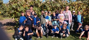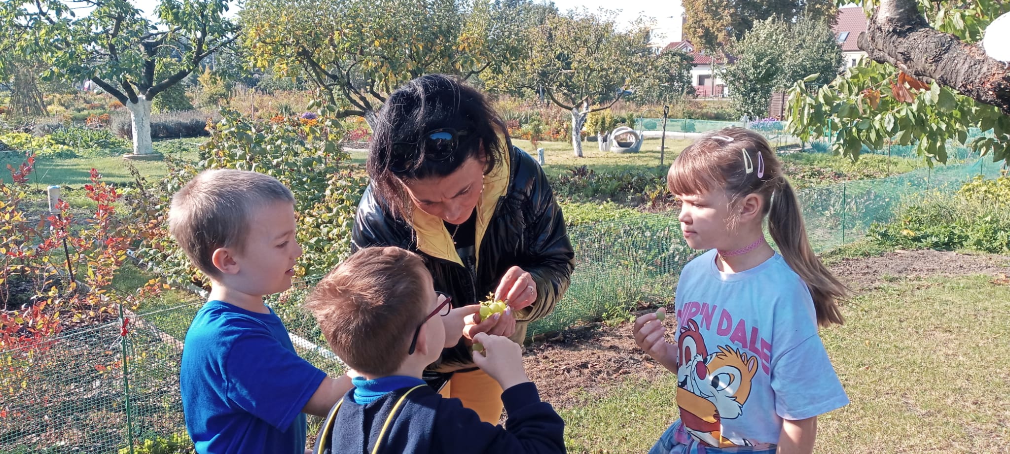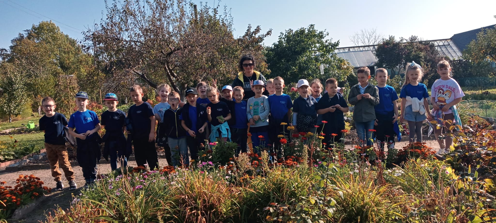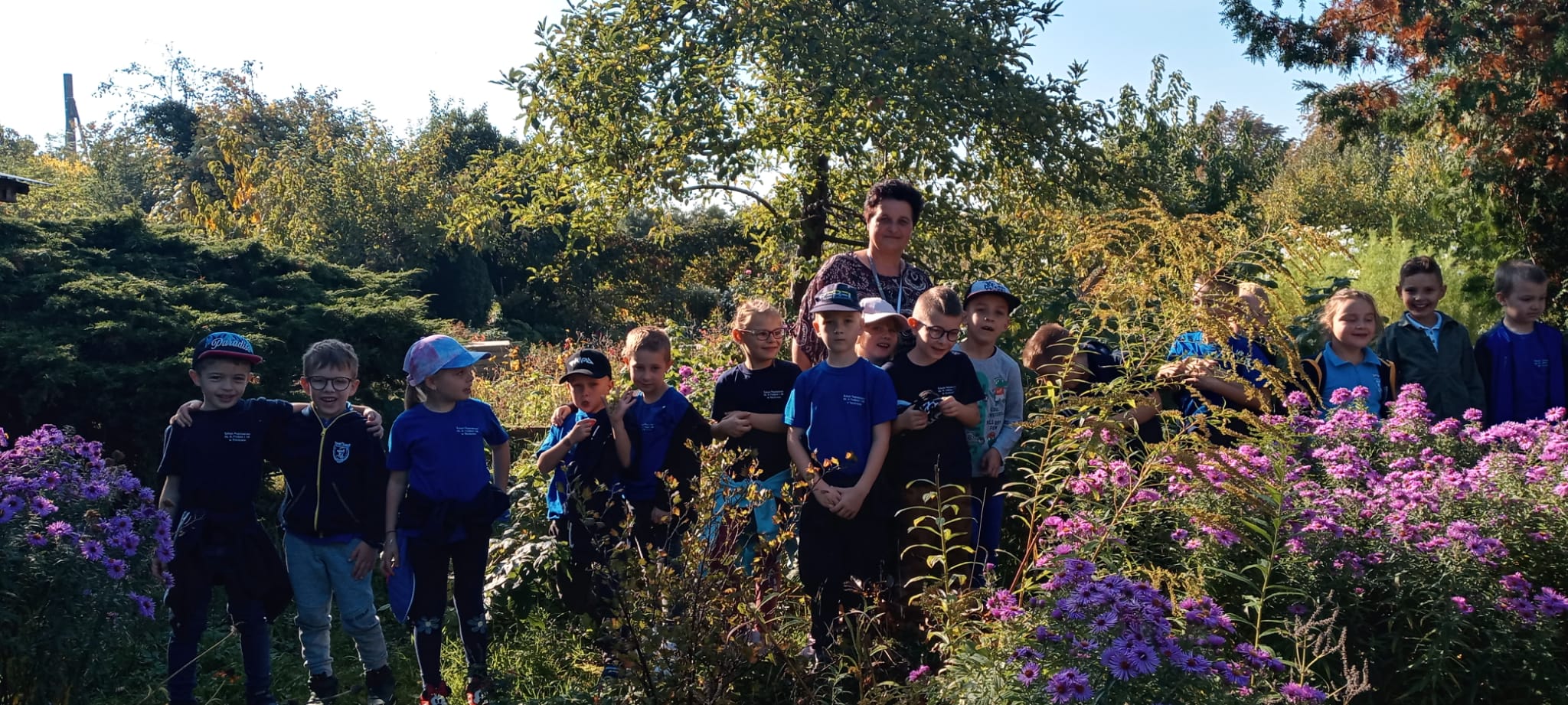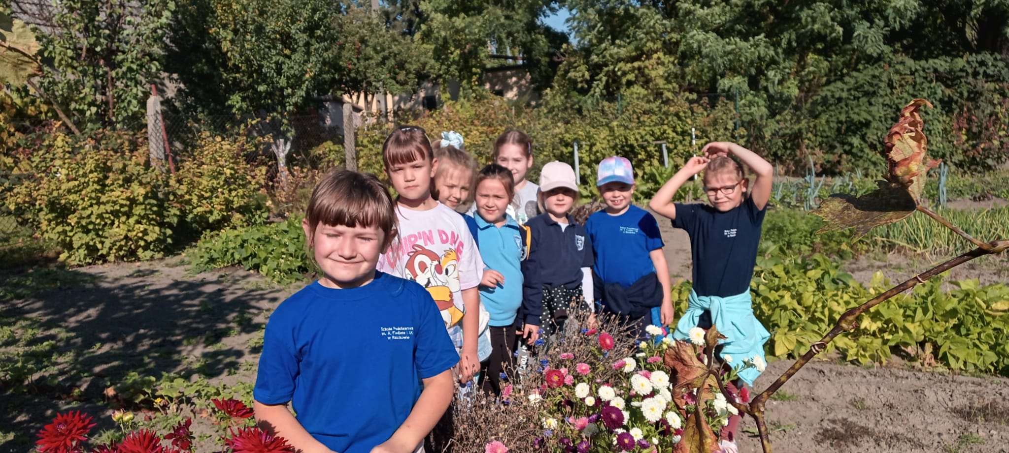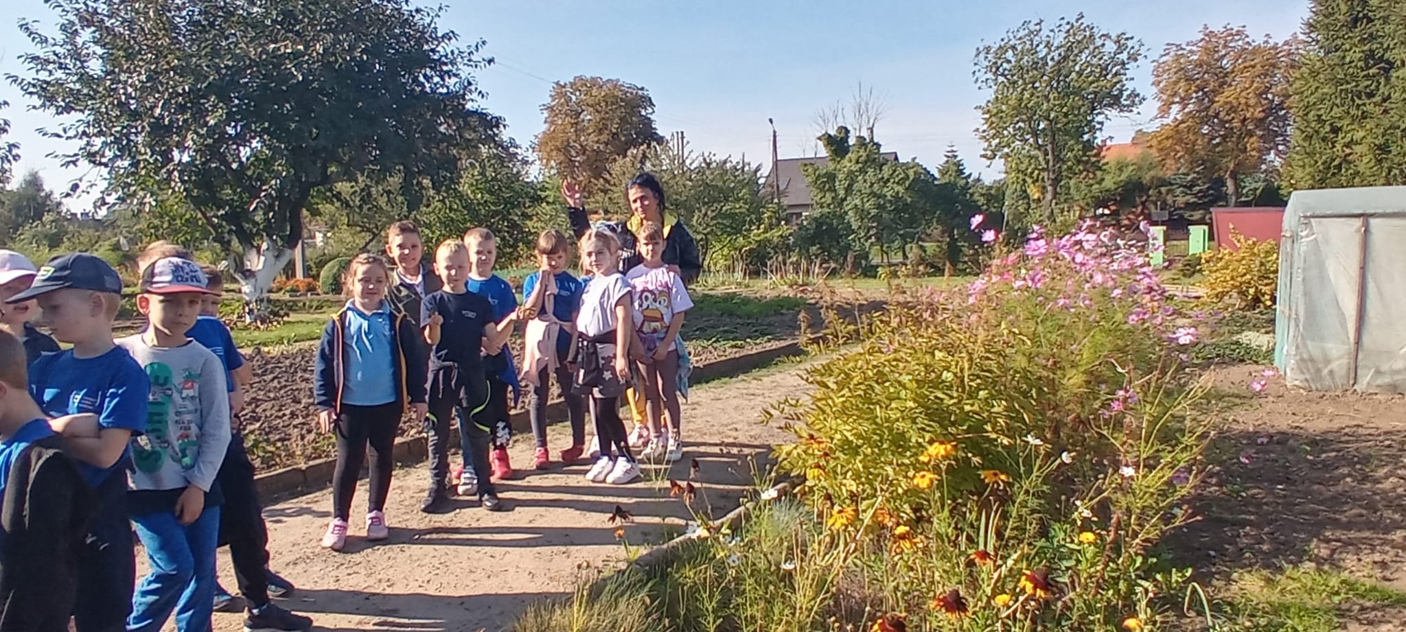 Uczniowie klasy I a, korzystając z pięknej pogody i uroków jesieni, udali się do pobliskich ogródków działkowych w Raszkowie. Lekcja przyrody w terenie zielonym dostarczyła nam nie tylko wielu wiadomości, ale również niezapomnianych wrażeń. Ogródki odkryły przed nami swe piękno, podziwialiśmy jesienne barwy, rosnące krzewy i kwiaty. Bacznie przyglądaliśmy się przyrodzie – kwiatom, warzywom, liściom, krzewom oraz drzewom. W czasie wycieczki skosztowaliśmy słodkiego winogrona. Znaleźliśmy również chwilę, aby odpocząć na trawie, przy kwitnących kwiatach. PIĘKNA JEST JESIEŃ!
