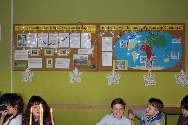 Na początku grudnia 2014r. ruszył kolejny konkurs na najładniej udekorowaną klasę w stylu świątecznym. 18 grudnia 2014r.  komisja dokonała oceny. Klasy wyglądały bardzo pięknie i uroczo, czuć było klimat świąteczny. Wybór najpiękniejszej klasy okazał się dla komisji nie lada wyzwaniem. Po długich namysłach i konsultacjach spośród wszystkich klas od IV-VI  komisja postanowiła wyróżnić  dwie klasy 4b i 6a. Komisja dostrzegła, że obie klasy włożyły mnóstwo pracy i wysiłku, dlatego wyłonienie tej najpiękniejszej okazało się praktycznie niemożliwe. W takiej sytuacji komisja postanowiła przyznać pierwsze miejsce ex aequo klasie 4b i 6a. Zwycięzcy konkursu otrzymali kalendarze na nowy rok. GRATULUJEMY !!!