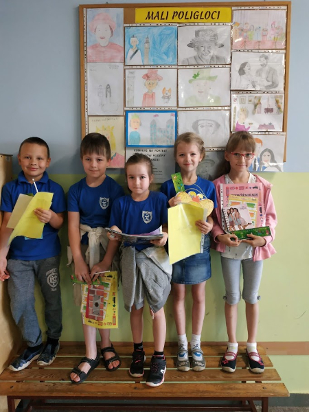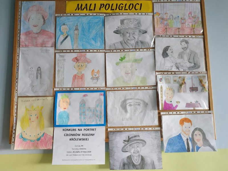 7 czerwca odbyło się ogłoszenie wyników szkolnego konkursu na portret brytyjskiej rodziny królewskiej, który zorganizowała nauczycielka języka angielskiego, pani Małgorzata Palczewska. Aż 36 uczniów wykonało portrety, na których możemy podziwiać królową Elżbietę II, księcia Williama i księżną Kate oraz księcia Harrego i księżną Meghan. Jury, w skład którego weszły panie Beata Lisiak i Małgorzata Palczewska, postanowiło przyznać 5 wyróżnień w kategorii klas młodszych oraz 5 wyróżnień w kategorii klas starszych. Wszyscy uczestnicy otrzymali dyplomy, a wyróżnieni uczniowie również nagrody rzeczowe. Wybrane prace zostaną wkrótce wysłane w listach do członków rodziny królewskiej.