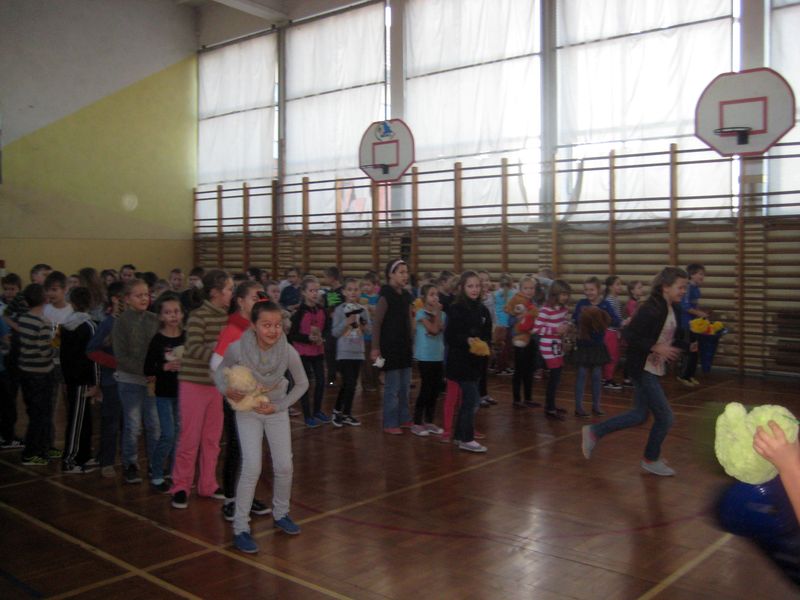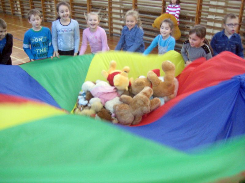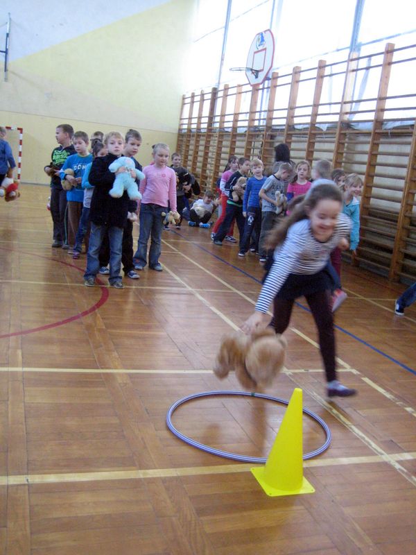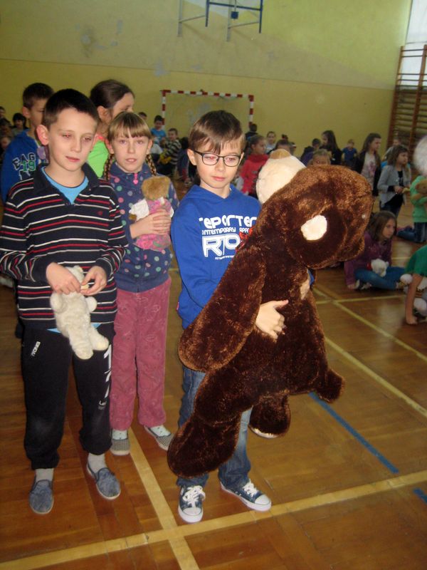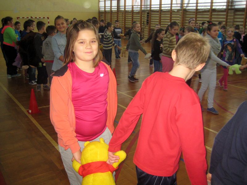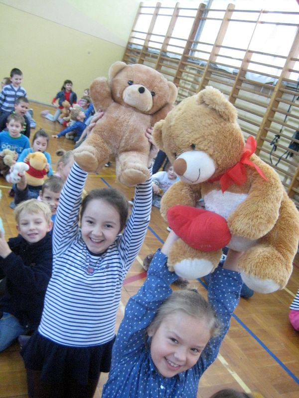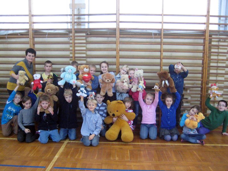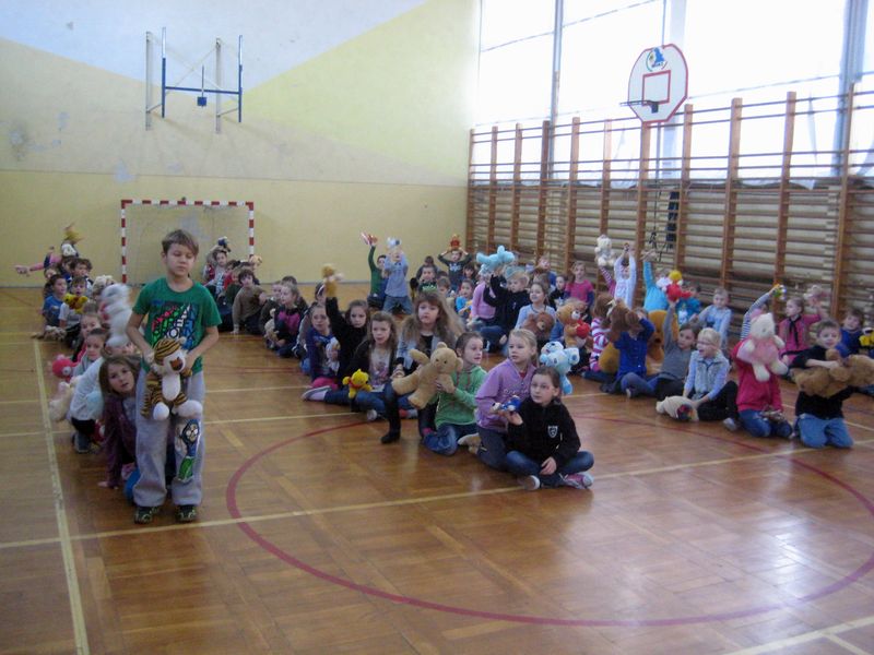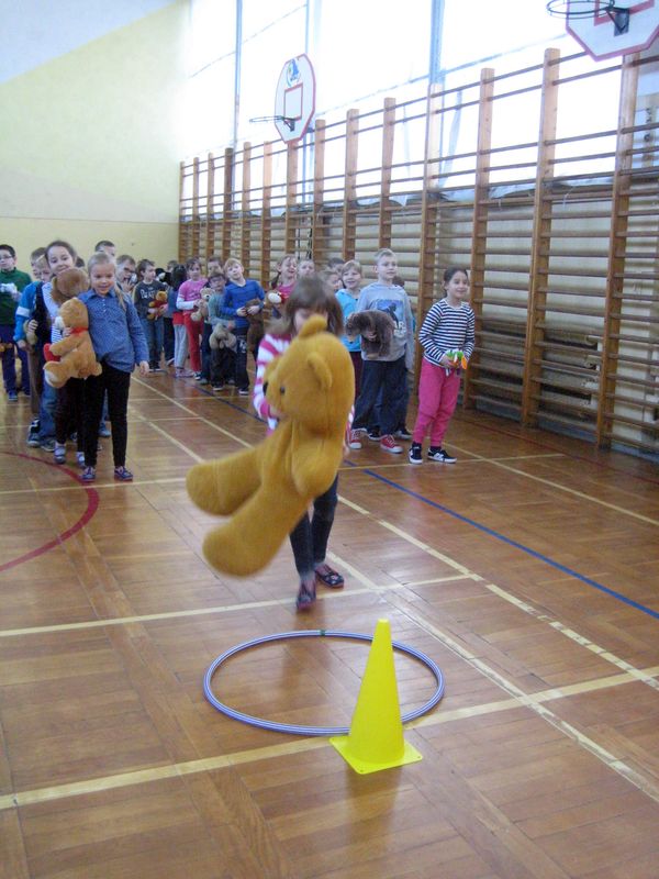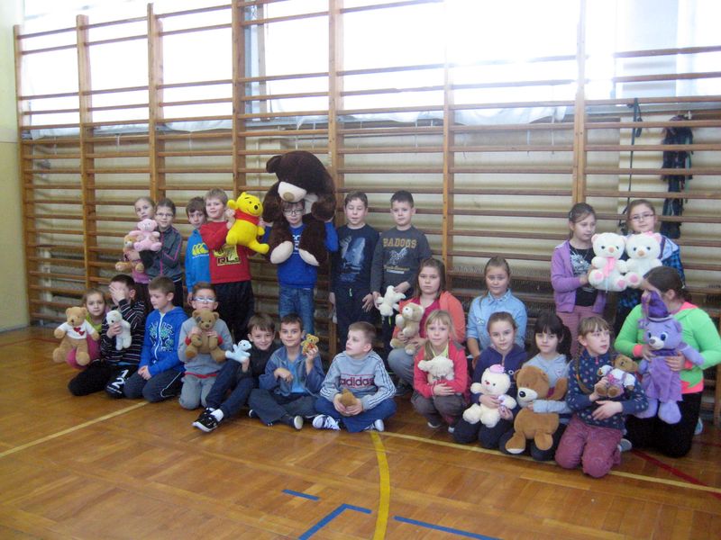 „Czy to jutro, czy to dziś każdemu potrzebny jest miś”, po takim hasłem odbyły się obchody dnia pluszowego misia w naszej szkole. Uczniowie klas O-III zaproszeni zostali do wzięcia udziału w Misiowej spartakiadzie, tam odbyły się zawody sportowe, przeplatane zabawą, piosenkami, zagadkami. Wszystkim konkurencjom sportowym towarzyszyły przyniesione w tym dniu do szkoły pluszowe misie. Przeprowadzono również konkurs na największego i najmniejszego pluszaka – misa. Wszystkie dzieci, które dzielnie i z wielkim poświęceniem wzięły udział we wszystkich zabawach sportowych otrzymały lizaki – ulubione słodkości Kubusia Puchatka.