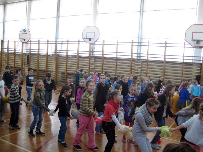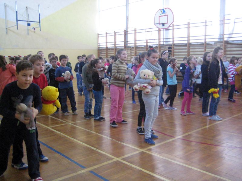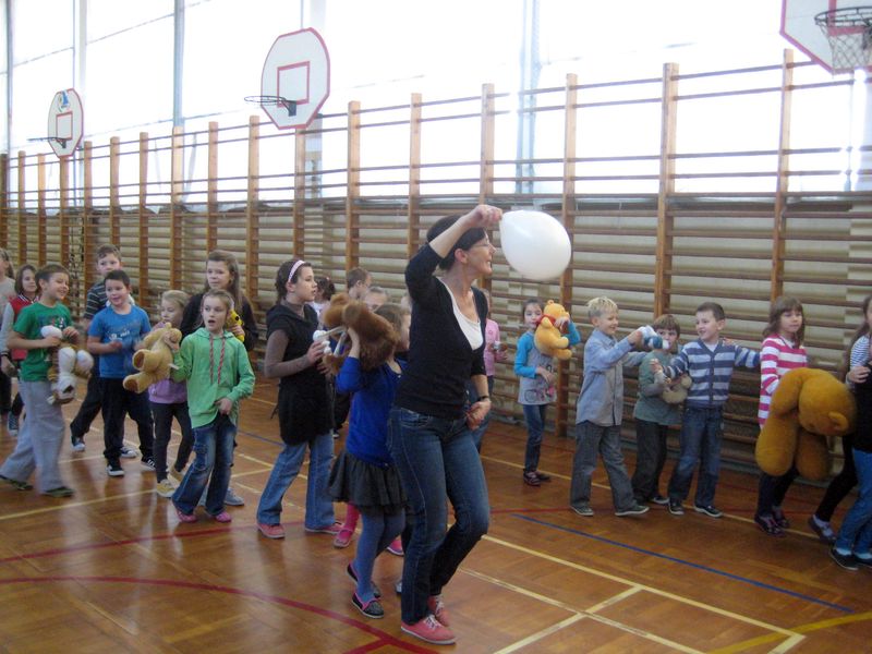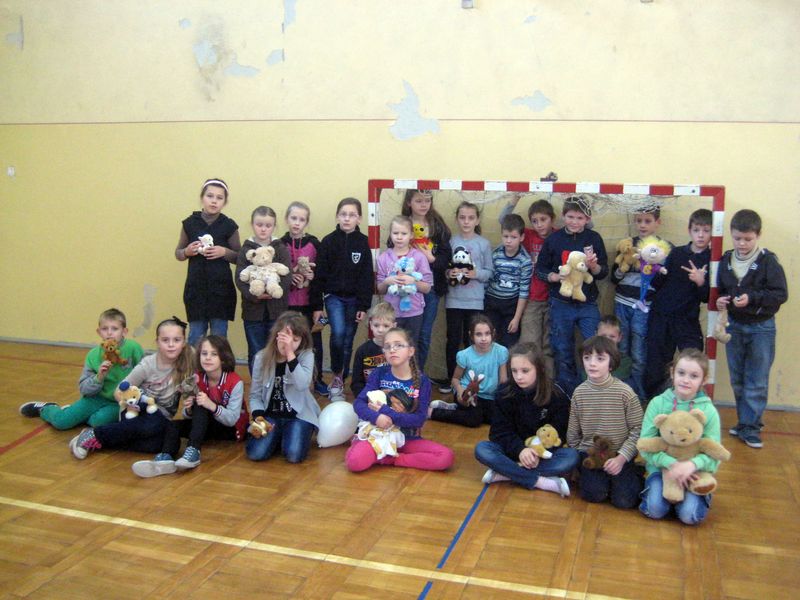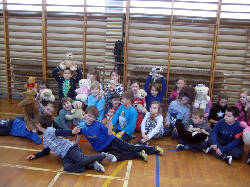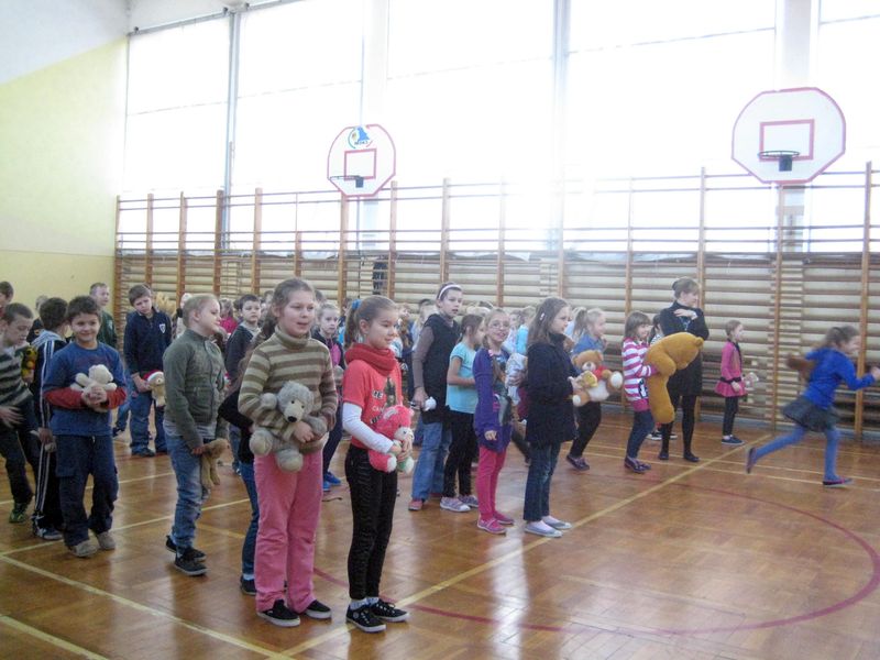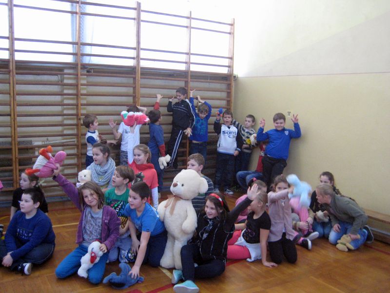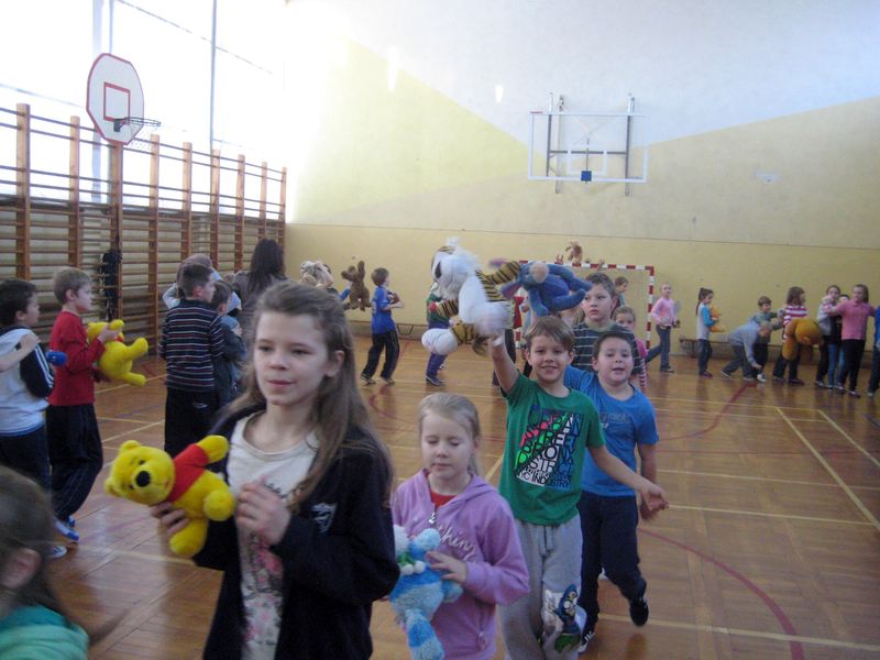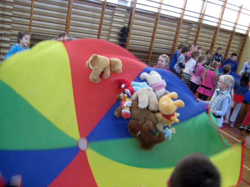 „Czy to jutro, czy to dziś każdemu potrzebny jest miś”, po takim hasłem odbyły się obchody dnia pluszowego misia w naszej szkole. Uczniowie klas O-III zaproszeni zostali do wzięcia udziału w Misiowej spartakiadzie, tam odbyły się zawody sportowe, przeplatane zabawą, piosenkami, zagadkami. Wszystkim konkurencjom sportowym towarzyszyły przyniesione w tym dniu do szkoły pluszowe misie. Przeprowadzono również konkurs na największego i najmniejszego pluszaka – misa. Wszystkie dzieci, które dzielnie i z wielkim poświęceniem wzięły udział we wszystkich zabawach sportowych otrzymały lizaki – ulubione słodkości Kubusia Puchatka.