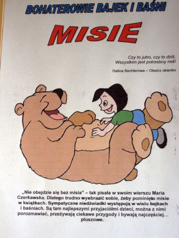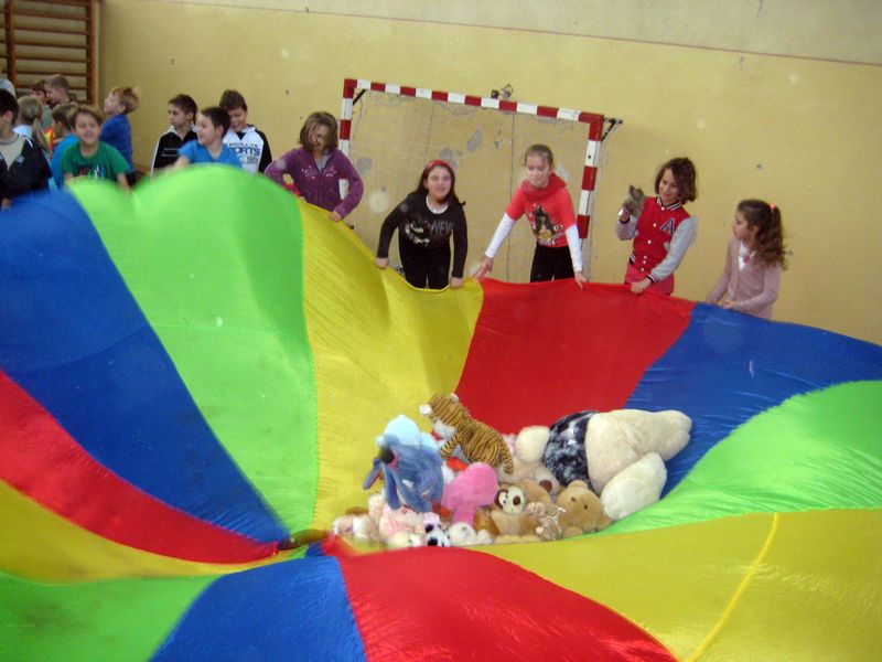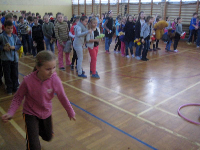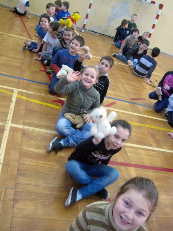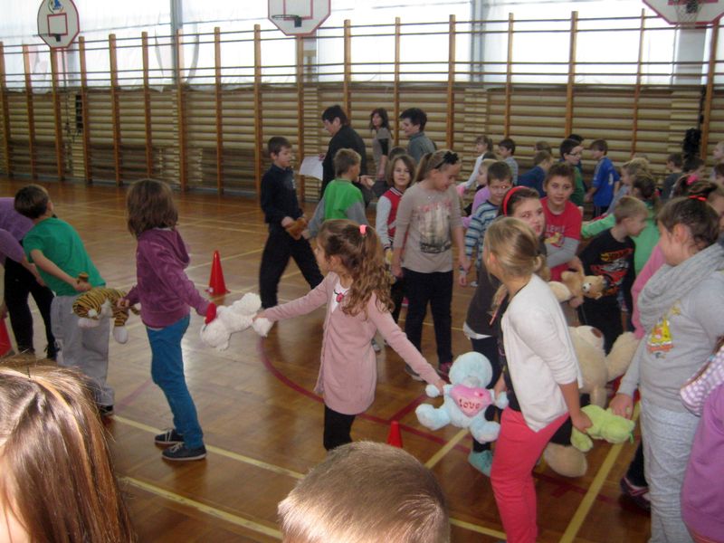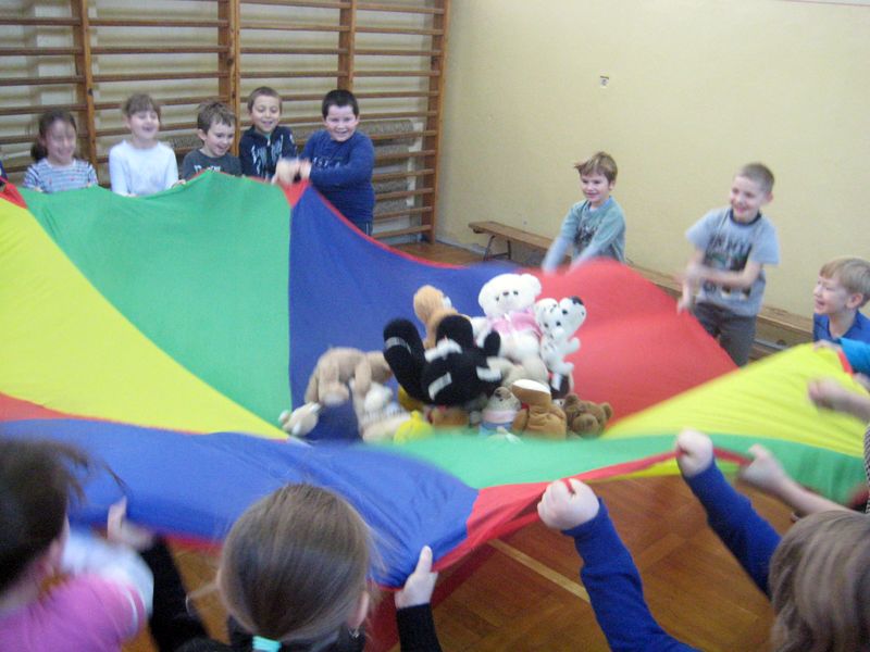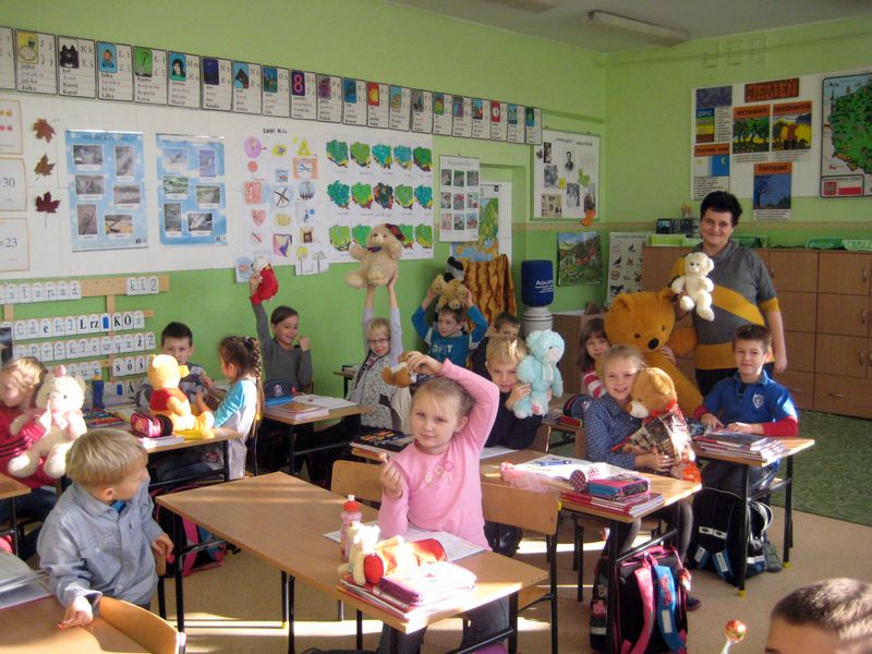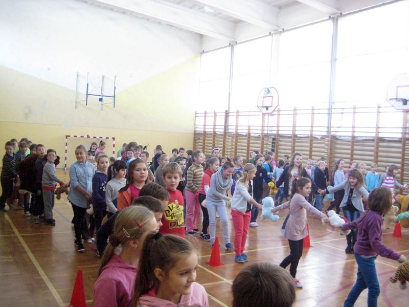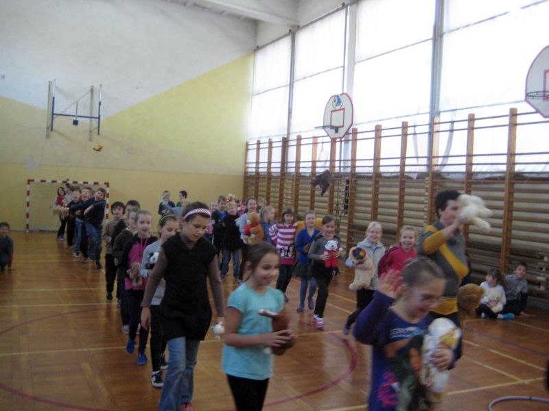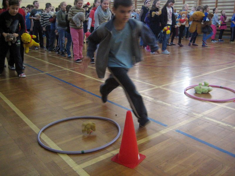 „Czy to jutro, czy to dziś każdemu potrzebny jest miś”, po takim hasłem odbyły się obchody dnia pluszowego misia w naszej szkole. Uczniowie klas O-III zaproszeni zostali do wzięcia udziału w Misiowej spartakiadzie, tam odbyły się zawody sportowe, przeplatane zabawą, piosenkami, zagadkami. Wszystkim konkurencjom sportowym towarzyszyły przyniesione w tym dniu do szkoły pluszowe misie. Przeprowadzono również konkurs na największego i najmniejszego pluszaka – misa. Wszystkie dzieci, które dzielnie i z wielkim poświęceniem wzięły udział we wszystkich zabawach sportowych otrzymały lizaki – ulubione słodkości Kubusia Puchatka.
