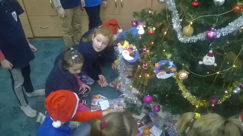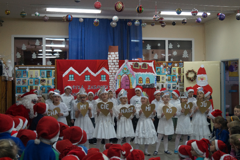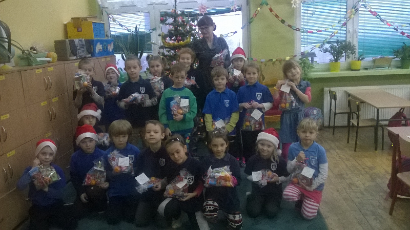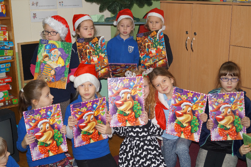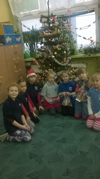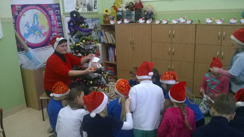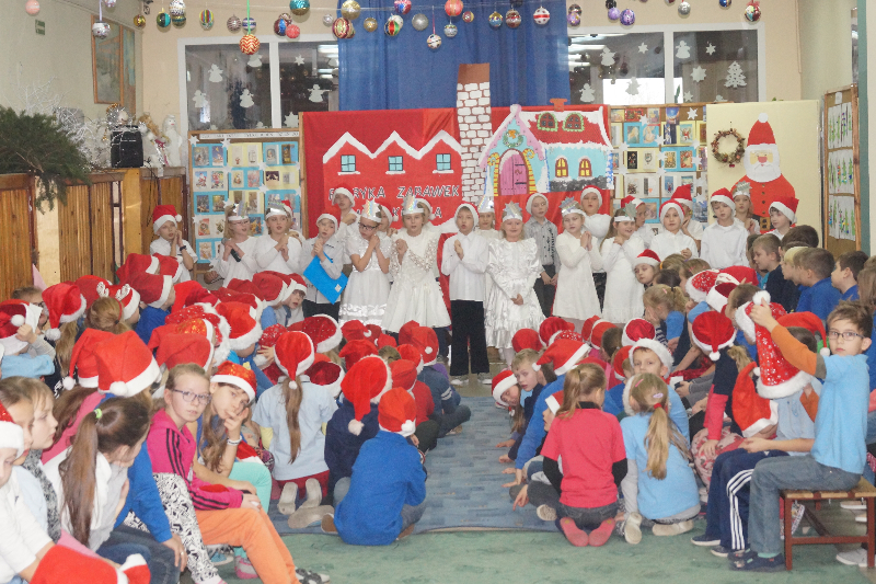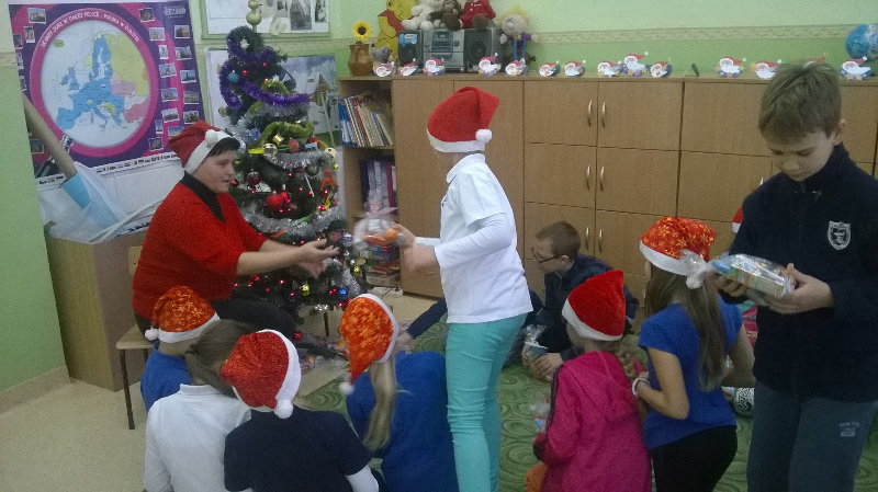 Honorowym gościem i atrakcją dla uczniów było przybycie Mikołaja, który rozdał dzieciom upominki.