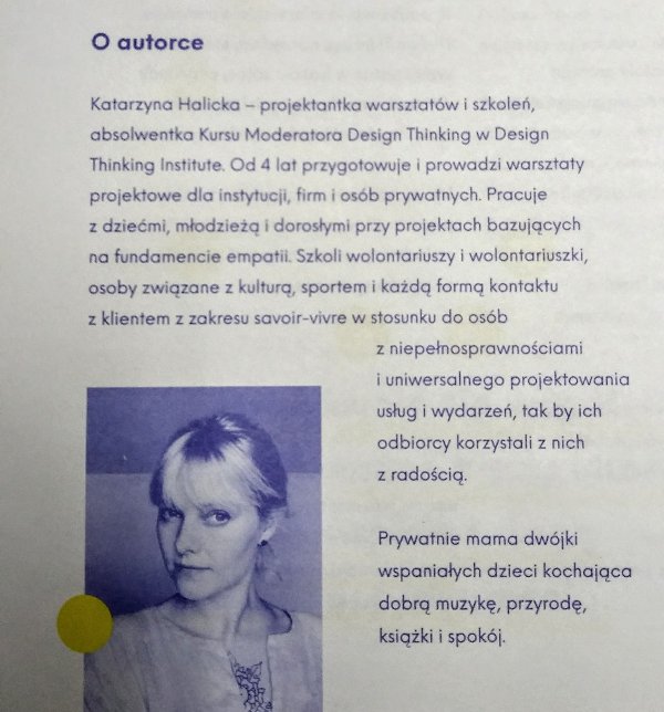 Młodzież bierze udział w ćwiczeniach, które pomagają „wejść w buty” osób z różnymi stopniami sprawności (wózek, symulatory wad wzroku, słuchu itd). Poznaje podstawowe zagadnienia i pojęcia dotyczące niepełnosprawności, języka włączającego, dyskryminacji oraz zasady savoir-vivre wobec osób z niepełnosprawnościami. Młodzież poznaje też metodę Design Thinking projektując rozwiązania dla swoich rówieśników z niepełnosprawnościami – szczególny nacisk kładziemy na etap empatii i diagnozy potrzeb, które najpełniej prowadzą do zrozumienia.