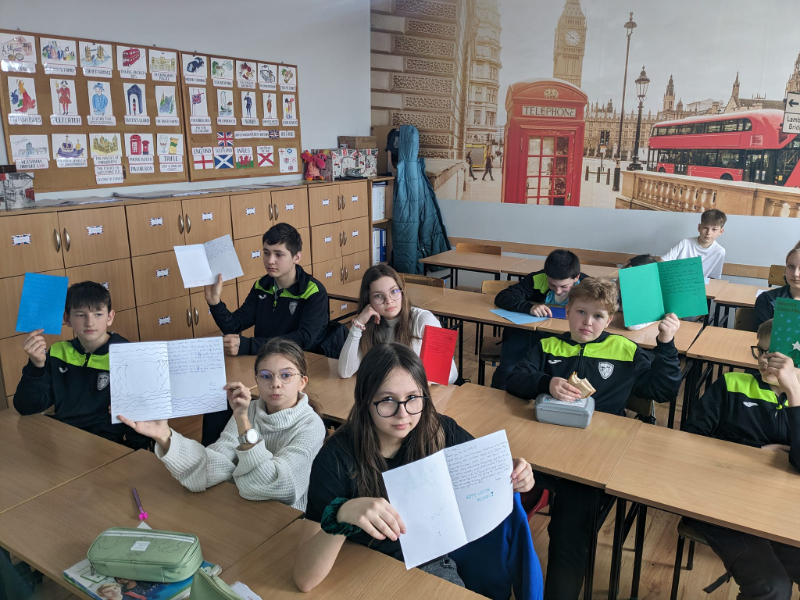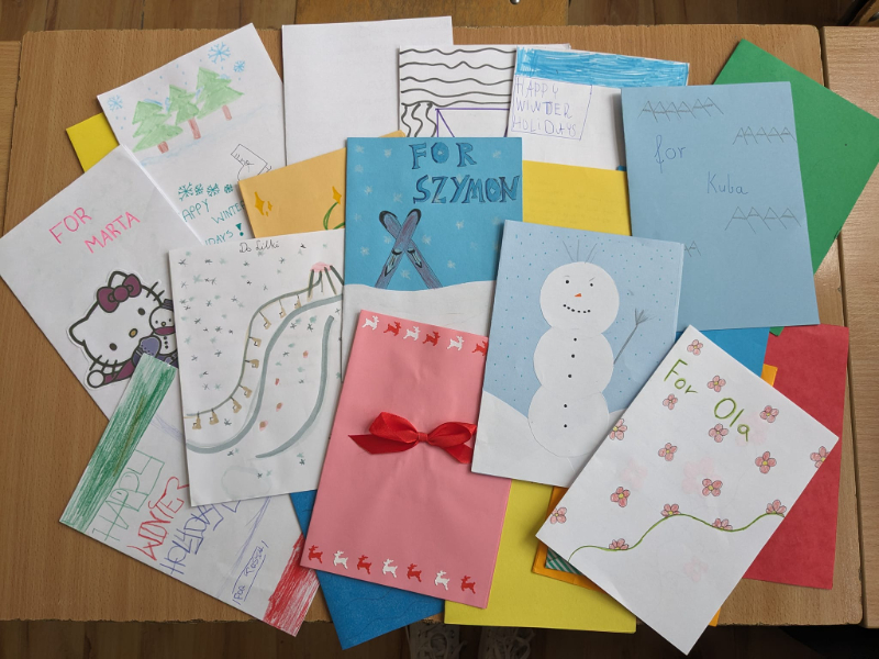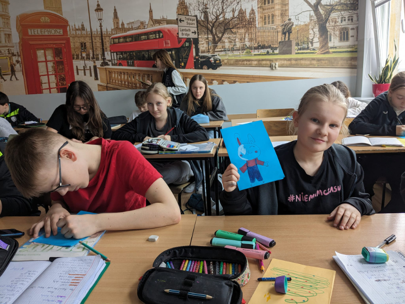 W październiku nasi uczniowie wysłali swoje pierwsze listy do uczniów ze Szkoły Podstawowej w Lewkowie. Opisywali w nich swój wygląd, zainteresowania, rodzinę czy miejsce zamieszkania. Podobnymi listami odwdzięczyli się uczniowie z Lewkowa. Następnie w grudniu przesłali sobie wzajemnie kartki świąteczne z życzeniami i opisem swoich bożonarodzeniowych tradycji. W lutym otrzymaliśmy listy dotyczące ferii zimowych. Dlatego też, zaraz po feriach uczniowie 6 B zabrali się za odpisanie. W najnowszych listach opisali jak spędzili ferie zimowe oraz złożyli życzenia z okazji zbliżających się świąt Wielkiej Nocy.