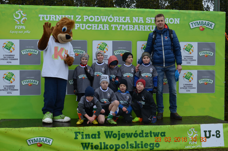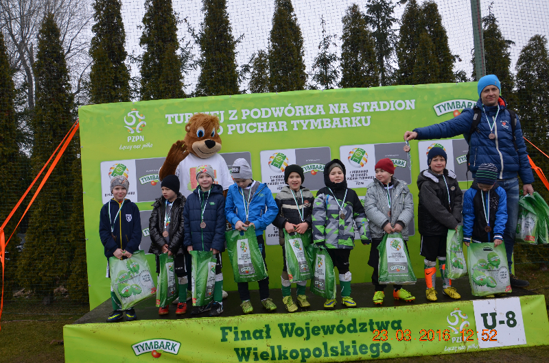 W środę 23.03.2016 na stadionie sportowym w Grodzisku wielkopolskim odbył się wojewódzki finał XVI edycji turnieju „Z podwórka na stadion o PUCHAR TYMBARKU”. Jest to największa impreza sportowa dla dzieci w naszym kraju. W tej edycji wzięło udział 185 000 dziewczynek i chłopców w wieku 8, 10 i 12 lat. Reprezentacje naszej szkoły po wygraniu eliminacji gminnych i powiatowych mieli zaszczyt wsiąć udział po raz pierwszy w finale wojewódzkim. Nasza drużyna po dwugodzinnej podróży uczestniczyła w bardzo uroczystym rozpoczęciu imprezy prowadzonej przez byłych znanych piłkarzy, a następnie przystąpiła do rywalizacji sportowej. Przeciwnikami naszej drużyny w fazie wiekowej ze Złotowa, Krobi i Falmierowa. Nasi chłopcy zaprezentowali się znakomicie wygrali dwa mecze i ponieśli jedną porażkę, co dało drugie miejsce w grupie. Zabrakło dwóch bramek aby awansować do dalszej fazie rozgrywek i walczyć o mistrzostwo województwa. Nasi chłopcy pozostawili po sobie bardzo dobre wrażenie. Udział w finale wojewódzkim był dla nich ogromnym przeżyciem i wielkim sukcesem, już zapowiedzieli, że będą walczyć o finał w następnej edycji.